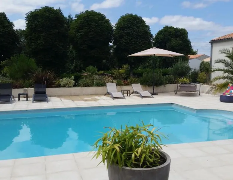 Historic Setting: Le Clos des Oiseaux in Saintes offers a unique stay within a historic building. Guests enjoy garden and pool views, complemented by a sun terrace and open-air bath. Outdoor Amenities: The property features a seasonal outdoor swimming pool, an outdoor seating area, and a picnic spot. Free WiFi is available throughout the premises, ensuring connectivity for all visitors. Comfortable Accommodations: Rooms include private bathrooms, air-conditioning, and garden or pool views. Family rooms and ground-floor units cater to various needs, while amenities such as a kitchen and work desk enhance the comfort. Local Attractions: Located 48 mi from La Rochelle - Ile de Re Airport, the bed and breakfast is near Saintes Train Station (2.9 mi) and Saint Pierre Cathedral (2.4 mi). Other points of interest include Royan Golf (30 mi) and Roche Courbon Castle (9.9 mi). Boasting a private entrance, this air-conditioned holiday home includes 1 living room, 3 separate bedrooms and 3 bathrooms with a walk-in shower and a hairdryer. In the well-fitted kitchen, guests will find a stovetop, a refrigerator, kitchenware and an oven. Featuring a terrace with garden views, this holiday home also offers soundproof walls and a flat-screen TV. The unit has 4 beds.