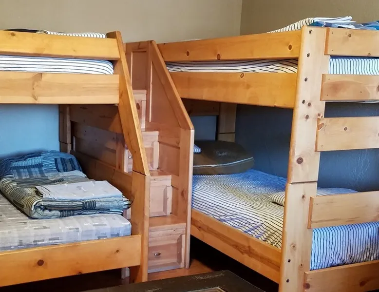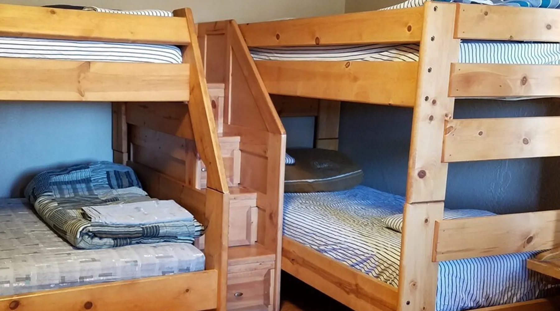 **You must read Airbnb messages and reply to us after requesting this unit.** Nice 3 bedroom 2 bathroom with a large kitchen and living room area with a wonderful view of the lake, mountains, and Marina. The living room area has a dining table, sofa, and Roku TV (BYO logins) WIFI great for working, zoom, etc. The space How to book? Request > Read our messages to you > Reply you agree > We confirm booking. **For best experience, use Airbnb phone app with message notifications on.** This unit is part of our commercial lodge / retreat center. Big Bear Group Cabin Rentals 541 Knickerbocker Road We have hosted thousands of guests from all over the world since 2007. We have an on-site manager who greets you to handle check in, and lives next door and keeps watch over the property for everyone's safety. This is not a luxury rental. 1 bedroom has a queen bed and all other rooms have bunk beds. We have budget prices to sleep large groups, and fantastic location. Please don't expect luxury accommodations. No Pets policy. Sorry, we have kids with allergies and we keep an allergy free space. Please use airbnb search filters and choose a pet friendly host. This 3 bedrooms apartment sleeps 11 maximum. (If you have a larger family, you can add another unit next door for a total of 7 bedrooms, 3 bathrooms. Kitchen has a fridge, oven, microwave, coffee maker, toaster, and cooktop. Nice sunny deck with tables for outdoor eating. There is no backyard space included in this listing. We provide kitchen dish soap and a sponge. We provide k-cups and coffee grounds and filters. This rental home includes kitchen and living room area with a wonderful view of the lake, marina, and mountains. Living room area has a dining table, sofa, extra folding chairs, and Large Roku TV (bring your own logins). How many bedrooms are included? If you have 1-2 guests, 1 bedroom is included If you have 3-5 guests, 2 bedrooms are included If you have 6+ guests, all 3 bedrooms are included. If you need more bedrooms, just change reservation details and add extra guests to your reservation. This lets us rent to single travelers midweek at a great price, but get a fair price for larger groups and helps cover extra cleaning costs. If you don't rent all bedrooms, the other bedroom(s) are just locked during your stay so we don't have to clean them. In any case, the unit is 100% for you and your guests only. You never share indoor spaces with other guests. Bedroom 1 has a queen bed with Netflix/Amazon app ready smart TV. Bedroom 2 is a bunk room with 3 twin beds and a double bed bottom bunk. Bedroom 3 2 is a bunk room with 3 twin beds and a double bed bottom bunk. 2 full bathrooms are off the hallway. Each has, shower, toilet, sink, with locking door. Crib: pack and play available if you request it during booking process. Parking lot is shared with other units on property. There is plenty of overflow parking nearby. We can always find you a place to park. This is one side of a duplex with a permanently locked door separating it from another rental unit. Considerate noise levels are required. Central heating is set at to 70F and we have space heaters if you need extra heat. Please let us know if you are uncomfortable. Safety and security has always been a top priority. Our keypad codes are changed between each guest and our co-hosts live next door should any problems arise. Other private home rentals require you to haul away your trash. Since we are a commercial lodge, you just have to take trash to the garbage cans in our parking lot. Pricing changes with number of guests. Extra guests are not free. Please make sure you are searching with the correct number of guests to see correct pricing. Cancellations: Understand this is a small family business and we can't afford to lose money if you cancel and we aren't able to re-book those dates. Postponing a trip to a later date is considered a cancellation. You must purchase your own travel insurance if you wish to be covered for unexpected events. Weather and Road Conditions are not eligible for refunds. See airbnb listing details for full cancel policy. $300 refundable security deposit due before arrival. We may waive the security deposit if you have great reviews from past stays. EARLY CHECK IN / LATE CHECK OUT Check in between 4pm to 10pm. Check out by 10am. We never guarantee early check in or late check out. You can Request early arrival or late departure in our MyTrips app after a confirmed booking. This unit has a $15/hour fee for adjusted arrival/departure times. If your request can be accommodated, we will approve it and you will be notified and charged whether you arrive early or not as we have to pay someone to be ready for your arrival time. EV CHARGING Free charging for our guests (w/Minimum $300 Paid Reservation) $30 cash flat rate otherwise. J1772 Cable (You must provide your own adapter for Tesla) Tesla Supercharger in 2 minutes away and there are other Chargepoint options nearby. Please let us know at the time of booking if you want to charge. Ski Resort: We are 1 mile from Snow Summit. 2 miles to Bear Mountain. There is a free city shuttle just around the corner every 30 minutes. Midweek non holiday there is free parking at the base area. On weekends we suggest driving to the free resort parking and taking the shuttle bus. *subject to change: check the resort website for up to date information. Village Location: There are 20+ fantastic restaurants nearby. Walk to pizza, burgers, Thai, crepes, Poki bowl, Himalayan, fast food, sandwich shop, steak house, Mexican, barbecue, Chinese, Indian, sushi, ice cream, candy shop, Hawaiian, tacos, pancakes, brew pubs and more! Parking: We have 9 parking spots in our parking lot. (First come first served) But also space for plenty more next door in our overflow lots. We can direct you at arrival. If you have any issues on concerns during your stay, please let us know right away in the airbnb chat, my co-host lives right next door and we want 