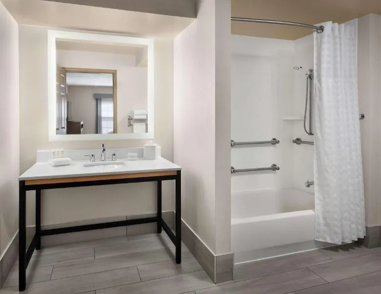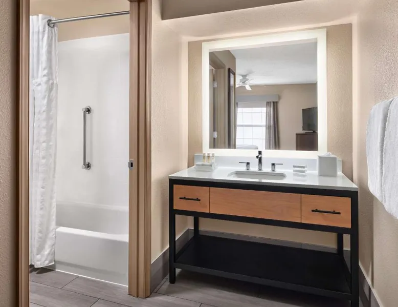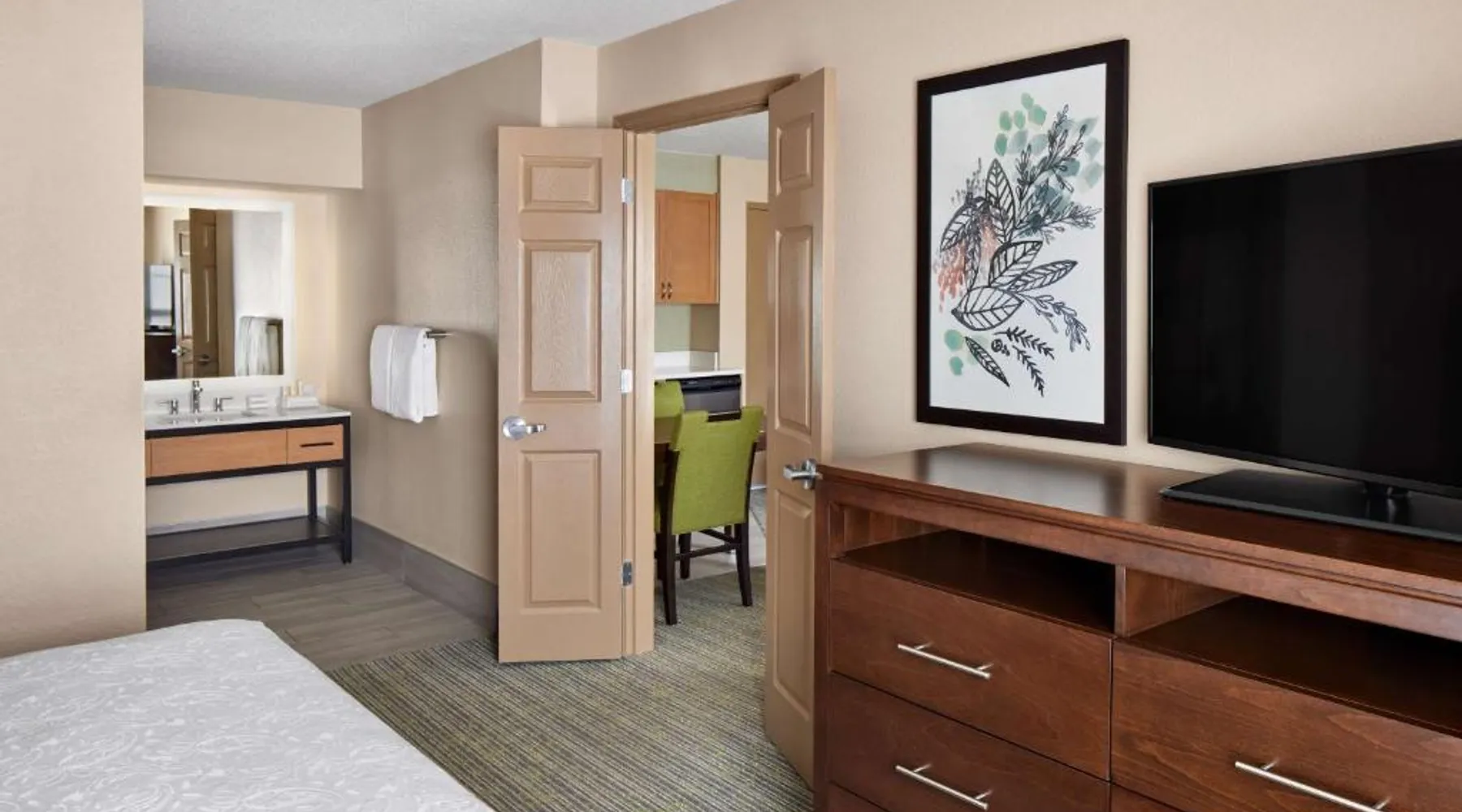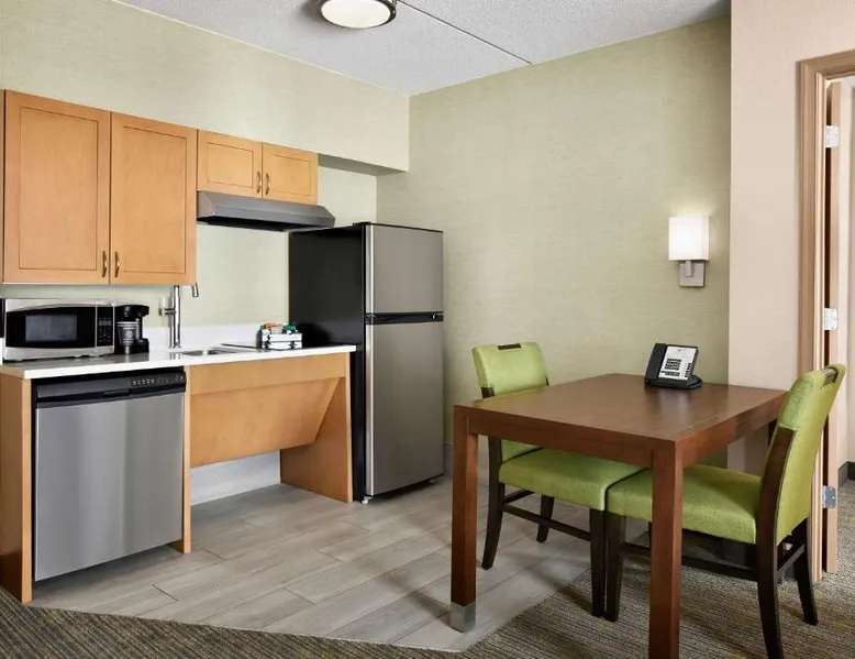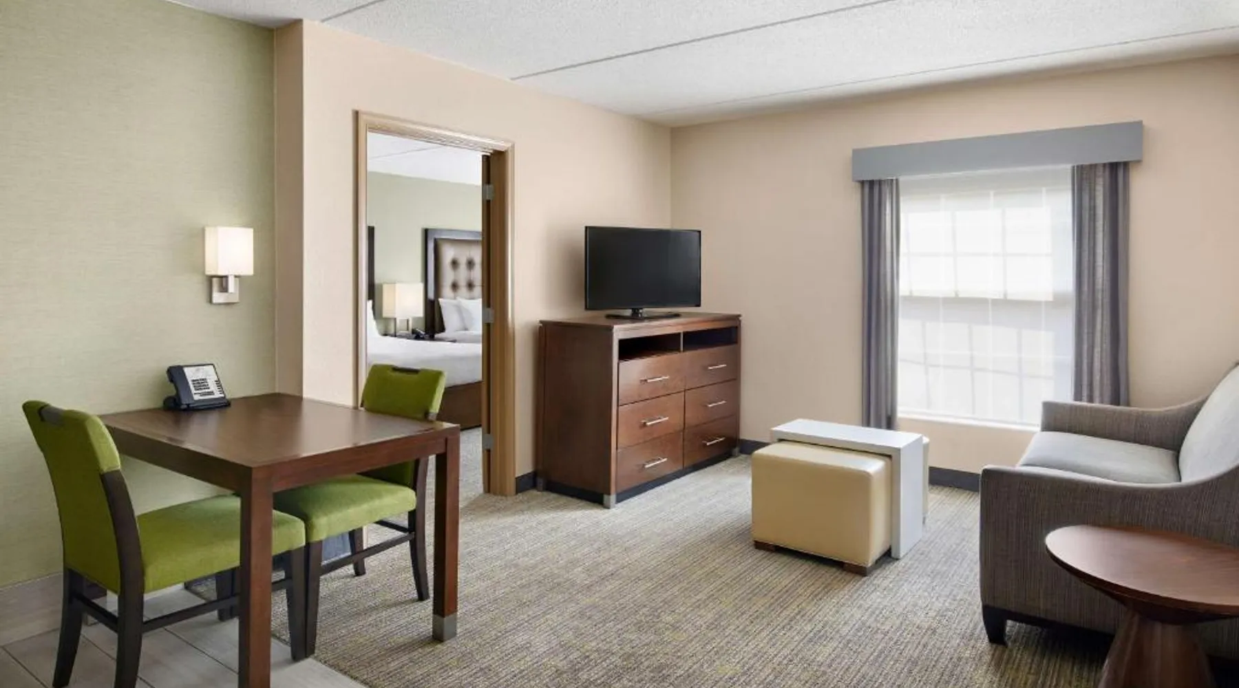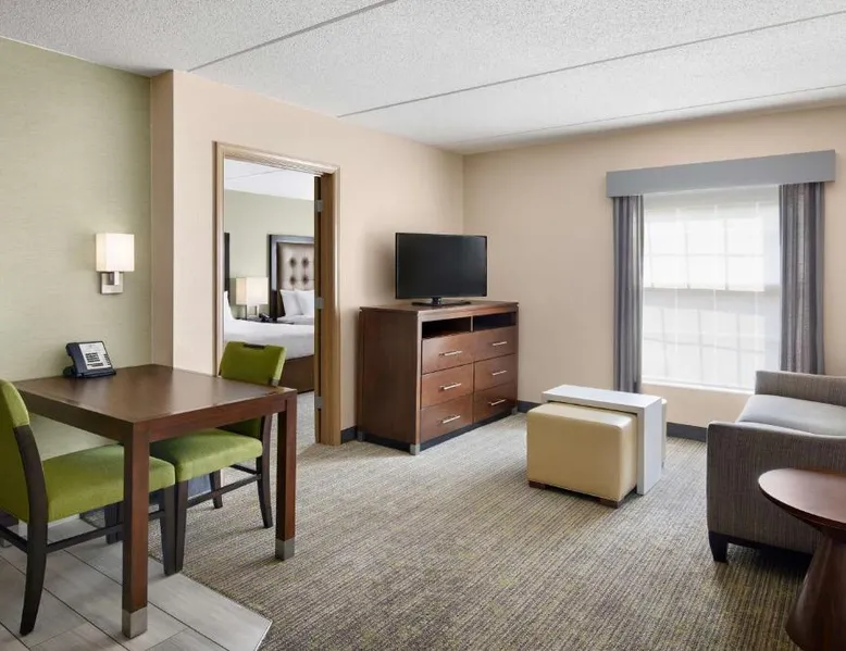 Comfortable Accommodations: Homewood Suites by Hilton Baltimore-Washington Intl Apt in Linthicum Heights offers family rooms with air-conditioning, private bathrooms, and fully equipped kitchens. Each room includes a sofa bed, work desk, and free WiFi. Exceptional Facilities: Guests enjoy a fitness center, free airport shuttle service, and a 24-hour front desk. Additional amenities include a lounge, minimarket, child-friendly buffet, and outdoor seating area. Delicious Breakfast: A complimentary American breakfast is served daily, featuring a variety of options to start the day. Prime Location: Located 1.9 mi from Baltimore-Washington International Airport, the hotel is near attractions such as Carroll Park and Inner Harbor, each 12-9.3 mi away. This suite includes a cable TV and a kitchenette with a refrigerator and a microwave.