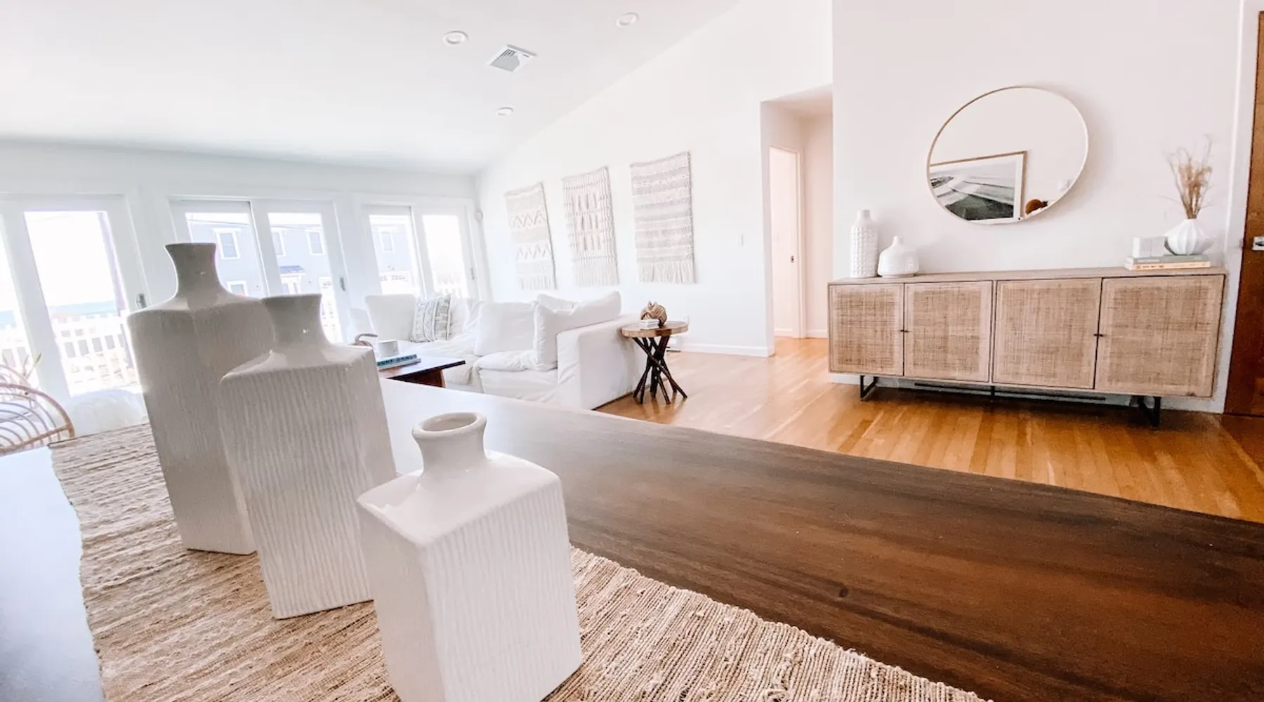 This home was featured in the June 2021 issue of SO RI magazine! Located on a quiet cul-de-sac this home has a welcoming front porch with ocean views, an open concept family room w/ fireplace, a spacious eat-in kitchen and a park-like backyard. Private beach connects to Scarborough State Beach. There are 3 king bedrooms and a separate kids room. Master bath has a jacuzzi tub and 2nd bath has a standing rain shower with sprawling marble sink. House has towels, beach chairs and bikes. The space With shiplap accents, local artwork, live wood furniture and surf chic decor, this elegant home boasts high ceilings, gorgeous marble and granite throughout the kitchen and bathrooms, separate laundry room, and luxurious linens. This home is equipped with lightning fast WiFi and all king bedrooms have smart TVs. Kids room has crib/toddler bed with optional queen size air mattress. Kitchen has Nespresso machine with pods for both coffee and espresso. This is a four season home with heat for the winter months. Other things to note This home is fully stocked with paper towels, toilet paper, garbage bags, laundry detergent, spices, cooking utensils, beach towels, etc. This is a very kid friendly home equipped with high chairs, kids beach chairs, umbrellas, sunscreen, beach toys, kites, bubbles, etc. Yoga mats and light hand weights are available for at home workouts. Registration Details RE 02681-STR, expiry date: 2025-08-27T23:00:00Z