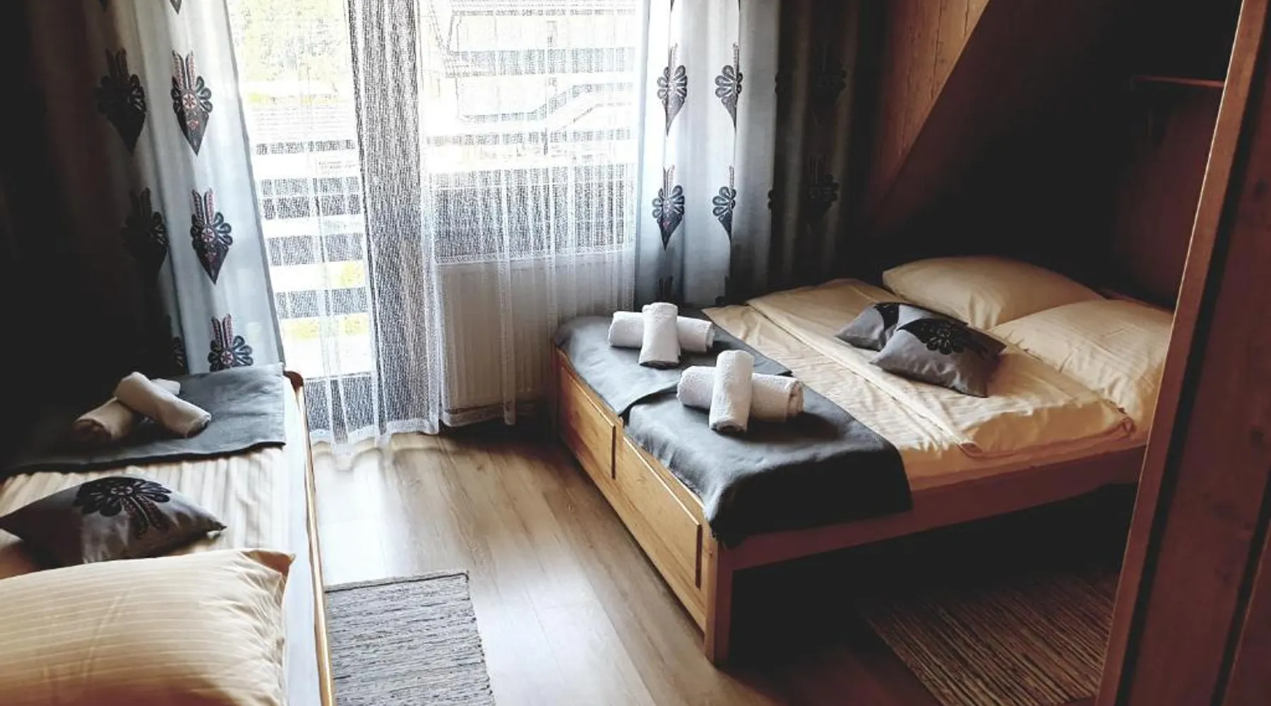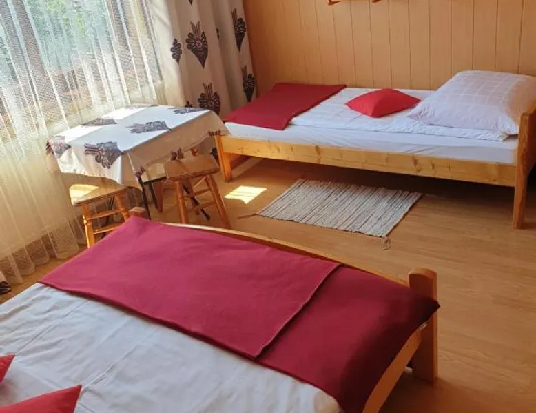 Accommodations Features: Familiówka in Mizerna offers a sun terrace, garden, and free WiFi. Guests enjoy an outdoor seating area, picnic spots, family rooms, a children's playground, and barbecue facilities. Amenities and Facilities: Each room includes a private bathroom with a walk-in shower, tea and coffee maker, garden and mountain views, and a dining table. Additional amenities include a kitchenette, balcony, patio, fireplace, and parquet floors. Activities and Attractions: Guests can engage in skiing, hiking, and cycling. Nearby attractions include Niedzica Castle (9.9 mi), Bania Thermal Baths (16 mi), and Treetop Walk (20 mi). Free on-site private parking is available. Guest Satisfaction: Highly rated for its friendly host and convenient location, Familiówka ensures a pleasant stay for all visitors. Guests will have a special experience as this chalet provides a fireplace. Featuring a private entrance, this chalet is consisted of of 1 living room, 2 separate bedrooms and 1 bathroom with a walk-in shower. Guests will find a stovetop, a refrigerator, kitchenware and a tea and coffee maker in the fully equipped kitchen. The chalet also has a barbecue. Boasting a terrace with garden views, this chalet also offers soundproof walls and a flat-screen TV. The unit offers 4 beds.