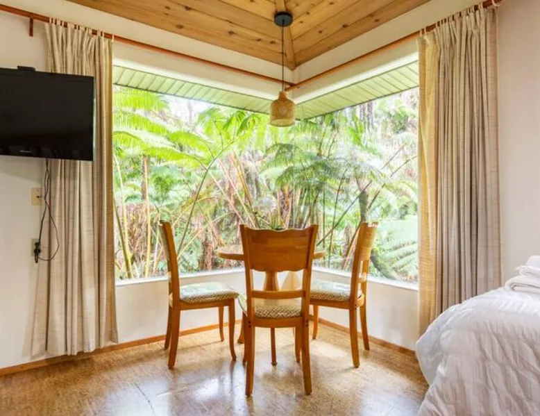 The space As you pull up to this grand cedar style home you are immediately greeted by a beautiful rainforest that feels calming and relaxing. Walk down the gravel pathway surrounded by native Ohi'a trees and Hapu'u plants hovering over you like an umbrella of nature to reach the hot tub or take a few steps up to your private suite. There is a small covered patio for you and your guests. This suite is off to the far corner and is very private from the other rooms. As you enter your room you are instantly greeted by nature with huge glass windows looking out to your very own Hawai'i forest. The room has a Queen size bed for two and two twin beds for extra guests. The room is equipped with a small kitchen stocked with basic cooking essentials like pots, pans, cooktop, utensils, and a griddle for breakfast in the morning. There is a small coffee bar with a medium-sized fridge and a microwave. Enjoy a cup of coffee in the mornings or have a romantic dinner as you sit at your own private table. The room has its own bathroom with a shower and tub. There is an electric heater to warm you up on those cold Volcano nights. A wall-mounted TV for those that want to relax and watch a movie. Visitors come to the Big Island to explore the volcano and beautiful black sand beaches. Take a four wheel drive up Mauna Kea and visit the second largest mountain in the world or take a drive down to Waipi'o Valley to take a refreshing dip in the ocean as you visit the Valley of the Kings. Cruise around the island in a day and see what this "Big island" has to offer. **Multiple unit property. If traveling with a large party and you would like to book multiple rooms or the entire property, please contact host. Guest access The hot tub is located down the rainforest walkway at the back of the property. It is shared with the other guests. Other things to note Volcano has lots of great restaurants like Lava Rock, Thai Thai Bistro & Bar, Tuk-Tuk Thai Foodtruck, and The Rim (located in the National Park). Please note that most restaurants in Volcano are closed on Mondays so you may need to travel to Keaau or Hilo which is about a 30-45 minute commute. There are a few convenient stores in the area for supplies and groceries. **This property is on water catchment which is not suitable for drinking or cooking. Some bottles of drinking water are provided but additional drinking water need to be brought by guests. Owner resides on the property in a seperate unit.