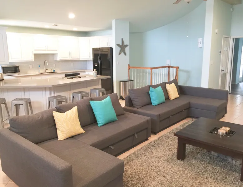 Stellar beach location! Enjoy the perfect blend of comfort and convenience at our vacation beach rental townhome! Contact us for seasonal discounts! Need additional info message us for answers! Whether you're planning a family reunion, a getaway with friends, or just need separate living and pet-friendly home has it all. Secure your dates today and start counting down to an unforgettable beachside retreat Lic1260. The space Perfect Location! Just 1/2 Block to Sapphire Beach Only 3-Minute Walk to the Sand: Enjoy easy sapphire beach access. Just grab your towel and go! Spacious & Comfortable: Indoor Comfort: Relax in our huge 2300 sq ft living area with 2 balconies. Parking & More: Our extra large driveway accommodates watercraft, trailers, boats, and cars. Amenities Galore! Complete Comfort & Convenience: Air Conditioning: Stay cool with central air conditioning. Backyard: Private and fully fenced for your enjoyment. Bathtub: Perfect for relaxing baths. BBQ Grill: Ideal for outdoor cooking. Beach Access: A nearby beach for guests to enjoy. Beach Essentials: Beach towels and wagon Bed Linens: Fresh and clean linens provided. Children’s Amenities: Books, toys, and dinnerware for the little ones. Coffee Maker: Brew your favorite coffee. Cooking Basics: Includes pots, pans, oil, salt, and pepper. Dedicated Workspace: A desk or table with a comfortable chair for working. Dishes and Silverware: Includes bowls, chopsticks, plates, cups, etc. Dishwasher: Convenient cleaning. Dryer: Included with your stay, in-unit. Essentials: Towels, bed sheets, soap, and toilet paper. Extra Pillows and Blankets: For added comfort. Fire Extinguisher: Safety first. First Aid Kit: For any minor emergencies. Free Parking: On the premises. Game Console: PS4 system for entertainment. Hair Dryer: Included. Hangers: Provided for your convenience. Heating: Stay warm on cooler nights. Hot Water: Always available. Iron: Included for your convenience. Kitchen: Fully equipped space for cooking. Long-term Stays: Allowed for 28 days or more. Microwave: Easy meal prep. Outdoor Dining Area: Enjoy meals outside. Outdoor Furniture: Relax in the fresh air. Oven: For all your baking needs. Pack ’n Play/Travel Crib: Available for young children. Patio or Balcony: Private space for relaxation. Private Entrance: Separate street or building entrance. Private Living Room: Comfortable and private. Refrigerator: Keep your food fresh. Shampoo: Provided for your convenience. Smoke Alarm: Safety feature. Stove: Electric stove for cooking. TV: HD with Amazon Prime Video, Apple TV, Chromecast, Disney+, Fire TV, Hulu, Max, Netflix, Premium Cable, and Standard Cable. Use your password to stream. Washer: Included with your stay, in-unit. WiFi: Available throughout the listing. Spacious Parking: Benefit from a 2-car garage and a 4-car driveway, offering plenty of parking space for your vehicles and watercraft. Entertainment & Comfort: Relax on the patio or balconies, and keep everyone entertained with a PS4 game system subject to change and availability. Guest access Keyless Entry: Guests receive a custom 4-digit code upon booking. Other things to note Booking Requirements A signed lease agreement (automatically when booked on a platform) and a government-issued ID (25+ years) may be required. Taxes Total tax rate is 17%: 11% hotel occupancy tax 6% booking platform tax City of South Padre Island: 8.5% Venue Tax: 2% Cameron County Venue Tax: 0.5% Strict Cancellation Policy Free Cancellation: Within 48 hours of booking and at least 14 days before check-in. 50% Refund: If canceled up to 7 days before check-in (includes nightly rate and cleaning fee, but not service fee). 60 Days Notice: For a 50% refund, cancel 60 days before check-in. Important Notes No refund for nights not spent if canceled less than 60 days in advance or early departure. Cleaning fees refunded if the guest does not check in. Airbnb service fee is non-refundable. For complaints, notify Airbnb within 24 hours of check-in. Airbnb mediates all disputes. Book Now: Ensure a smooth stay at our well-managed property!