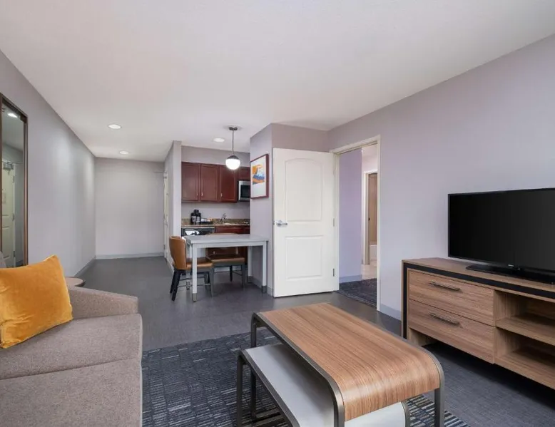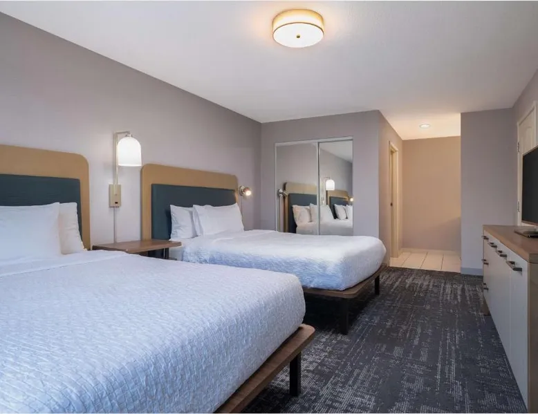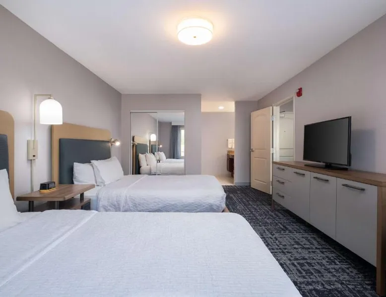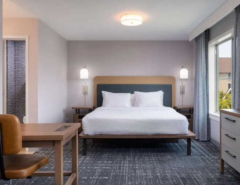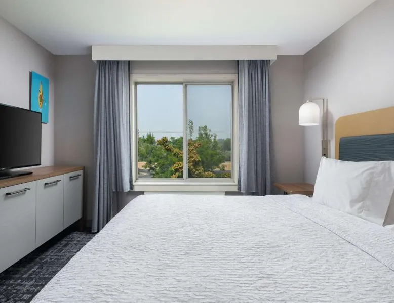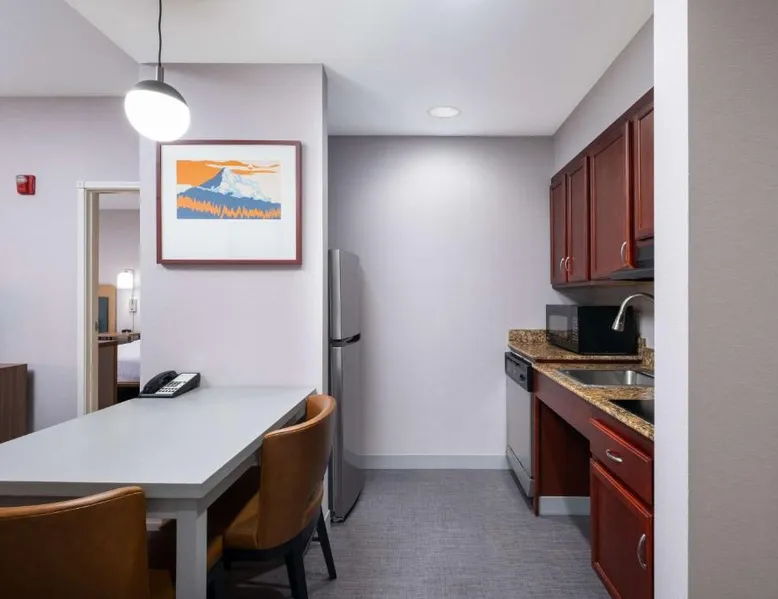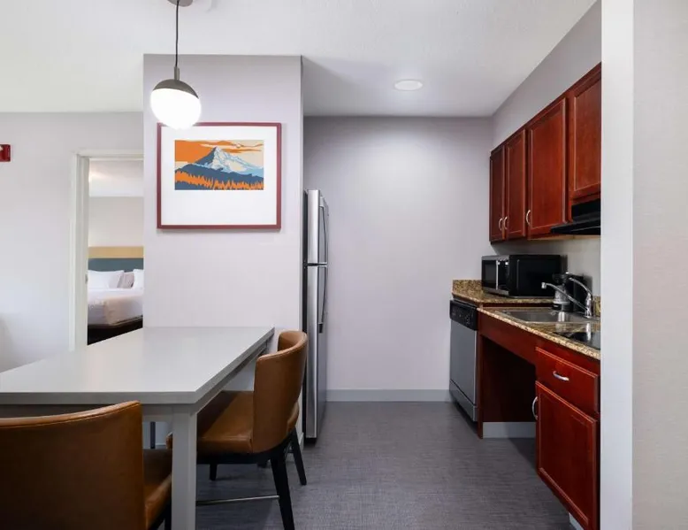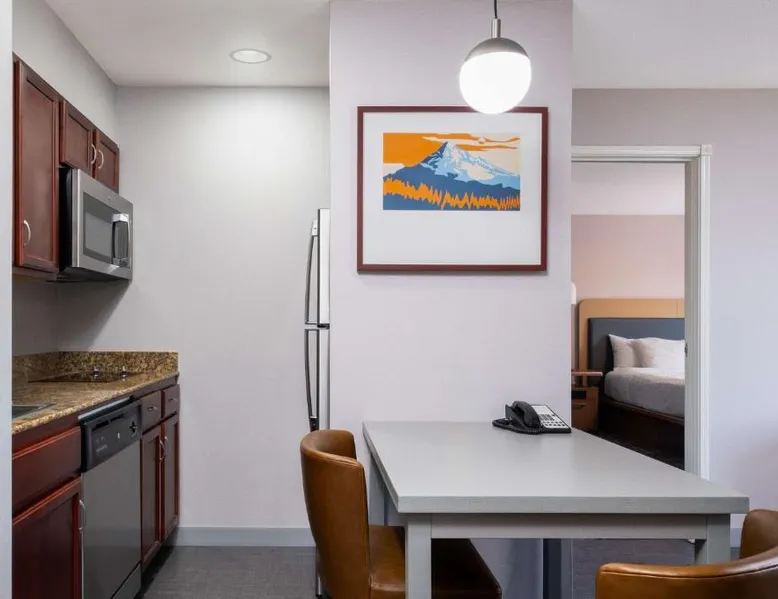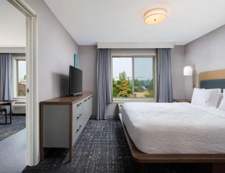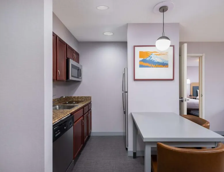 Comfortable Accommodations: Homewood Suites Medford in Medford offers spacious rooms with air-conditioning, kitchen facilities, and free WiFi. Guests enjoy amenities such as a fitness room, hot tub, and 24-hour front desk. Convenient Facilities: The hotel provides a free airport shuttle service to Rogue Valley International-Medford, 5.6 mi away. Additional services include a shuttle service, free on-site parking, and a continental buffet breakfast. Local Attractions: Nearby attractions include Oregon Shakespeare Festival (12 mi), Lithia Park (12 mi), and Ashland Library (12 mi). An ice-skating rink is also available in the surrounding area. Guest Satisfaction: Guests appreciate the room size, cleanliness, and comfort, making Homewood Suites Medford a preferred choice for accommodations. In the well-equipped kitchen, guests will find a stovetop, a refrigerator, a dishwasher and kitchenware. This studio has air conditioning, heating and a flat-screen TV. The unit has 2 beds.