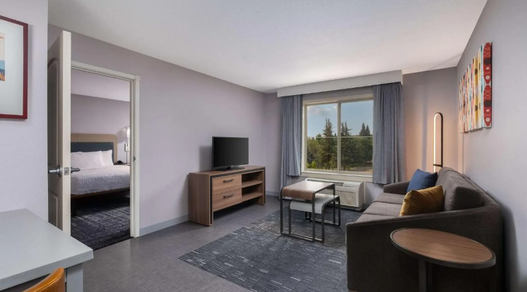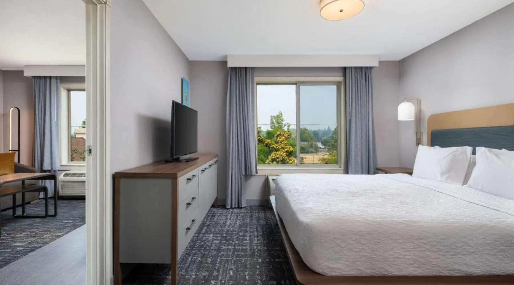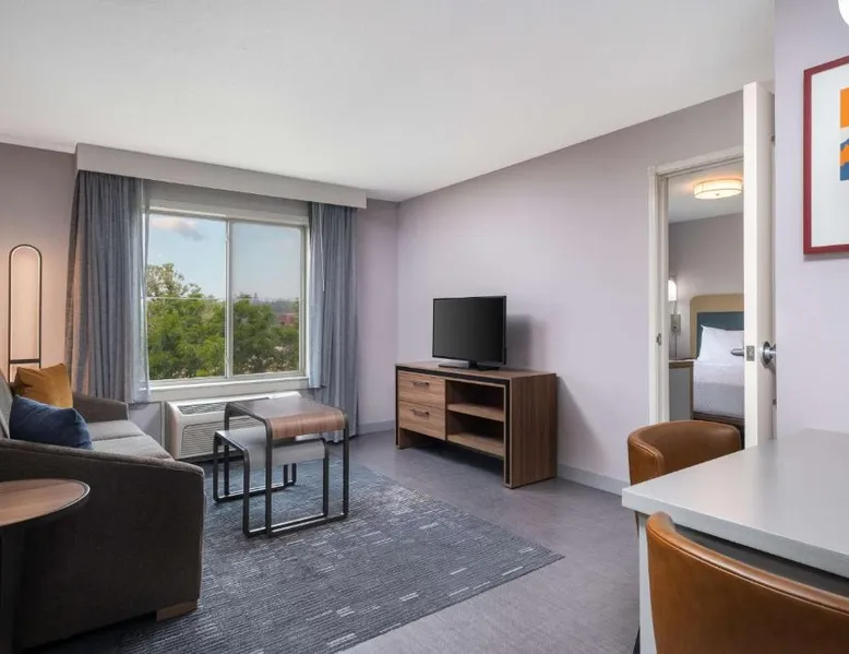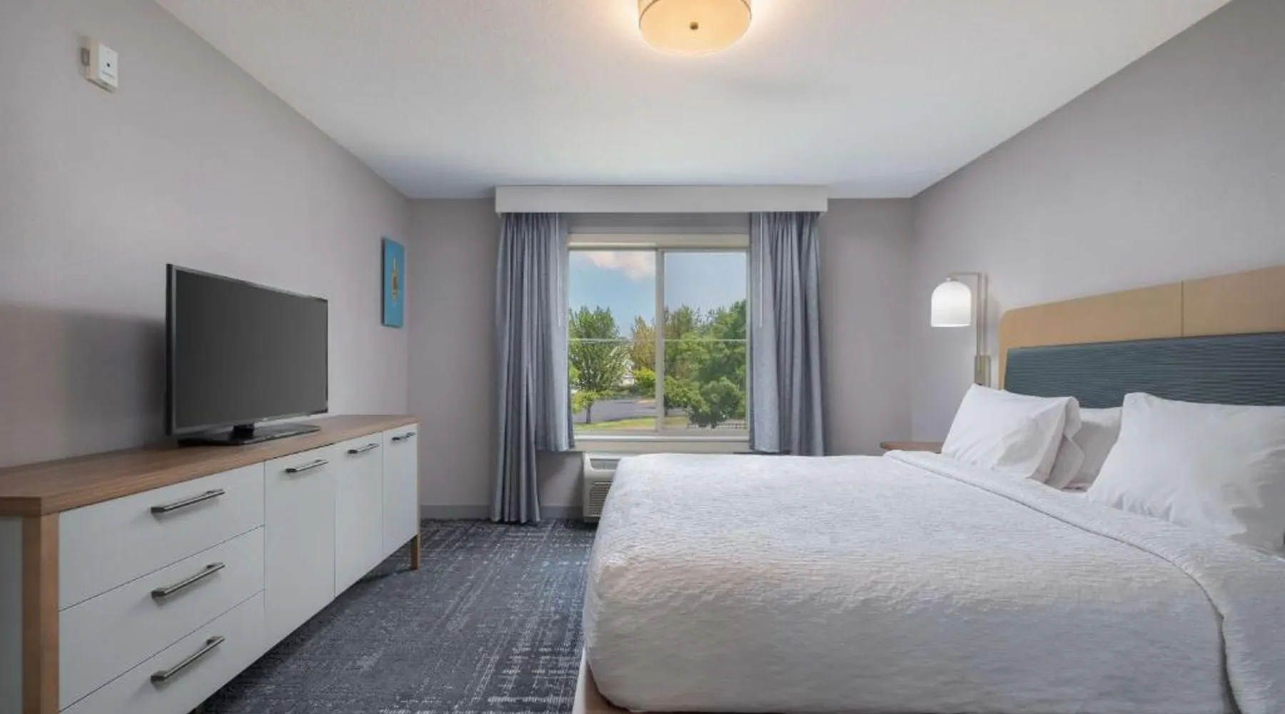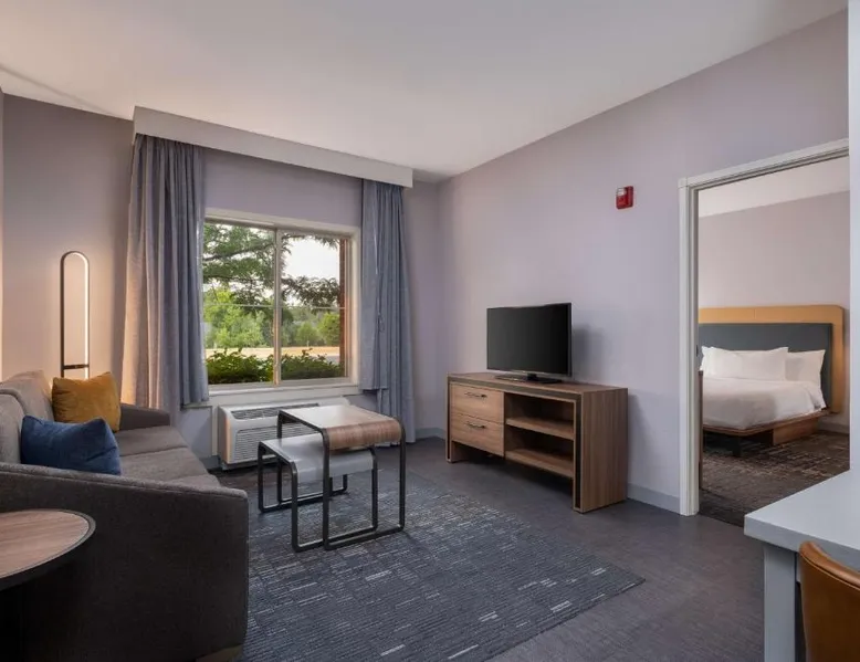 Comfortable Accommodations: Homewood Suites Medford in Medford offers spacious rooms with air-conditioning, kitchen facilities, and free WiFi. Guests enjoy amenities such as a fitness room, hot tub, and 24-hour front desk. Convenient Facilities: The hotel provides a free airport shuttle service to Rogue Valley International-Medford, 5.6 mi away. Additional services include a shuttle service, free on-site parking, and a continental buffet breakfast. Local Attractions: Nearby attractions include Oregon Shakespeare Festival (12 mi), Lithia Park (12 mi), and Ashland Library (12 mi). An ice-skating rink is also available in the surrounding area. Guest Satisfaction: Guests appreciate the room size, cleanliness, and comfort, making Homewood Suites Medford a preferred choice for accommodations. In the well-equipped kitchen, guests will find a stovetop, a refrigerator, a dishwasher and kitchenware. This studio has air conditioning, heating and a flat-screen TV. The unit has 2 beds.