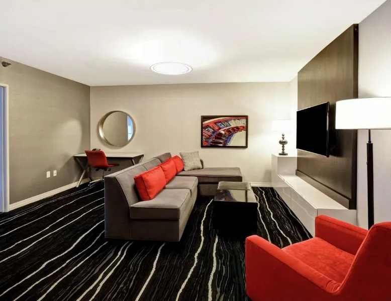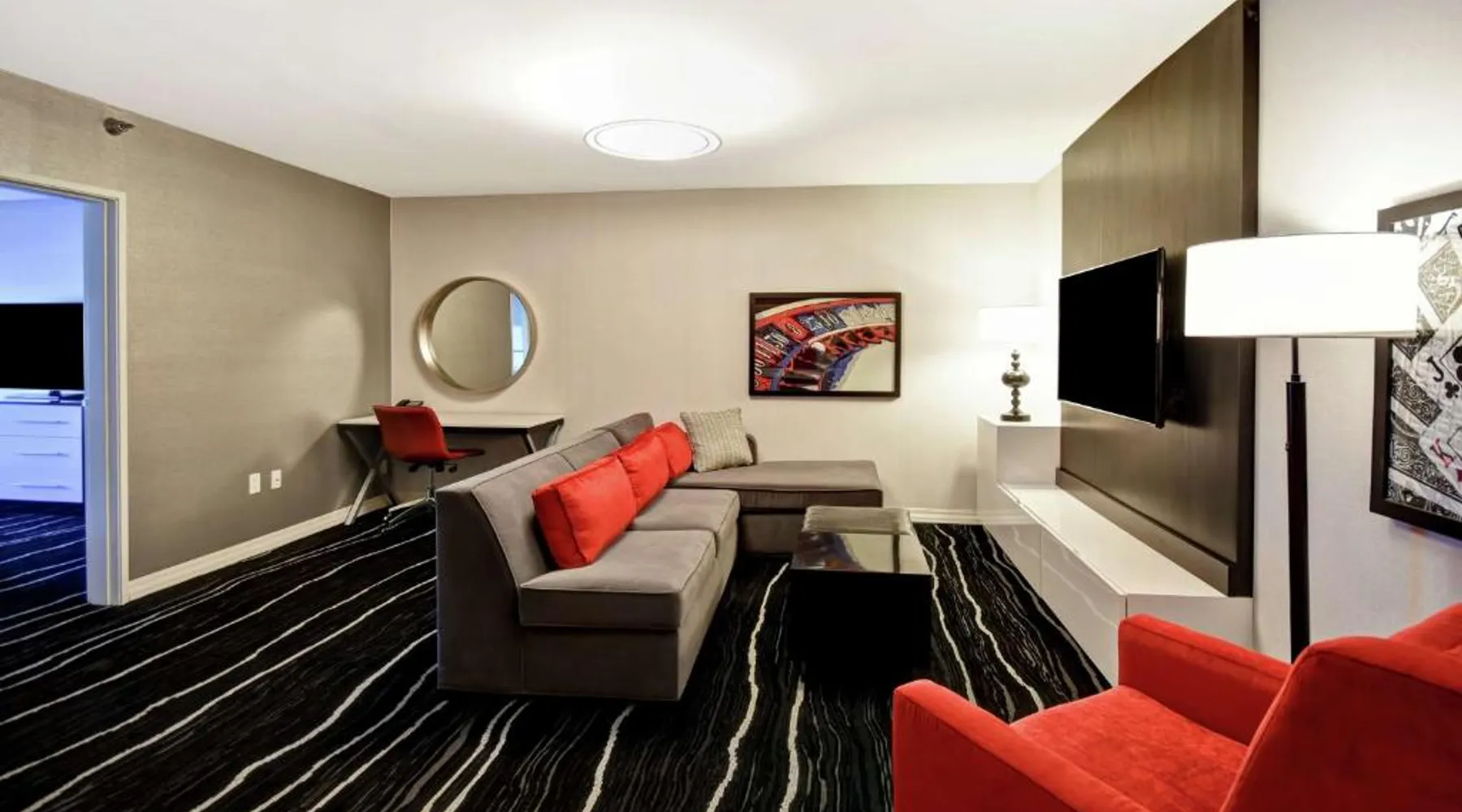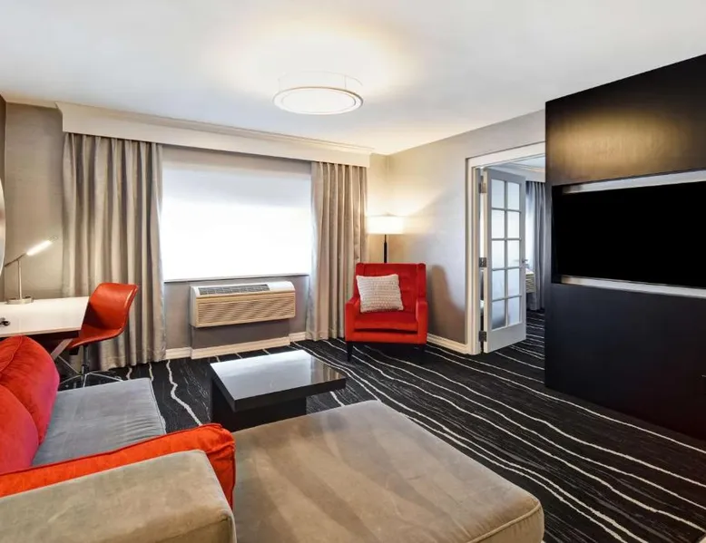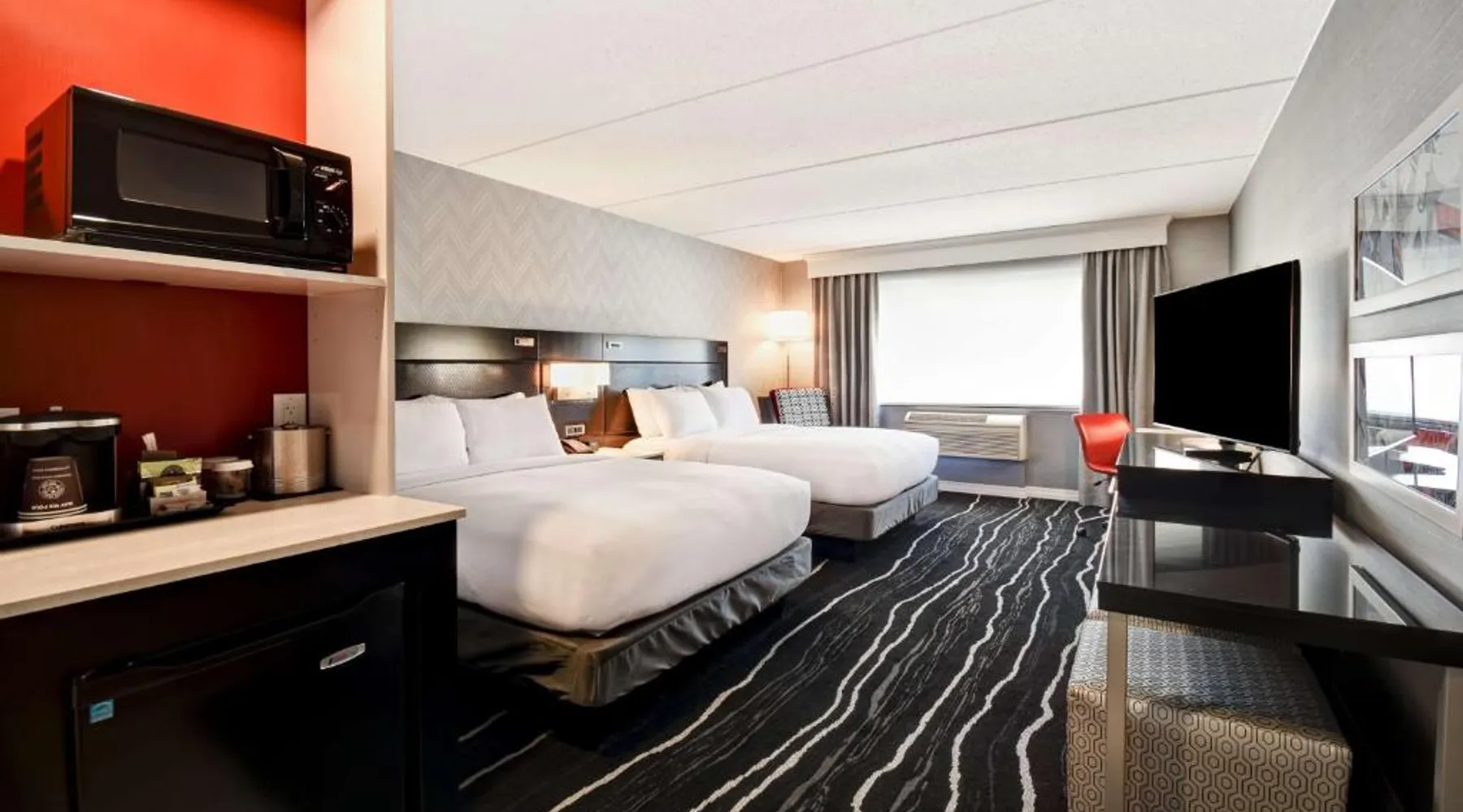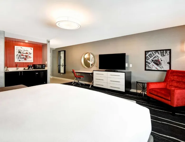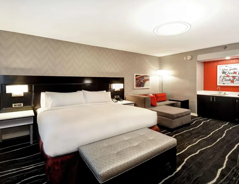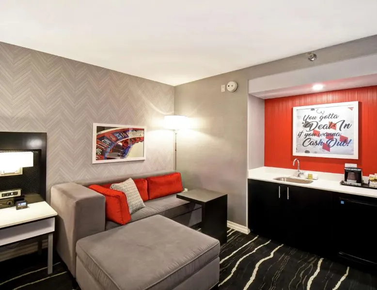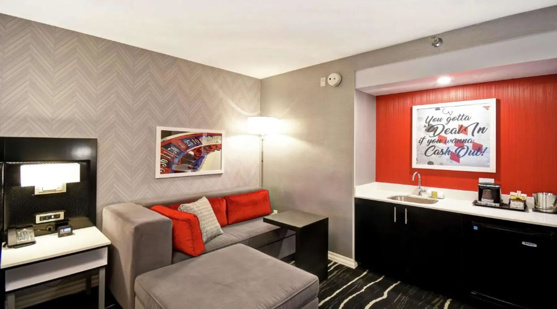 DoubleTree by Hilton Deadwood at Cadillac Jack's is located on Main Street in Deadwood and features a casino, as well as an indoor pool and a hot tub. Free WiFi is provided and a breakfast is served daily. All guest rooms have a flat-screen cable TV, a refrigerator, a microwave and a coffee maker. Some rooms offer a sofa sleeper and wet bar. DoubleTree by Hilton Deadwood at Cadillac Jack's offers a fitness center and parking. Banquet and meeting space also is available and able to accommodate up to 100 for banquets and 300 people for conferences. Rapid City Regional Airport is 40 mi away. This suite features air conditioning, a tea and coffee maker and a TV. The unit offers 2 beds.