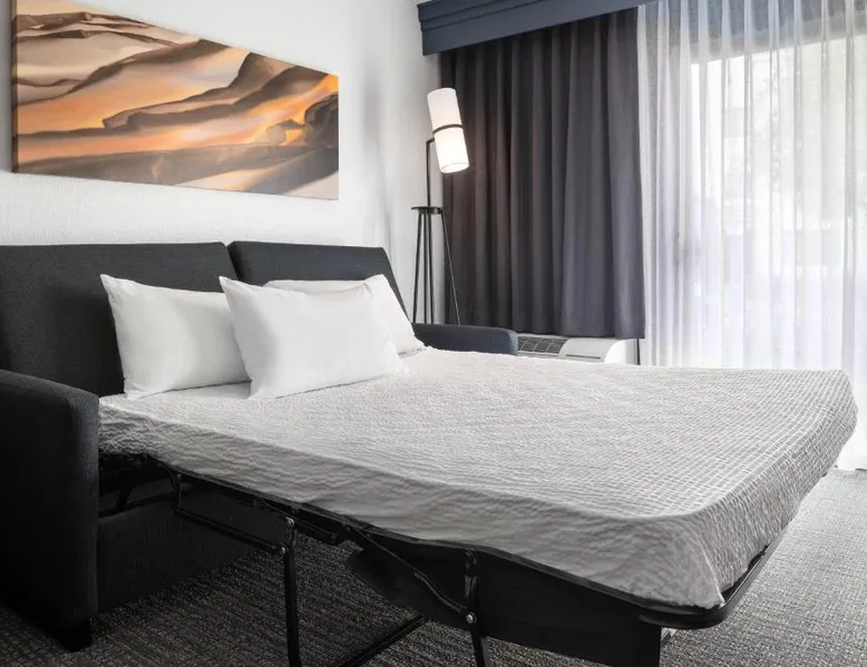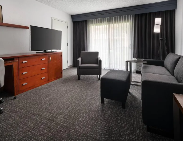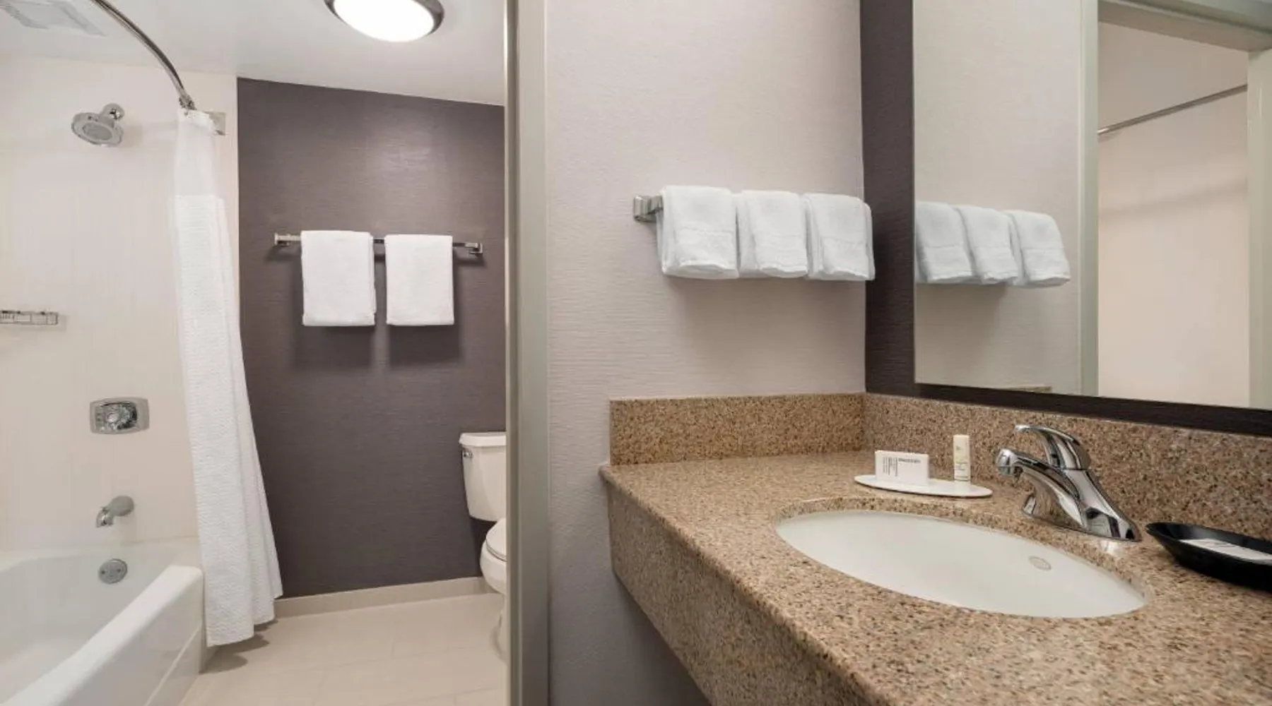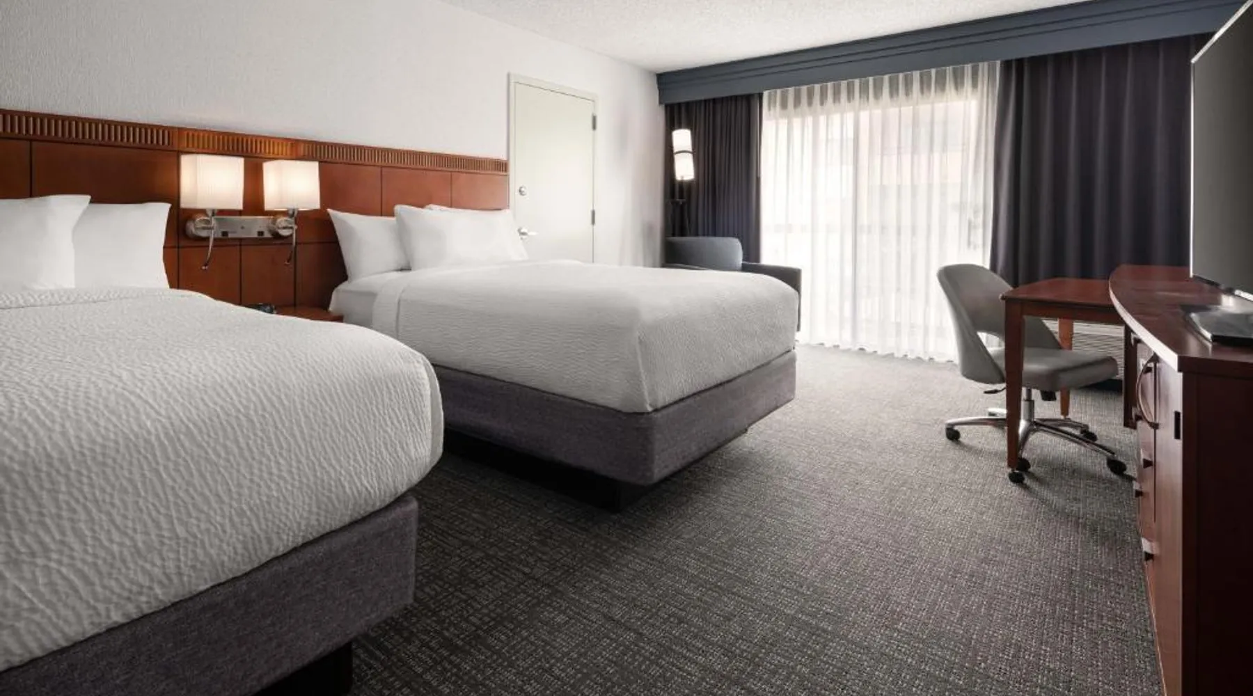 Comfortable Accommodations: Courtyard Fremont Silicon Valley in Fremont offers family rooms with air-conditioning, private bathrooms, and free WiFi. Each room includes a work desk, refrigerator, and TV. Dining and Leisure: The family-friendly restaurant serves American cuisine for dinner in a traditional ambiance. Guests can also enjoy a bar and relax in the on-site restaurant. Convenient Location: Located 11 mi from Norman Y. Mineta San Jose International Airport, the hotel is near attractions such as San Jose Convention Center (12 mi) and Shoreline Amphitheater (15 mi). Guest Satisfaction: Highly rated for its attentive staff and impeccable room cleanliness. The double room features air conditioning. The unit has 2 beds.