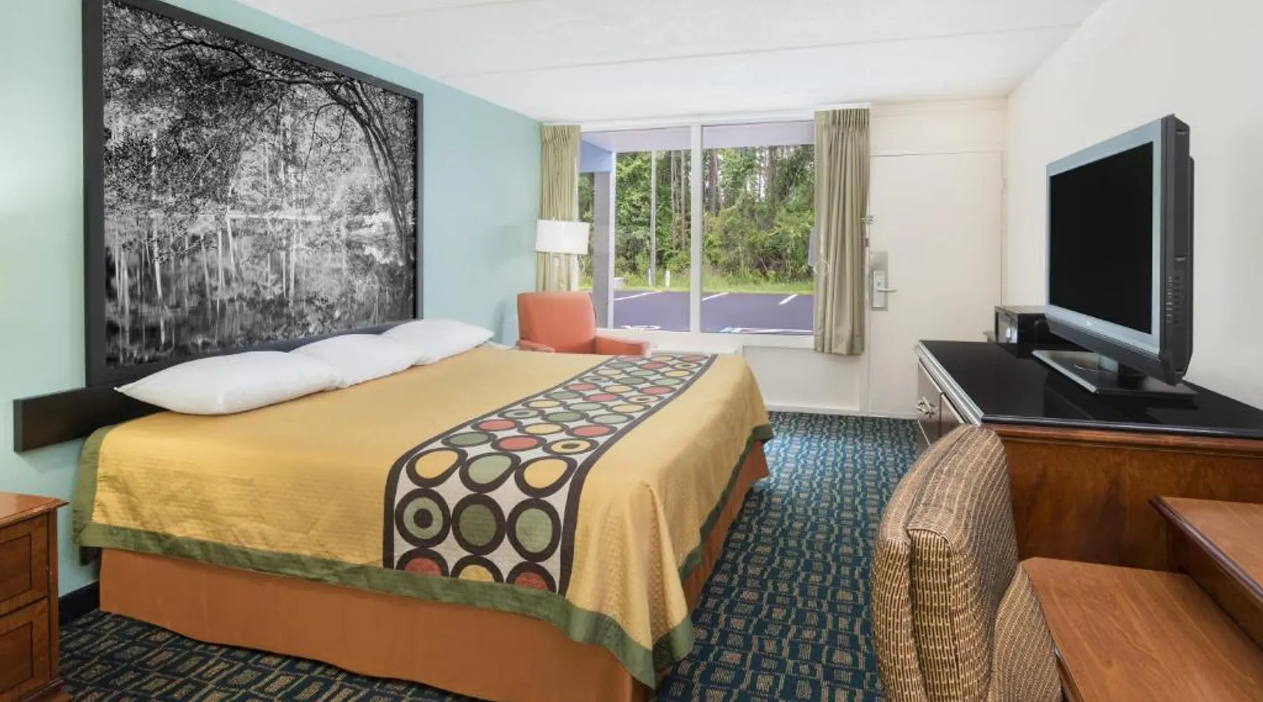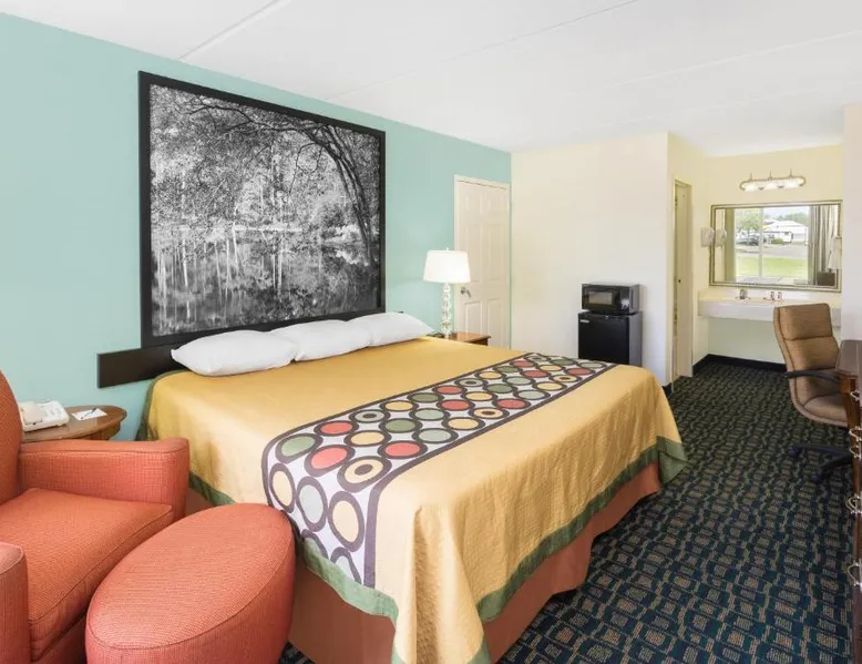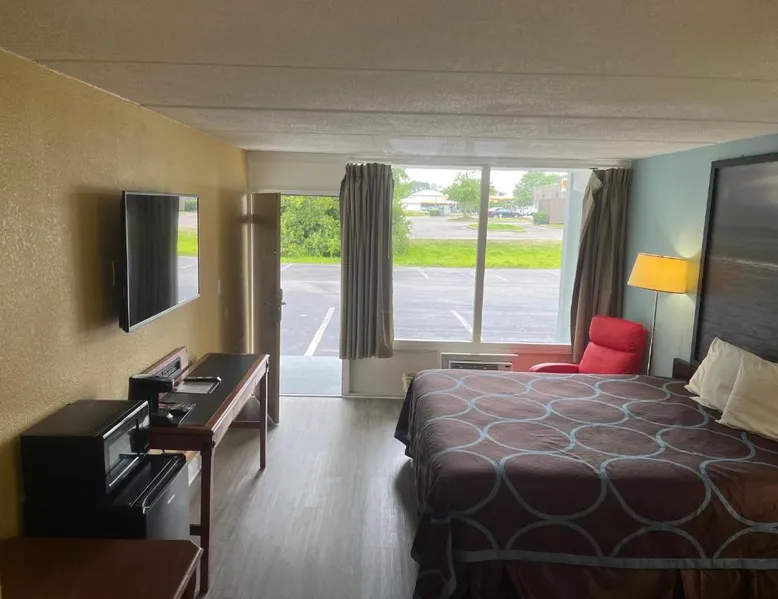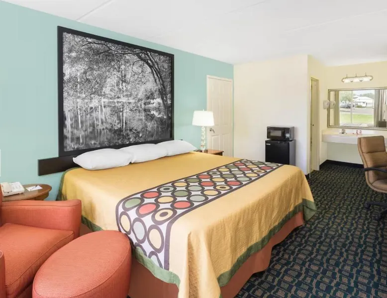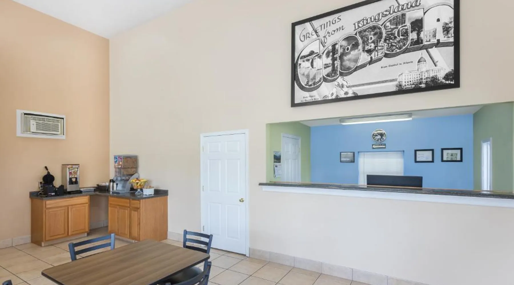 Comfortable Accommodations: Super 8 By Wyndham Kingsland I-95 Naval Base Area in Kingsland offers family rooms with air-conditioning, private bathrooms, and free WiFi. Each room includes a bath, hairdryer, refrigerator, microwave, TV, and wardrobe. Convenient Facilities: Guests benefit from a 24-hour front desk, ground-floor units, and a seating area. Additional amenities include free toiletries, shower, and a microwave. Dining Options: A complimentary American breakfast with juice is served daily. Prime Location: Located 22 mi from Jacksonville International Airport, the hotel is near attractions such as Amelia Island Historic District (25 mi) and Amelia Island Lighthouse (25 mi). Guests appreciate the friendly staff and excellent service. Offering free toiletries, this suite includes a private bathroom with a bath, a shower and a hairdryer. The suite offers air conditioning, a wardrobe, heating and a flat-screen TV with cable channels. The unit offers 1 bed.