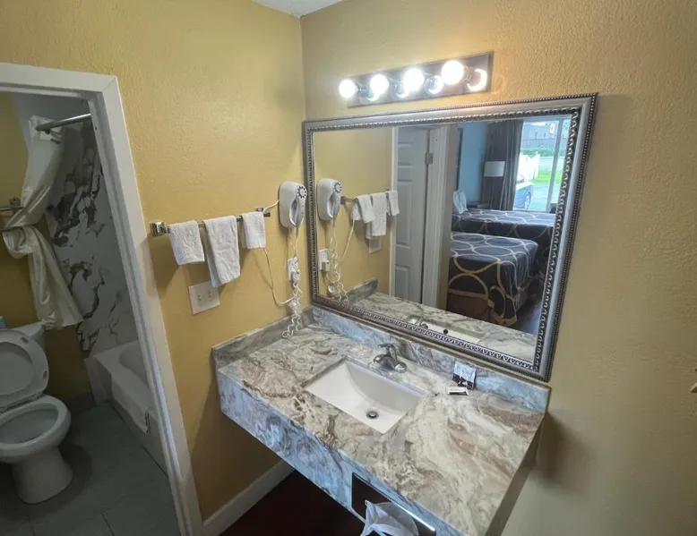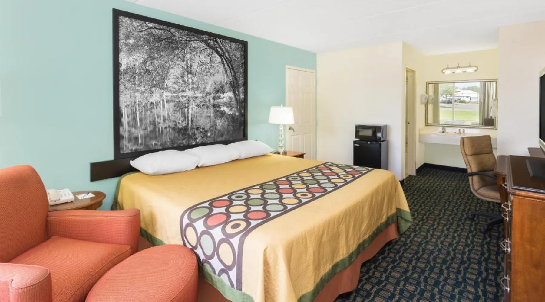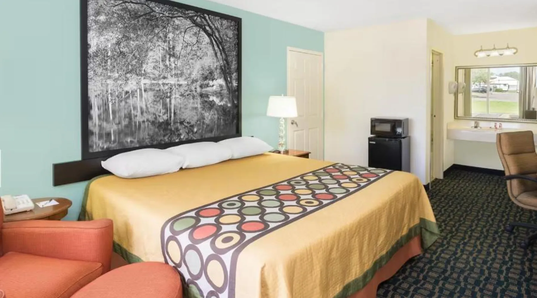Comfortable Accommodations: Super 8 By Wyndham Kingsland I-95 Naval Base Area in Kingsland offers family rooms with air-conditioning, private bathrooms, and free WiFi. Each room includes a bath, hairdryer, refrigerator, microwave, TV, and wardrobe. Convenient Facilities: Guests benefit from a 24-hour front desk, ground-floor units, and a seating area. Additional amenities include free toiletries, shower, and a microwave. Dining Options: A complimentary American breakfast with juice is served daily. Prime Location: Located 22 mi from Jacksonville International Airport, the hotel is near attractions such as Amelia Island Historic District (25 mi) and Amelia Island Lighthouse (25 mi). Guests appreciate the friendly staff and excellent service. Offering free toiletries, this suite includes a private bathroom with a bath, a shower and a hairdryer. The suite offers air conditioning, a wardrobe, heating and a flat-screen TV with cable channels. The unit offers 1 bed.
