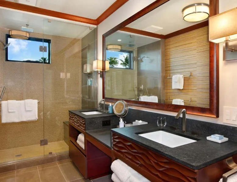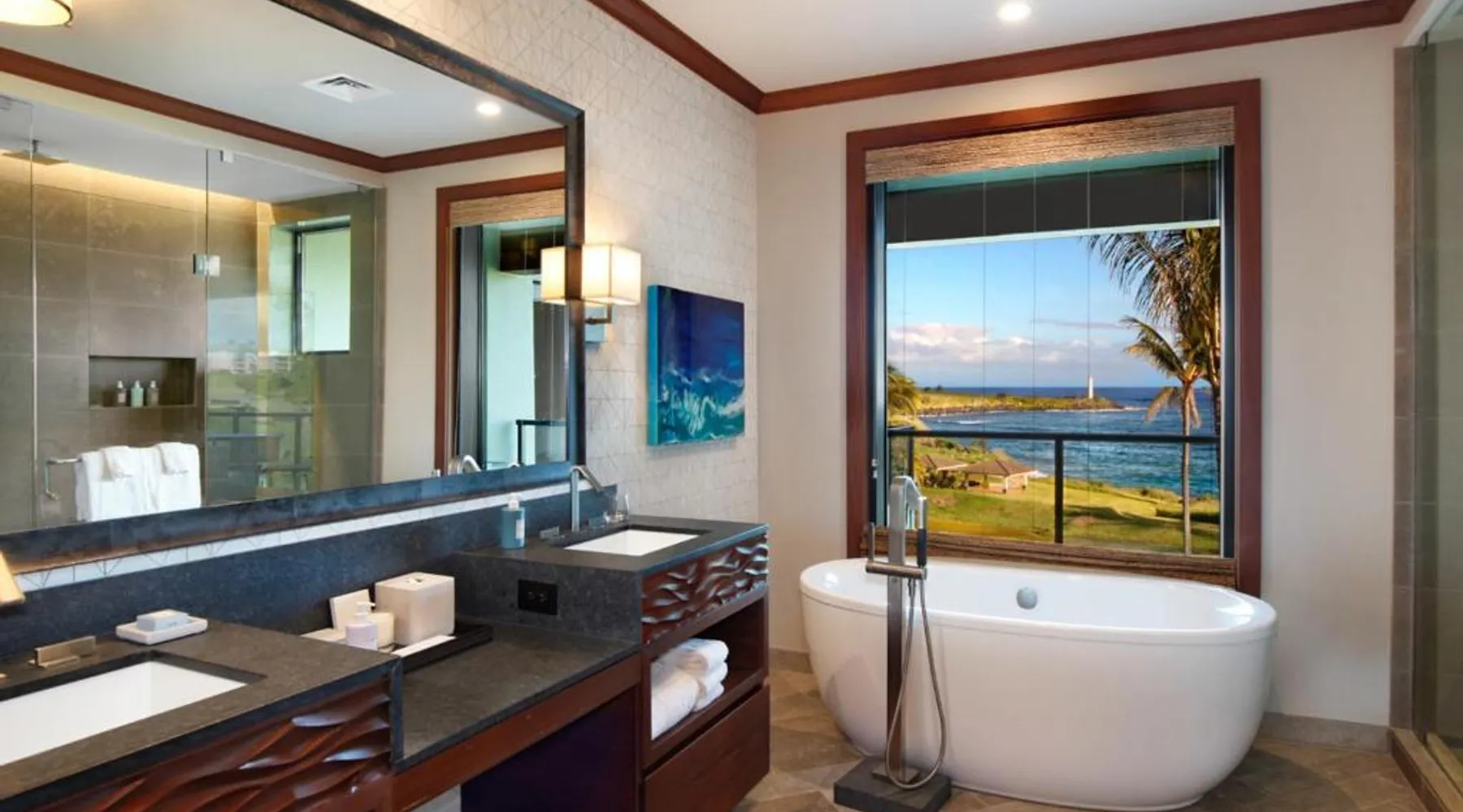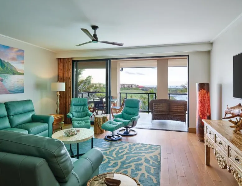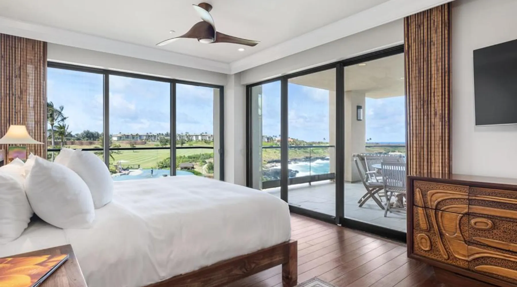 Elegant Accommodations: Timbers Kauai Ocean Club & Residences in Lihue offers luxurious rooms with sea views, balconies, and private pools. Each room features a kitchen, bathrobes, and modern amenities. Exceptional Facilities: Guests enjoy an infinity swimming pool, spa facilities, fitness center, sun terrace, and free WiFi. Additional amenities include a hot tub, outdoor fireplace, and barbecue facilities. Dining Experience: The hotel serves continental, American, and Asian breakfasts with fresh pastries, pancakes, and fruits. Dining options include lunch and dinner at the restaurant, bar, and outdoor seating areas. Prime Location: Located 1.9 mi from Lihue Airport, the hotel is a short walk from Kalapaki Beach and near attractions such as The Ocean Course At Hokuala and Nawiliwili Harbor. This spacious apartment features 1 living room, 4 separate bedrooms and 4 bathrooms with a shower and bathrobes. The apartment's kitchen is available for cooking and storing food. Boasting a balcony with sea views, this apartment also features a tea and coffee maker and a flat-screen TV. The unit has 5 beds.