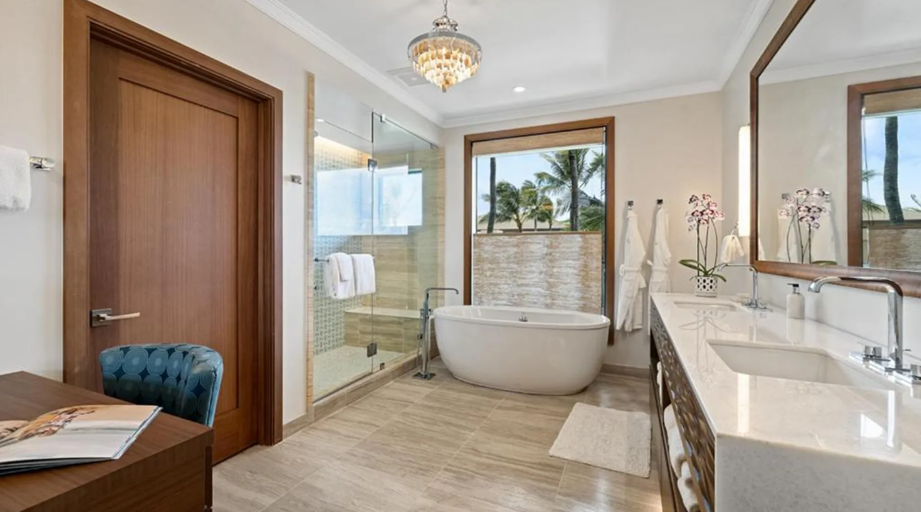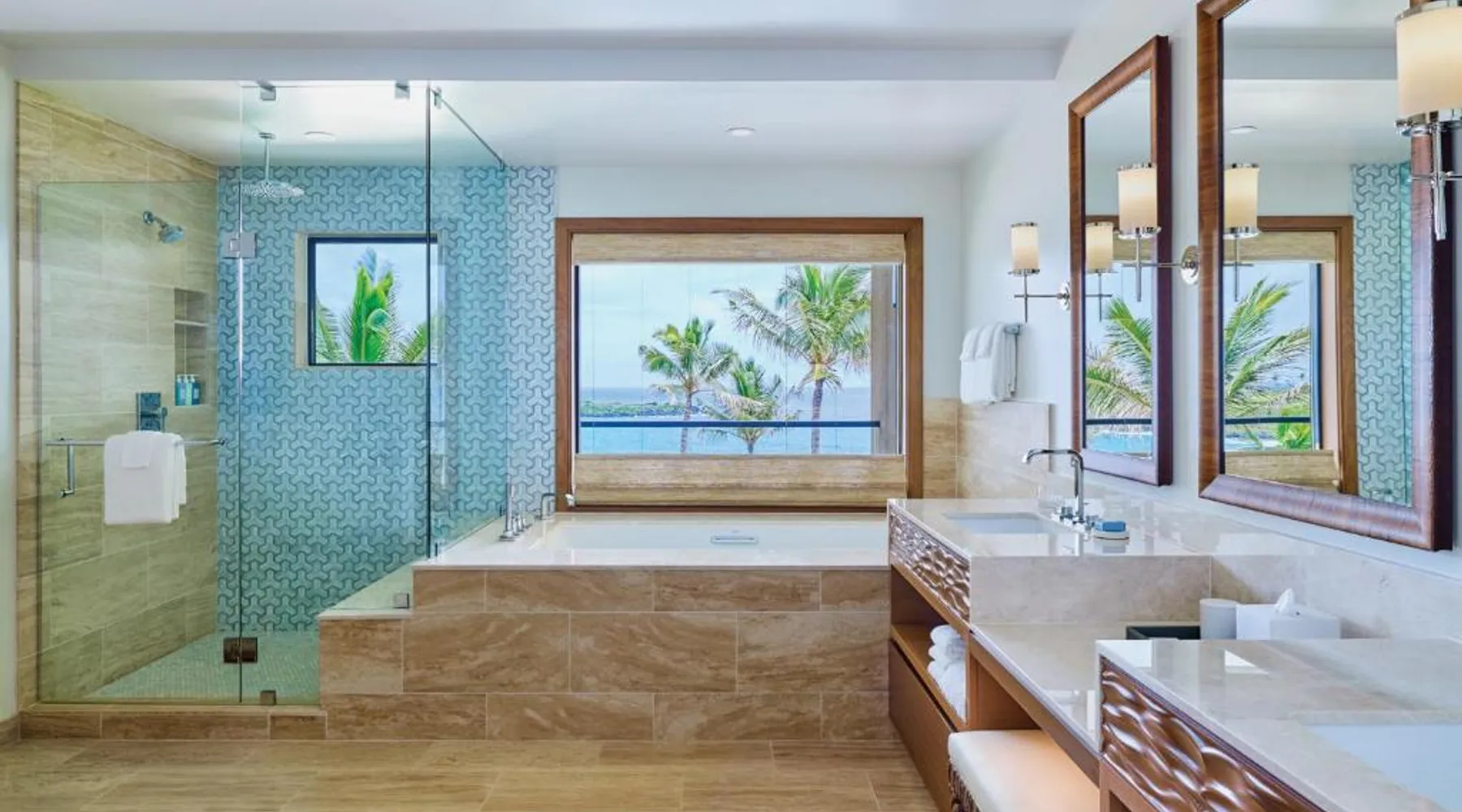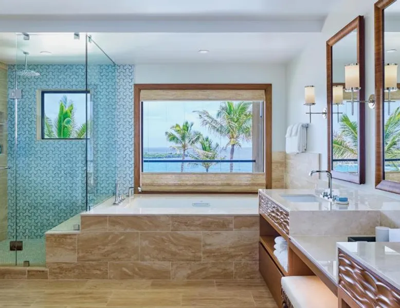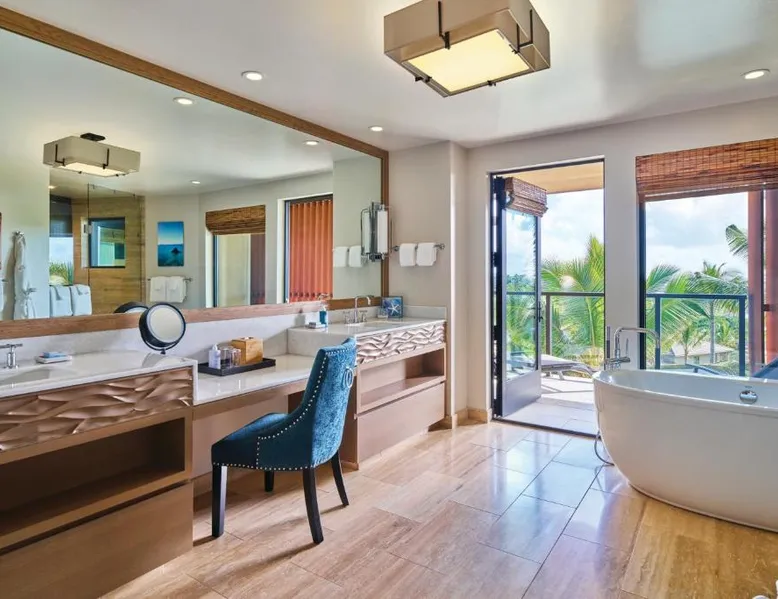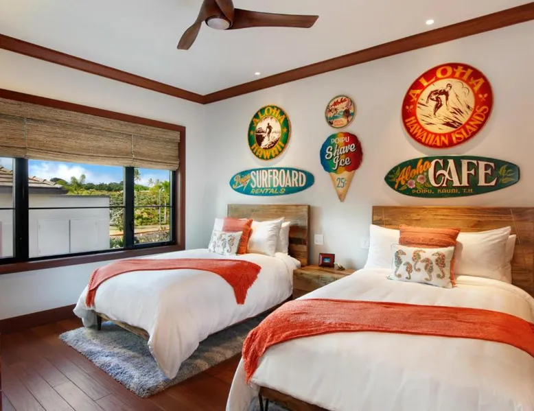 Elegant Accommodations: Timbers Kauai Ocean Club & Residences in Lihue offers luxurious rooms with sea views, balconies, and private pools. Each room features a kitchen, bathrobes, and modern amenities. Exceptional Facilities: Guests enjoy an infinity swimming pool, spa facilities, fitness center, sun terrace, and free WiFi. Additional amenities include a hot tub, outdoor fireplace, and barbecue facilities. Dining Experience: The hotel serves continental, American, and Asian breakfasts with fresh pastries, pancakes, and fruits. Dining options include lunch and dinner at the restaurant, bar, and outdoor seating areas. Prime Location: Located 1.9 mi from Lihue Airport, the hotel is a short walk from Kalapaki Beach and near attractions such as The Ocean Course At Hokuala and Nawiliwili Harbor. This spacious apartment features 1 living room, 4 separate bedrooms and 4 bathrooms with a shower and bathrobes. The apartment's kitchen is available for cooking and storing food. Boasting a balcony with sea views, this apartment also features a tea and coffee maker and a flat-screen TV. The unit has 5 beds.