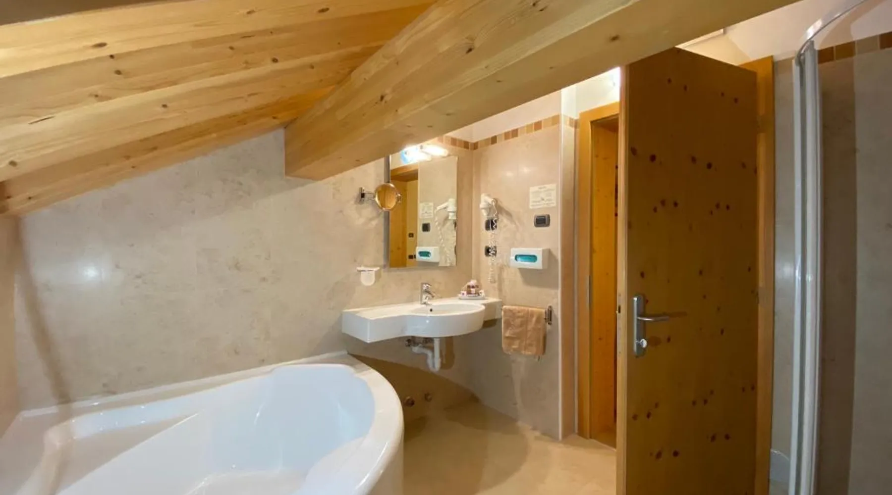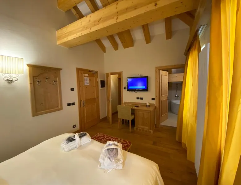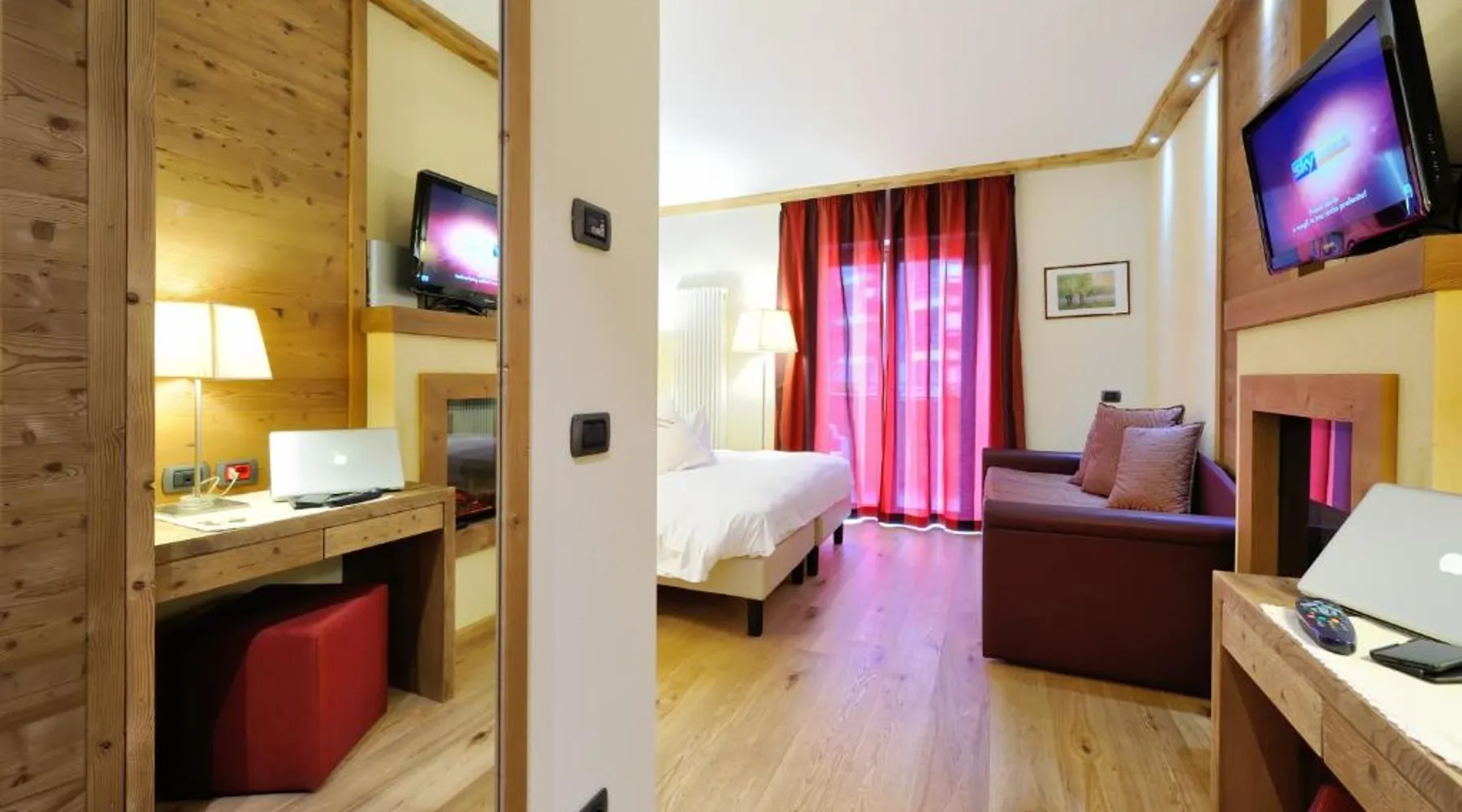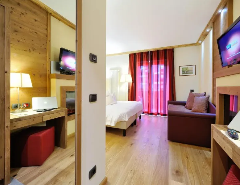 Right opposite the 3-Tre World Cup slalom circuit in Madonna di Campiglio, Alpine-style Hotel Diana includes a restaurant, bar, suites and rooms with free Wi-Fi. Ski storage is available. Set on 4 floors of a building with elevator, rooms and suites offer a mini-bar, flat-screen TV with free Sky channels and pay-per-view movie channels, and a fully equipped private bathroom. Some suites and rooms boast an electric fireplace and ski path views. Buffet breakfast includes both savory and sweet food and is served in the dining room. The restaurant specializes in international and South Tyrol dishes. On the 1st floor there is a free wellness center where guests can enjoy relaxing moments. This property is located 66 feet from the chairlift to the Miramonti ski area, and 164 feet from the Pradalago cable car. You can reach the town center in 2 minutes on foot. Featuring free toiletries and bathrobes, this triple room includes a private bathroom with a bath, a shower and a bidet. The triple room features soundproof walls, a mini-bar, a wardrobe, a safe deposit box, as well as a flat-screen TV with cable channels.