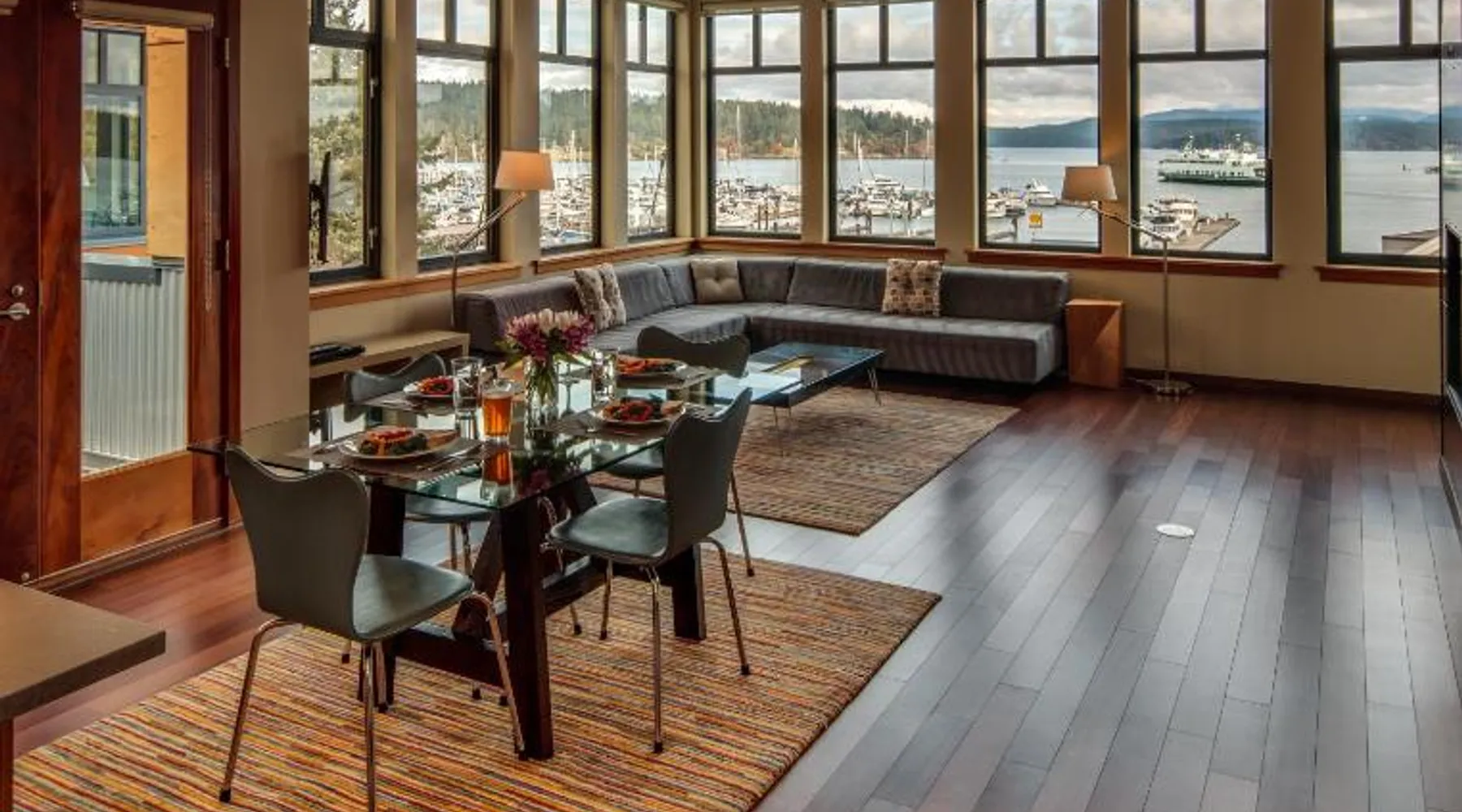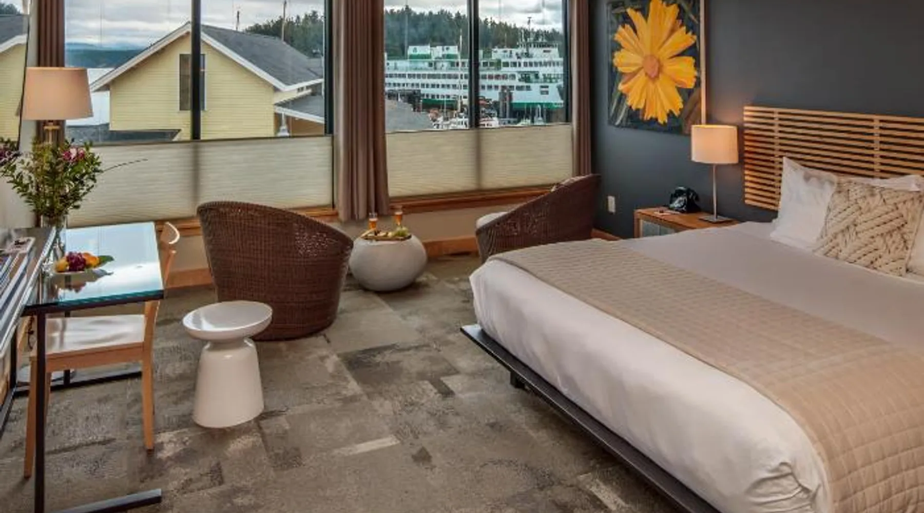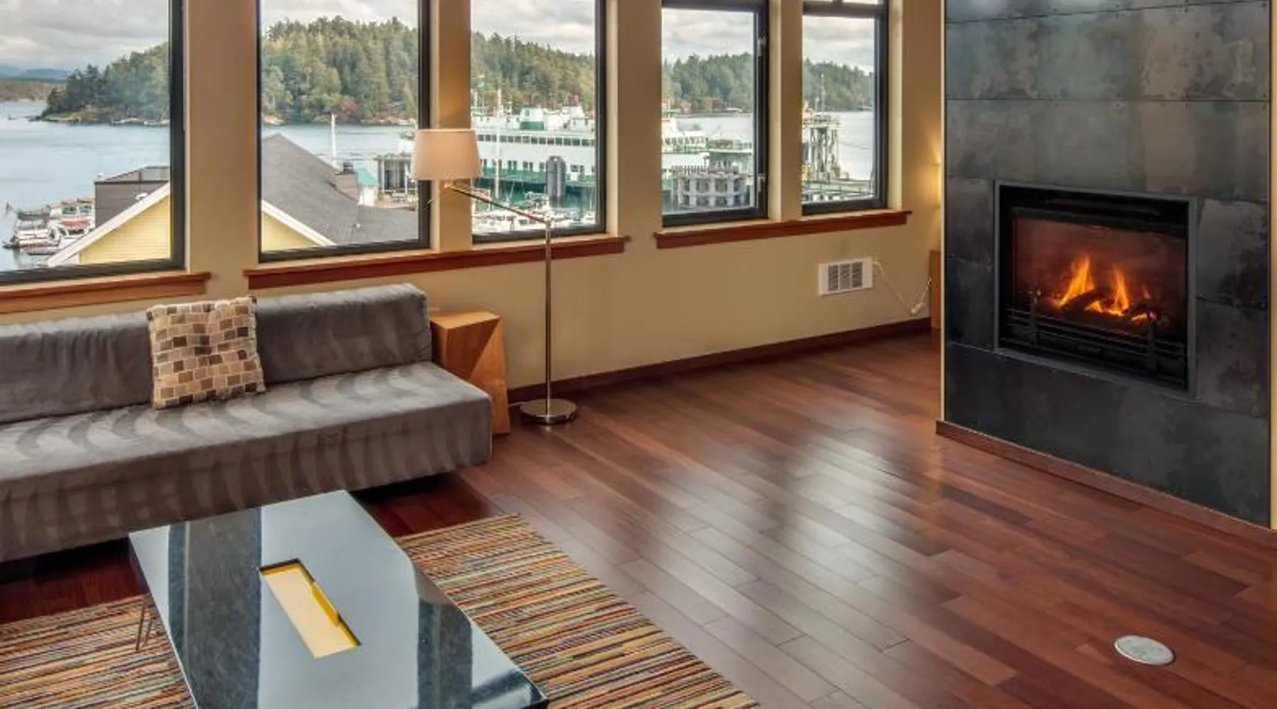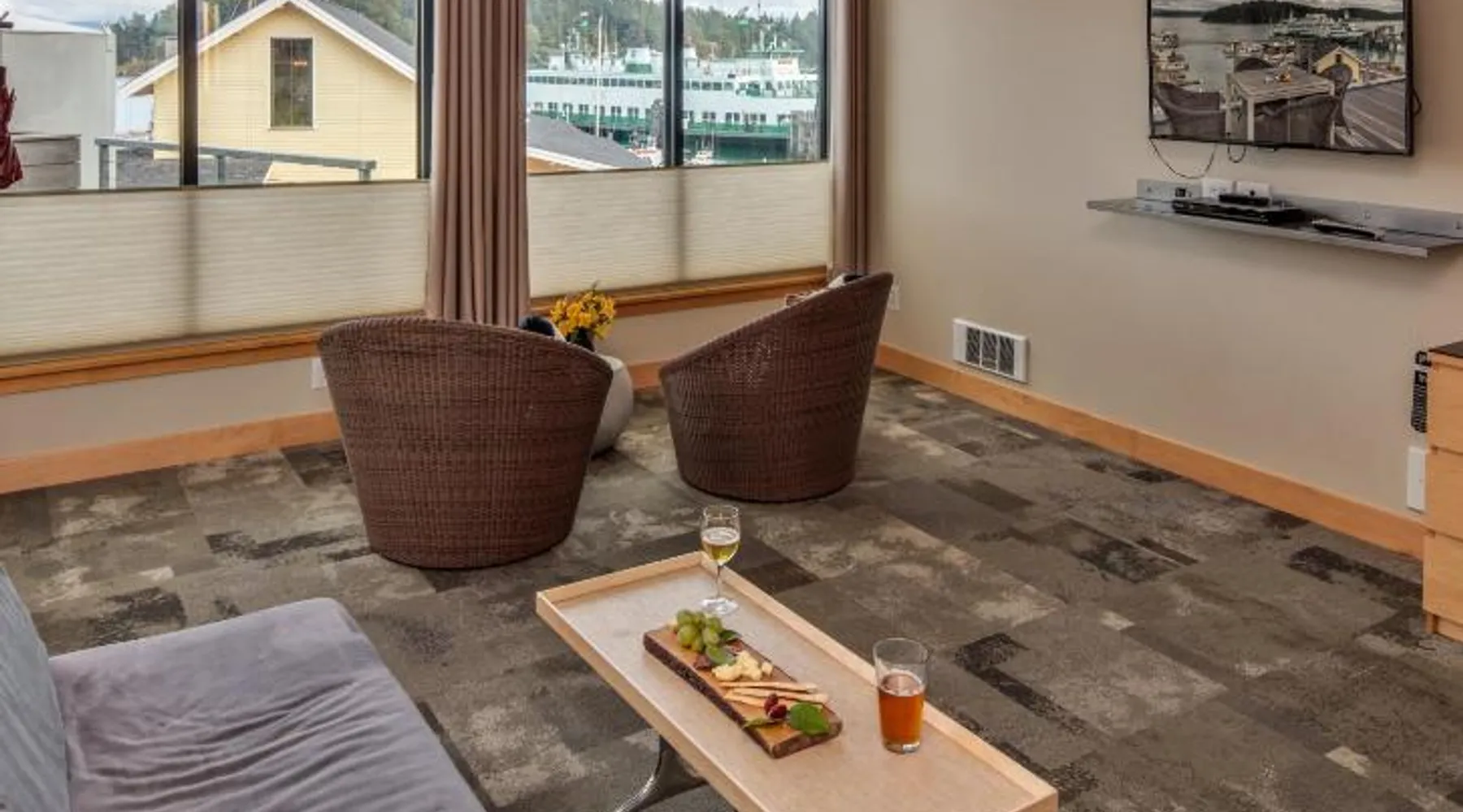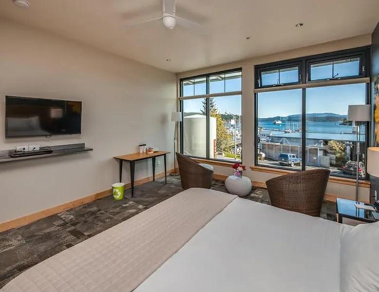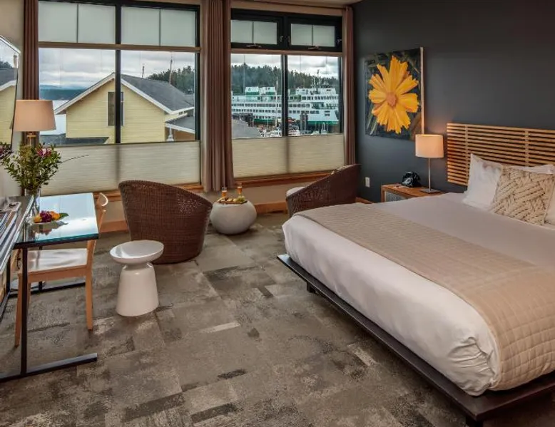 Located less than a 5-minute walk to Friday Harbor Ferry Terminal, this San Juan Islands inn features free Wi-Fi. Modern furnishings, a flat-screen TV and a private bathroom are available in each room at the Island Inn at 123 West. Downtown Friday Harbor shops and cafes are within 240 yards of the Island Inn at 123 West. Whale watching opportunities, as well as kayak and moped rentals, are located nearby. Also known as "Penthouse 3", this 2-level, 2-bedroom apartment is accessed by exterior stairs and features a harbor view, a patio, kitchen and a seating area with fireplace and flat-screen TV. Two private bathrooms with steam shower and an additional half bathroom with toilet and sink also included. Rates are based on 2 guests. A maximum of 6 guests can stay in this room. Please refer to the policies for fees that will apply for additional guests. This apartment is not pet-friendly.
