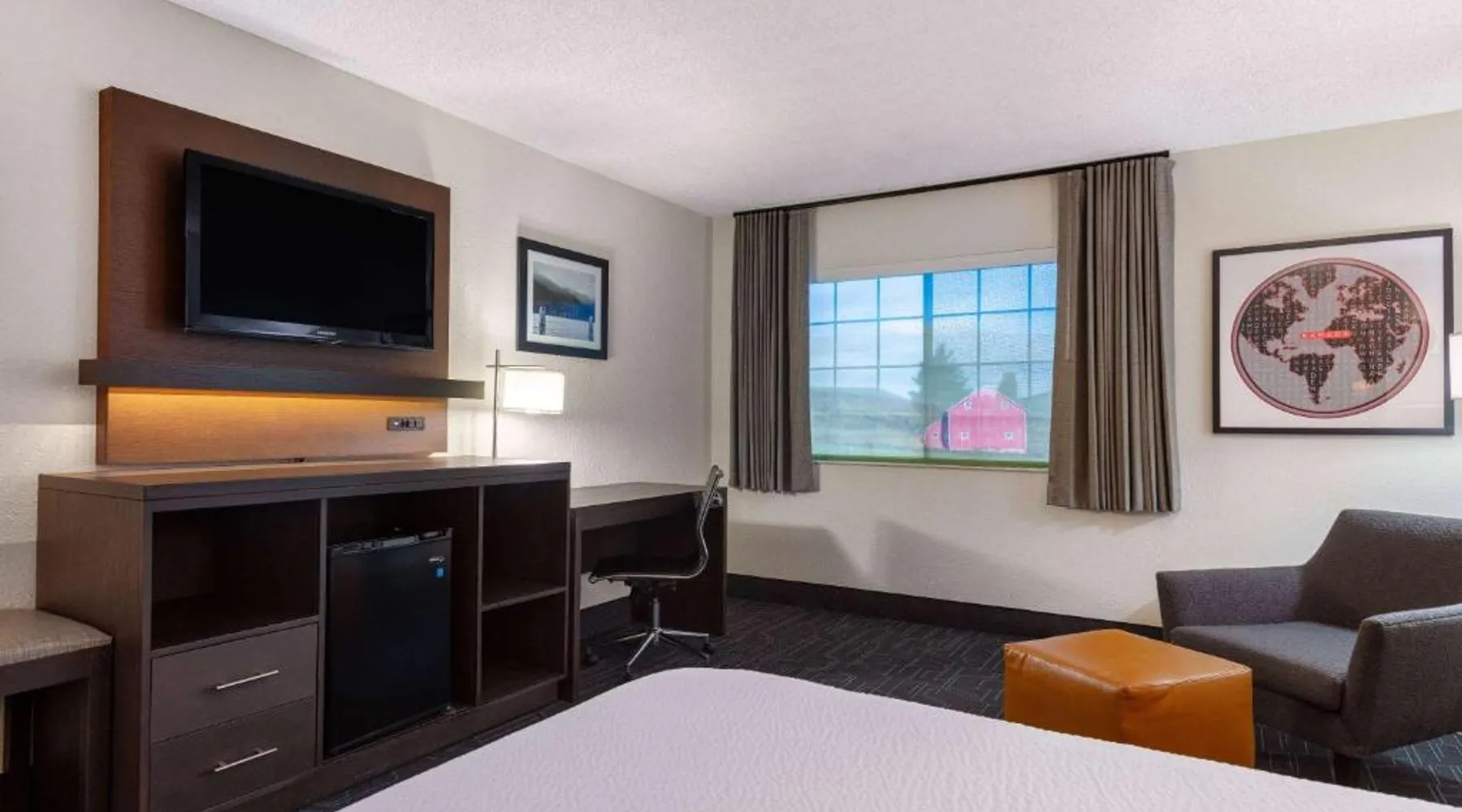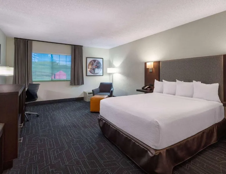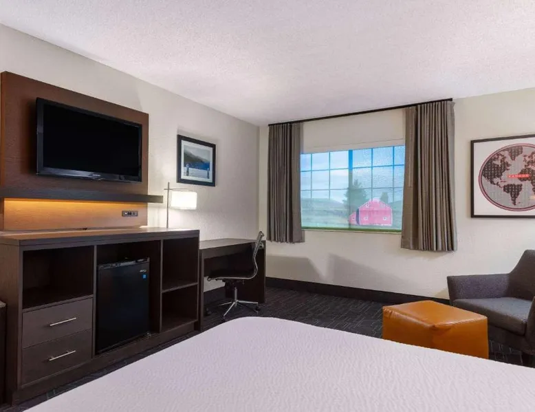 Featuring a free airport shuttle, this hotel is located in the Spokane International Airport complex, just 2 minutes’ walk away from the entrance. A free daily buffet breakfast is included. Styled in pine wood furnishings, guest rooms provide free Wi-Fi, cable TV and free toiletries in the private bathrooms. A refrigerator is also provided. Remington’s Lounge and Grille serve breakfast, lunch and dinner at Spokane Airport Ramada by Wyndham. A fitness center, indoor pool and hot tub are available for guests. Fairchild Air Force Base is 9 miles away. Riverfront Park is 15 minutes’ drive away. Indian Canyon Golf Course is 5 miles away from the Ramada by Wyndham Spokane Airport. This room features a tea/coffee maker, refrigerator,