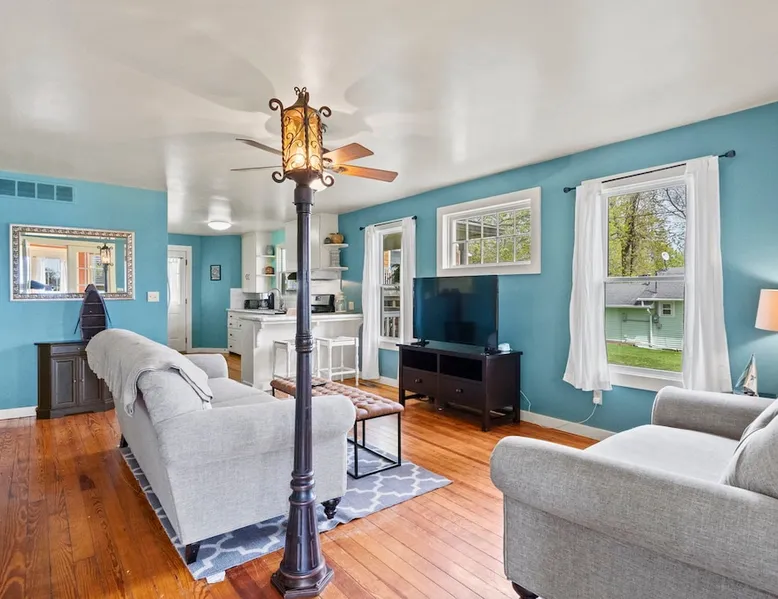 Prime location on Webster Lake! Spacious home perfect for multi-family gatherings. Each floor has a private entrance, 2 bedrooms, a bathroom, living room, in-unit laundry, kitchen, dining & living area. Entertainment: Enjoy two spacious living rooms - perfect for relaxing after a day on the lake! Both living rooms have Smart TVs and high-speed internet, perfect for streaming your favorite shows. Fully stocked kitchens with utensils, cookware, coffee pots & more for all of your cooking needs! The space Located in a peaceful, residential neighborhood with friendly neighbors. Includes lakefront pier access (short walk from property) Guest access Entire home | Boat slip | Gas grill | Outdoor space with patio | Driveway with 2-4 parking spaces Other things to note Known as "The Heart of the Lakes" and home to the Dixie Sternwheeler; Webster Lake expands over 653 acres with a maximum depth of 52 feet; well-known for Muskie fishing. Socks Marina (on the East end of lake) offers fuel, sales & boat, canoe and kayak rentals! They even DELIVER!!! Public access boat launch - 1 mile E of N. Webster; access to Webster Lake & Backwater Lake on E Backwater Rd.