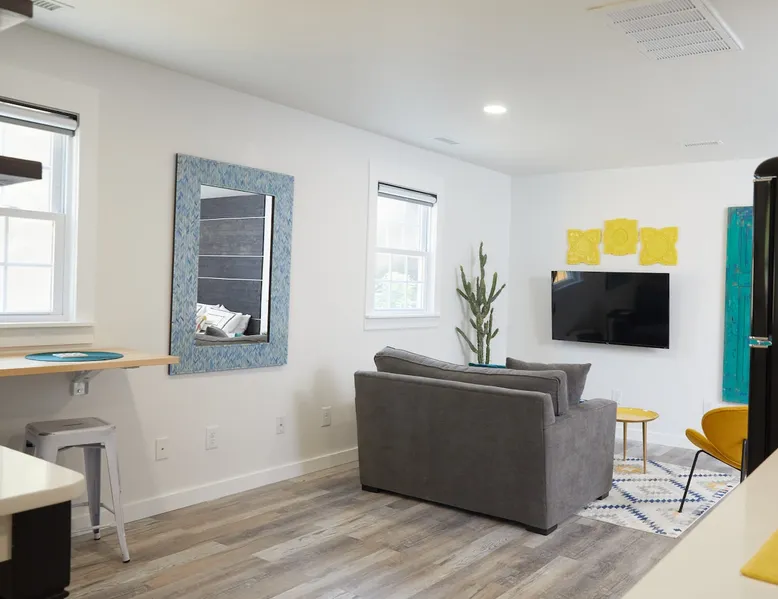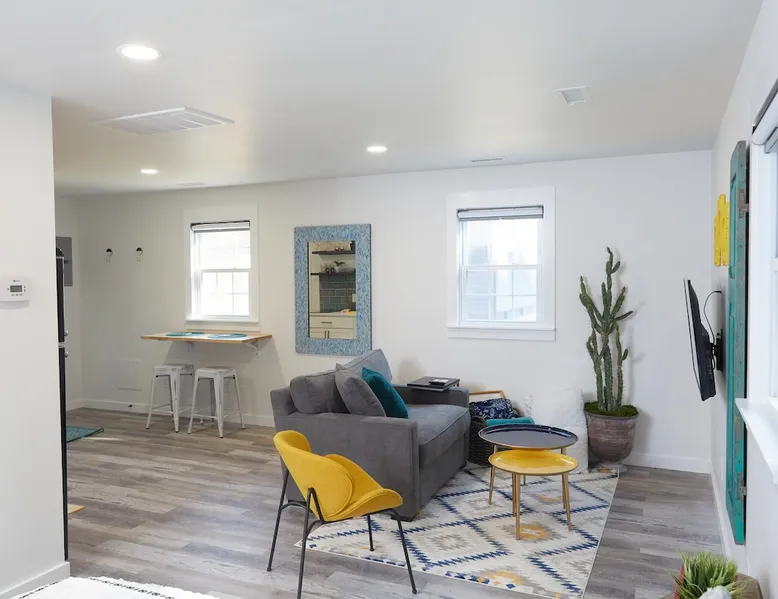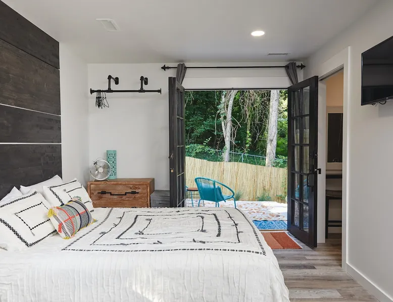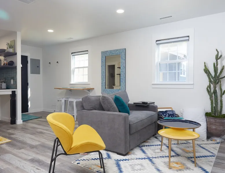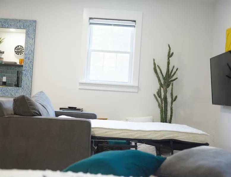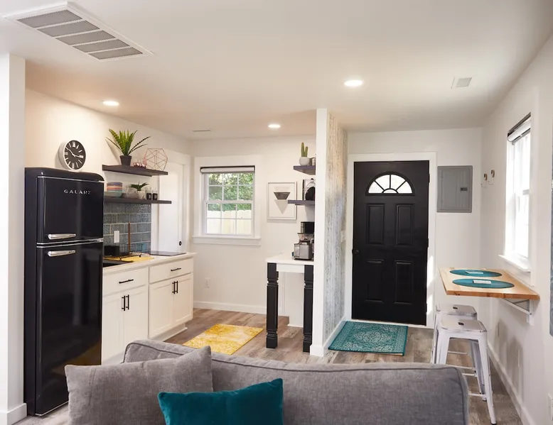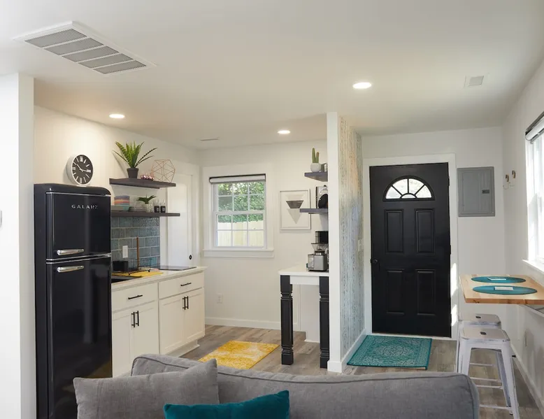 If you are looking to party, this is not your place. Our lovely and cozy detached suite is in a quiet residential neighborhood close to the charming restaurants and shops of Friendly Shopping Center. A short 13 min drive to downtown Greensboro and a short 12 minute drive to the Greensboro Airport. Perfect for tourists or business travelers who want to be able to see all Greensboro has to offer. The space Full bath shower/tub combo Powerful Delta double shower head 50 Gallon Hot Water Heater Heating and Air Kitchen with microwave, refrigerator, freezer, 2 stove top counter top burners, portable conventional baking oven, foreman grill, coffee maker, toaster 2 smart TVs 1 queen bed 1 love seat chair with pull out bed 5ft long kid size Fiber internet Wi-Fi Shampoo, conditioner and body soap Hair Dryer Iron and Ironing board Garbage disposal Towels and sheets Quiet private patio in back Keypad entry Self check-in 2 entrances Space is big enough for 2 adults and 1 child One car and one parking space allowed in drive way at far left of the driveway Street parking available If you need the space longer the 7 days please get approval We offer Subtle Earth Organic Coffee - Medium-Dark Roast - Whole Bean - Organic Arabica for brewing your own coffee Organic creamer Organic cane sugar and organic stevia Kcups -Organic Guest access The guest house is on the same property as our house, but separated by a six foot fence and a concrete wall. Both entrances are private and directly off of the driveway. Other things to note Please no parties. Registered guests only. Absolutely NO SMOKING ANYTHING INSIDE OR OUTSIDE. Guests will be charged a minimum of $200 for violation.