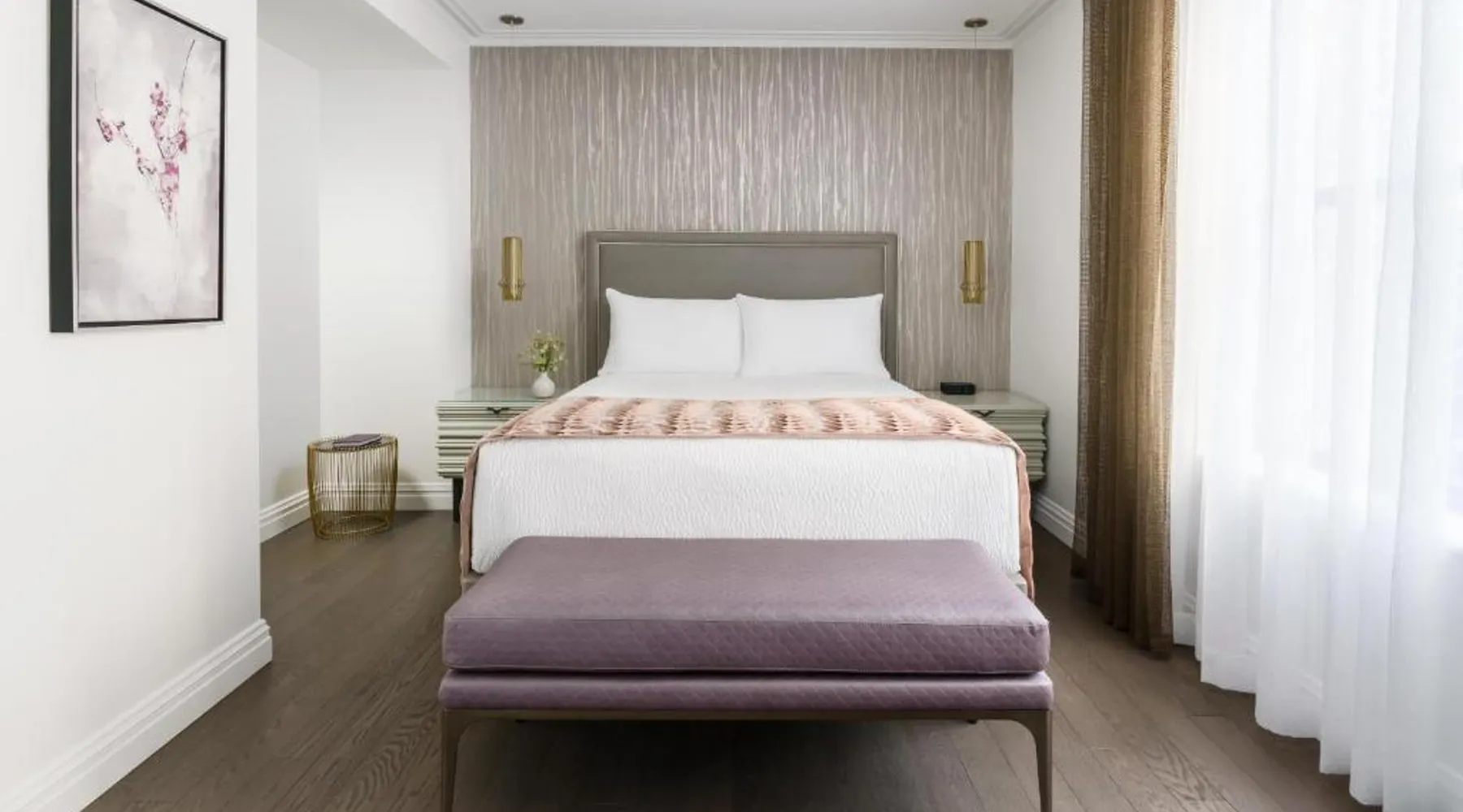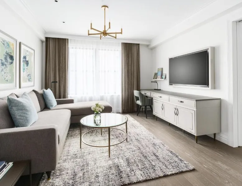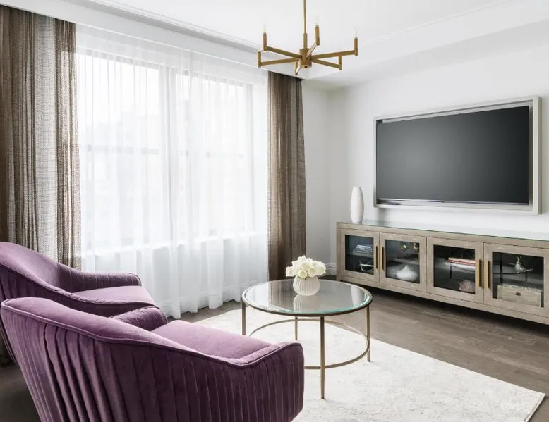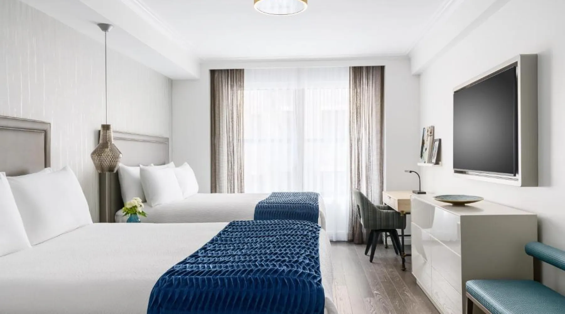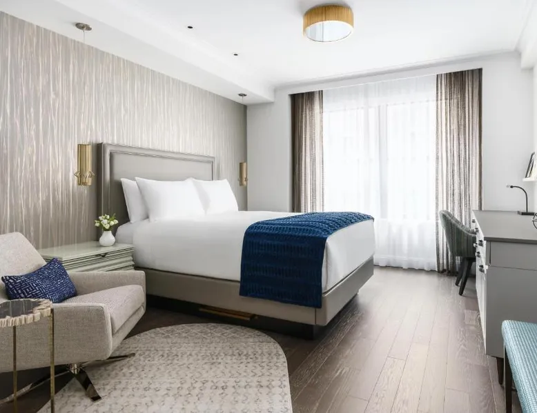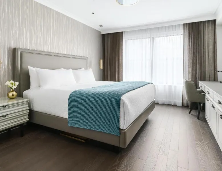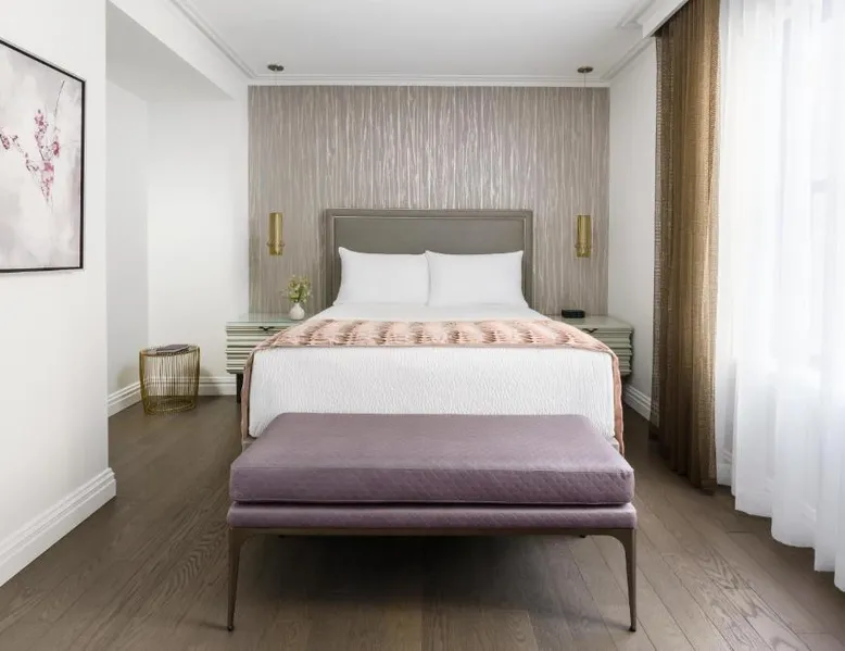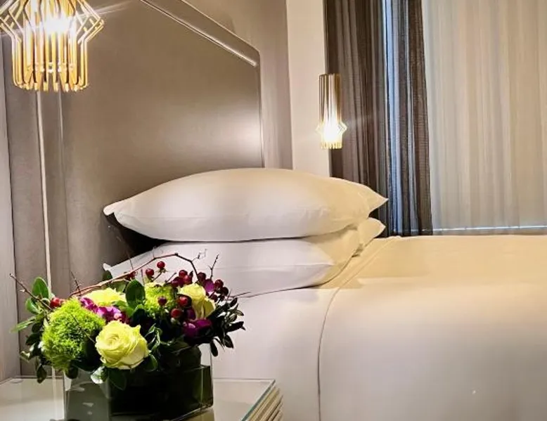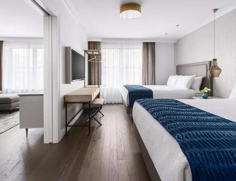 Elegant Accommodations: The Wallace Hotel in New York offers a 5-star experience with luxurious rooms featuring city views, free WiFi, and modern amenities. Exceptional Facilities: Guests can enjoy a fitness center, bar, and free WiFi, ensuring a comfortable and relaxing stay. Prime Location: Located less than 0.6 mi from Strawberry Fields and a 13-minute walk to Lincoln Center, the hotel is 1.2 mi from Central Park and the Metropolitan Museum of Art. LaGuardia Airport is 8.1 mi away. Guest Services: The hotel provides a 24-hour front desk, concierge service, housekeeping, family rooms, and full-day security. Additional amenities include a fitness room, elevator, and paid private parking. This quadruple room features a flat-screen TV.