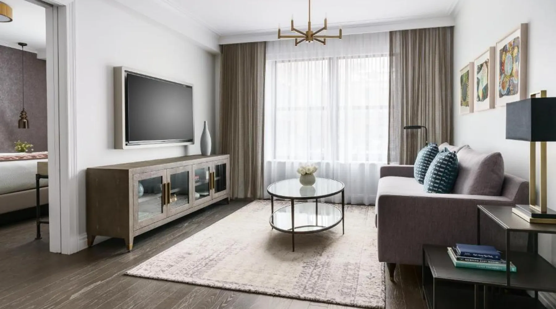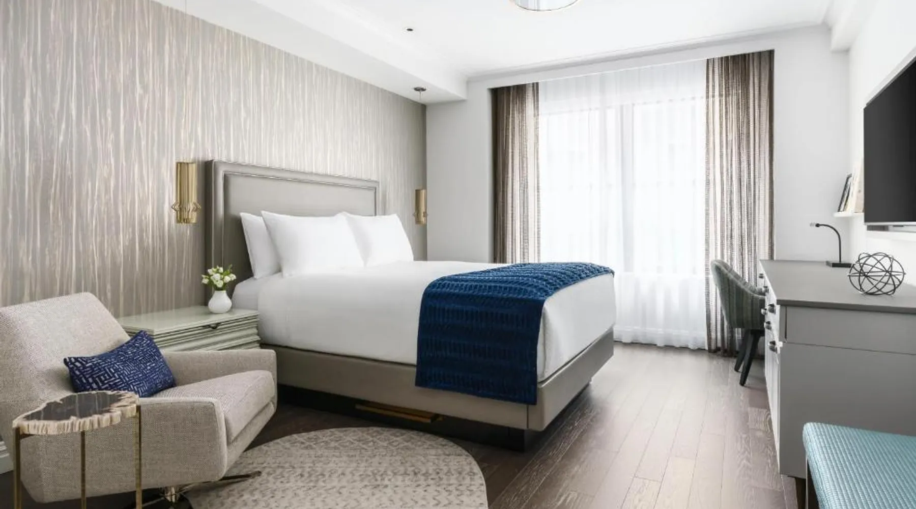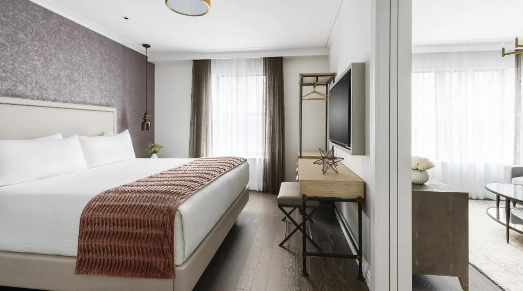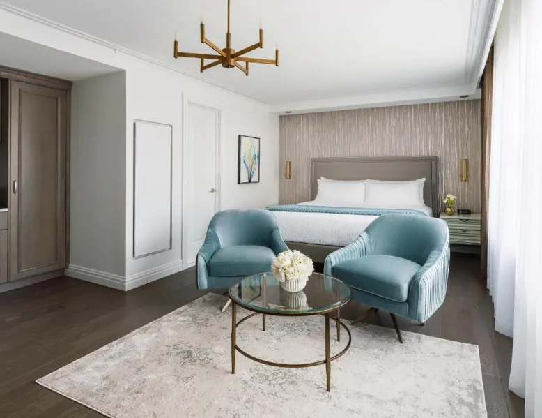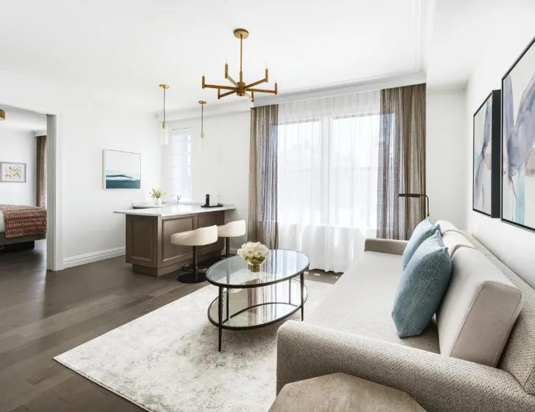Elegant Accommodations: The Wallace Hotel in New York offers a 5-star experience with luxurious rooms featuring city views, free WiFi, and modern amenities. Exceptional Facilities: Guests can enjoy a fitness center, bar, and free WiFi, ensuring a comfortable and relaxing stay. Prime Location: Located less than 0.6 mi from Strawberry Fields and a 13-minute walk to Lincoln Center, the hotel is 1.2 mi from Central Park and the Metropolitan Museum of Art. LaGuardia Airport is 8.1 mi away. Guest Services: The hotel provides a 24-hour front desk, concierge service, housekeeping, family rooms, and full-day security. Additional amenities include a fitness room, elevator, and paid private parking. This quadruple room features a flat-screen TV.