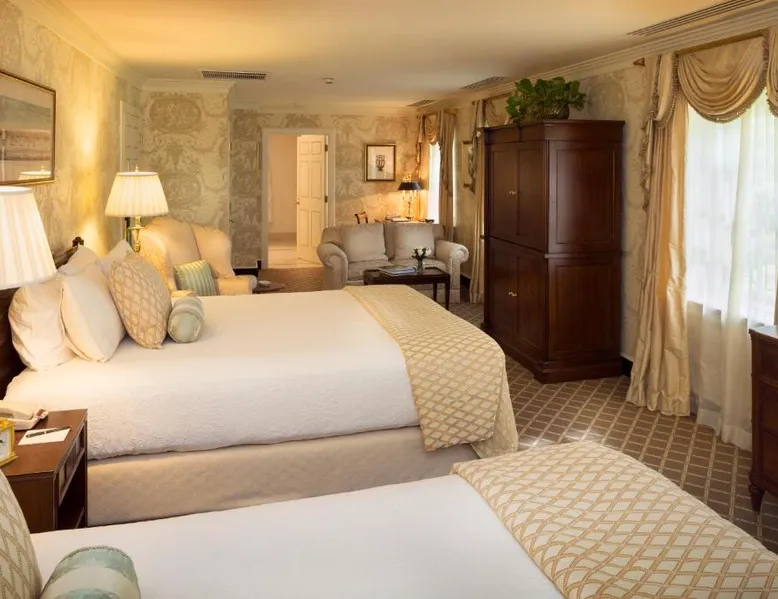 Elegant Accommodations: Williamsburg Inn, a 5-star hotel in Williamsburg, offers luxurious rooms with air-conditioning, private bathrooms, and modern amenities. Guests enjoy garden or inner courtyard views, ensuring a comfortable stay. Exceptional Facilities: The hotel features spa facilities, a fitness center, sun terrace, and outdoor and indoor swimming pools. Additional amenities include a tennis court, hot tub, and fitness room, catering to all leisure needs. Dining Experience: A traditional and modern restaurant serves American and local cuisines for brunch and dinner. The child-friendly buffet and outdoor seating area provide diverse dining options for all guests. Prime Location: Located 1.2 mi from Colonial Williamsburg and 16 mi from Newport News/Williamsburg International Airport, the hotel is close to attractions such as Busch Gardens & Water Country (5 mi) and Historic Jamestown (6.2 mi). Providing free toiletries and bathrobes, this double room includes a private bathroom with a walk-in shower, a bath and a hairdryer. The spacious air-conditioned double room provides a flat-screen TV with satellite channels, a coffee machine, a seating area, a wardrobe as well as garden views. The unit offers 2 beds.