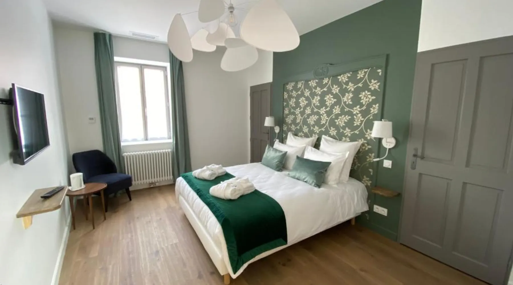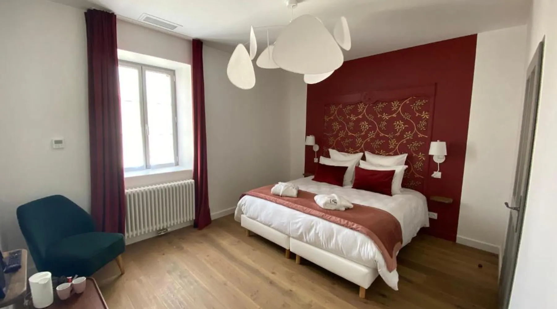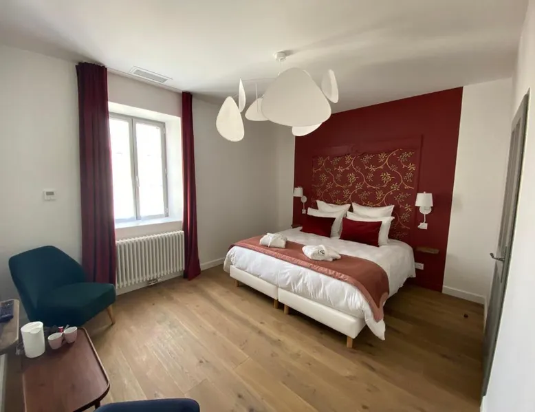 Comfortable Accommodations: Le Charles V in Meursault offers family rooms with private bathrooms, air-conditioning, and garden or pool views. Each room includes a tea and coffee maker, walk-in shower, and free WiFi. Exceptional Facilities: Guests enjoy a saltwater swimming pool, sun terrace, and lush garden. The property features a restaurant serving French cuisine, a bar, and free on-site private parking. Additional amenities include a lounge, electric vehicle charging station, and bicycle parking. Delicious Breakfast: A continental, à la carte, or full English/Irish breakfast is provided, including fresh pastries, cheese, fruits, and juice. The family-friendly restaurant offers dinner with a variety of cuisines. Prime Location: Located 45 mi from Dole-Jura Airport, the bed and breakfast is near attractions such as Hospices Civils de Beaune (5.6 mi) and Beaune Train Station (5.6 mi). Guests appreciate the friendly host, excellent swimming pool, and delicious breakfast. Featuring free toiletries and bathrobes, this double room includes a private bathroom with a walk-in shower, a hairdryer and slippers. The air-conditioned double room features a flat-screen TV with cable channels, a tea and coffee maker, executive lounge access, a seating area as well as garden views. The unit has 1 bed.