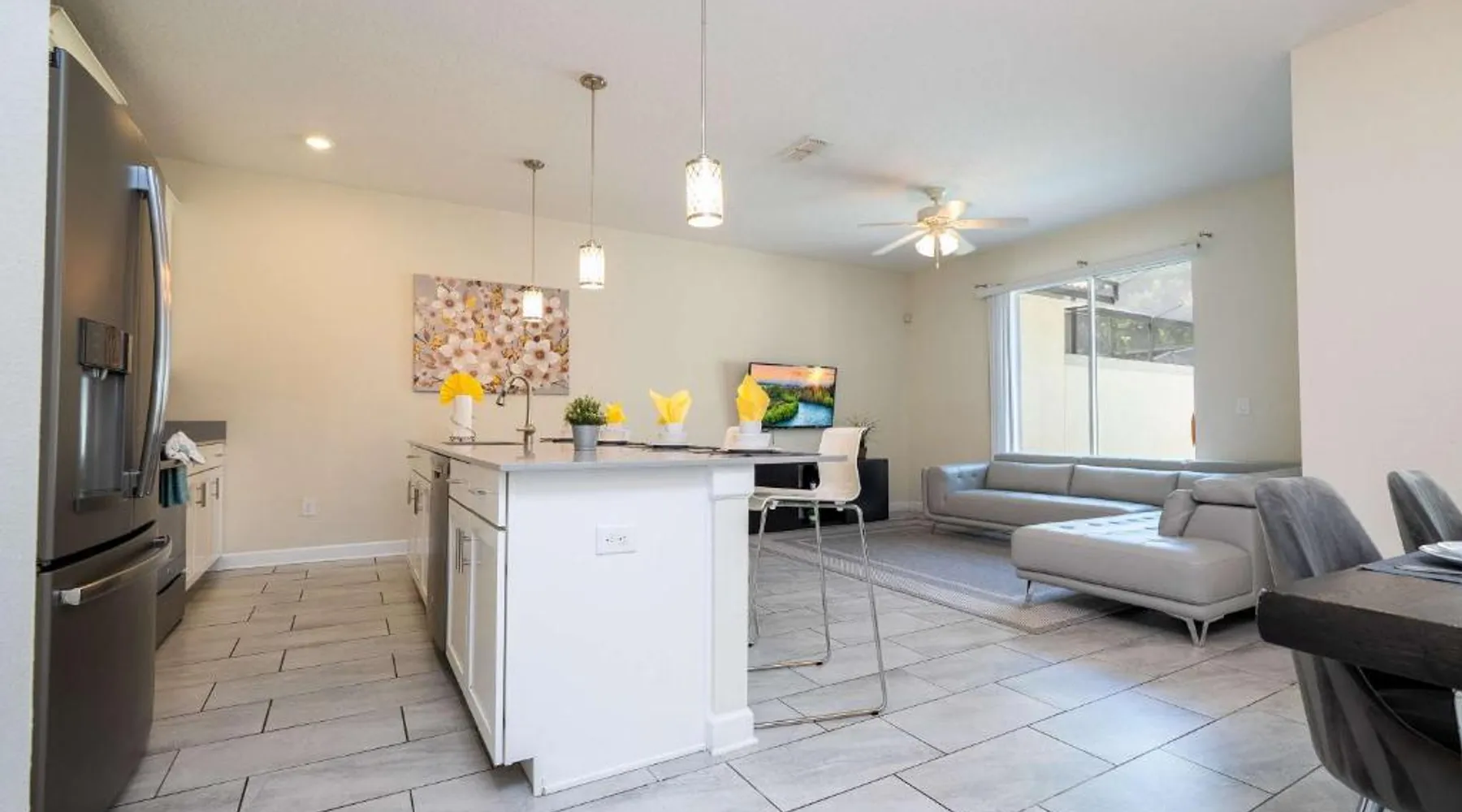 Spacious Accommodations: Family Friendly Four Bedrooms w/ Pool 4896 in Kissimmee offers a spacious holiday home with four bedrooms and three bathrooms. Guests enjoy a private pool, fitness center, and a beautifully maintained garden. Modern Amenities: The property features free WiFi, air-conditioning, and a fully equipped kitchen. Additional amenities include a washing machine, patio, and a work desk, ensuring a comfortable and convenient stay. Leisure Facilities: Guests can relax by the outdoor swimming pool or enjoy the waterpark and games room. Free on-site parking is available, and the surrounding area offers surfing and cycling activities. Convenient Location: Located 14 mi from Orlando International Airport, the property is close to attractions such as Gatorland (5.6 mi) and Disney Springs (6.2 mi). Highly rated for its convenient location, guests appreciate the proximity to local points of interest. This apartment features a private pool. Boasting a private entrance, this spacious apartment also features 4 separate bedrooms and 3 bathrooms with a bath and a hairdryer. The fully equipped kitchen has a stovetop, a refrigerator, a dishwasher and kitchenware. The air-conditioned apartment features a TV with cable channels, a washing machine, a tea and coffee maker, a wardrobe as well as lake views. The unit has 6 beds.