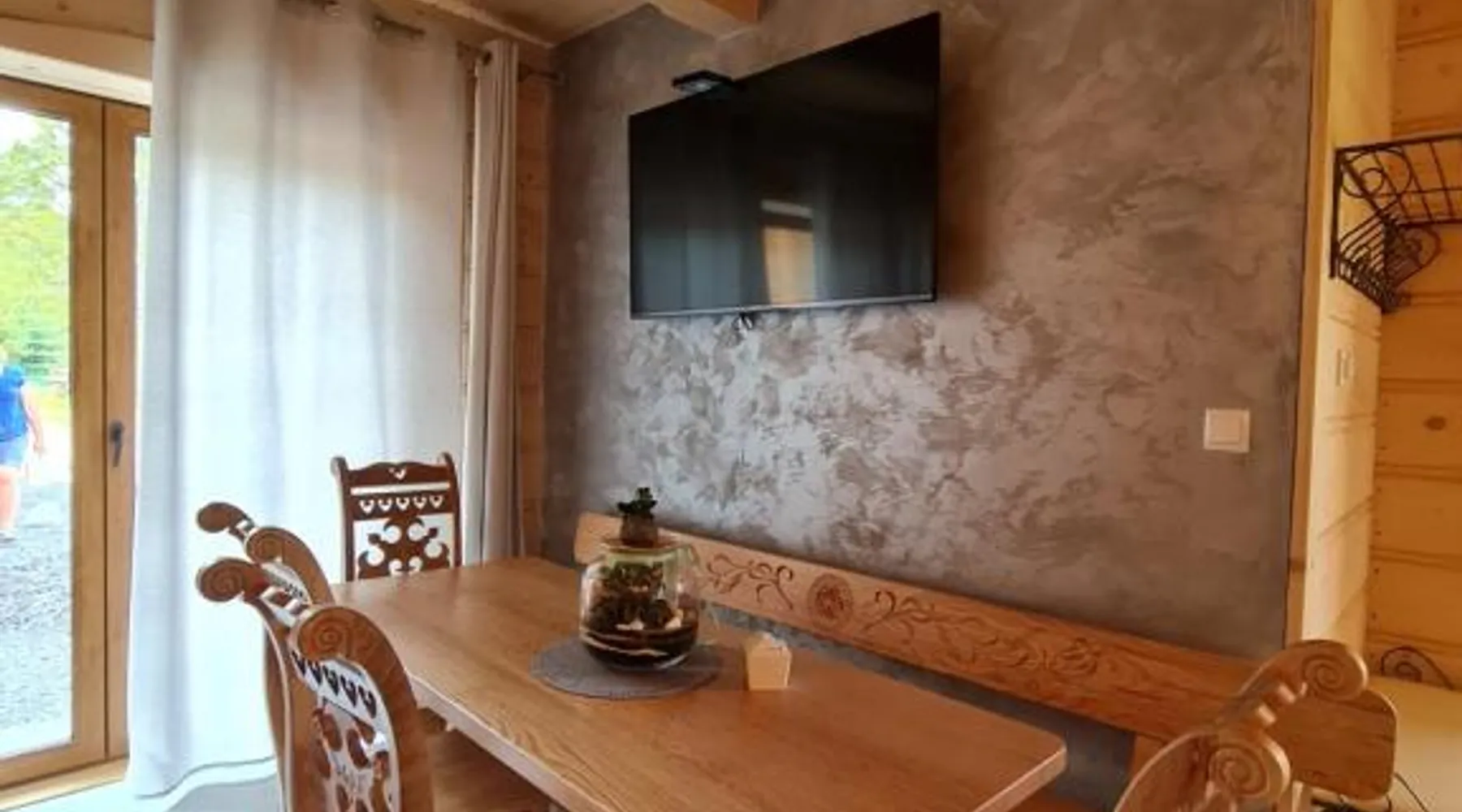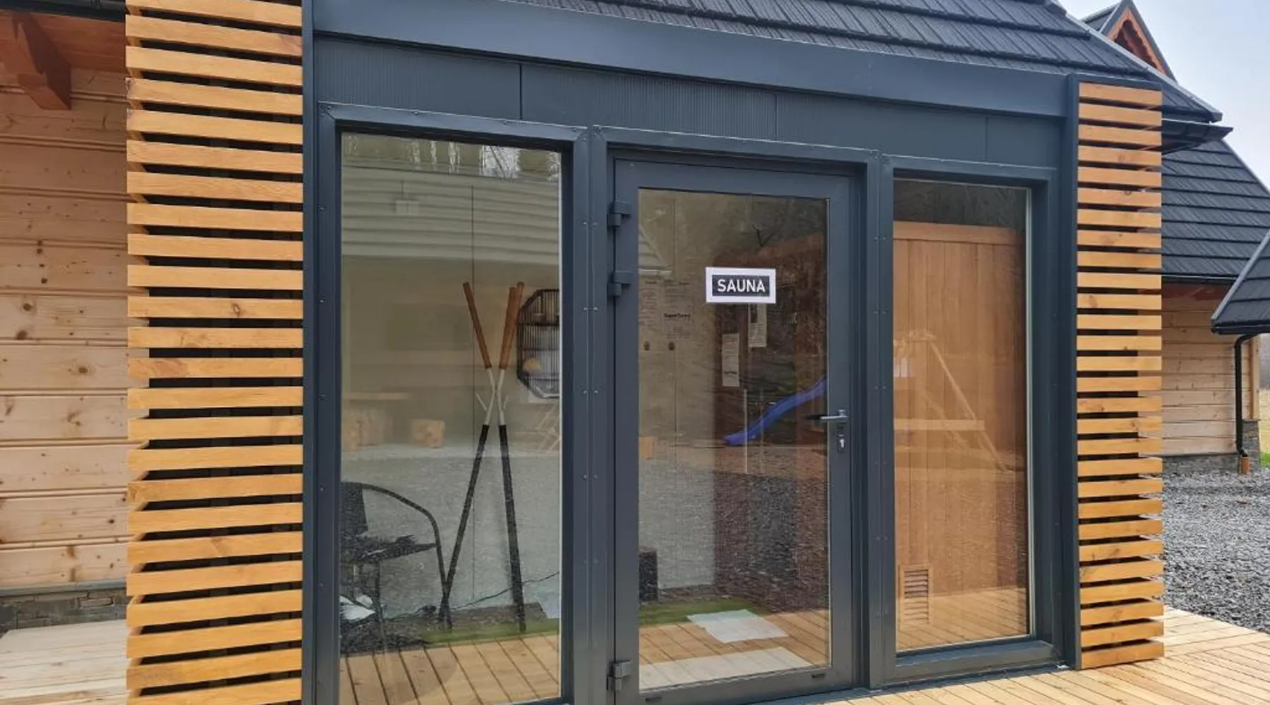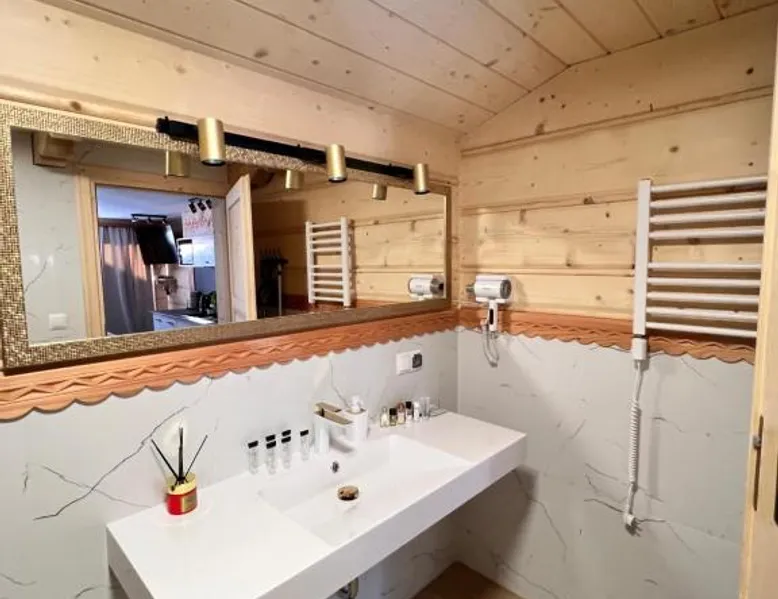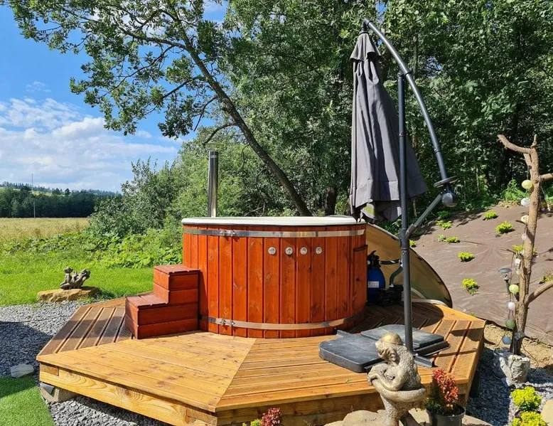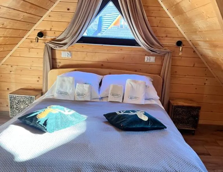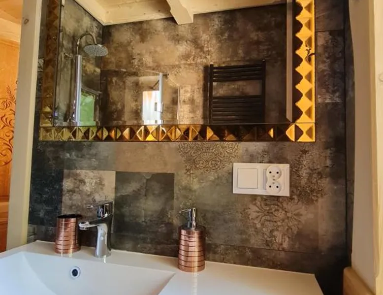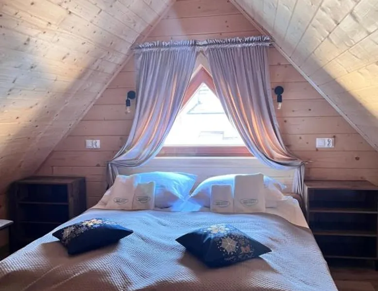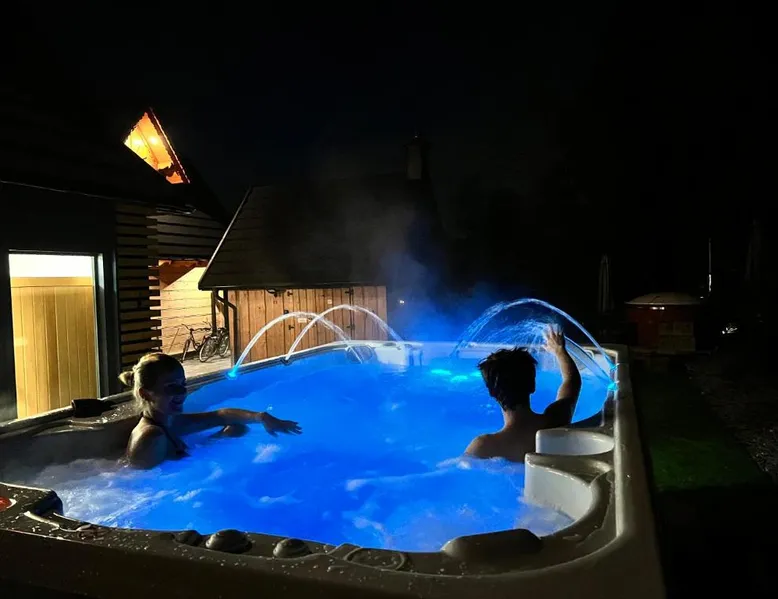 Comfortable Accommodations: Żabie Dworki Witów Luxury Chalets & SPA in Witów offers a chalet with a sauna, sun terrace, garden, and a year-round outdoor swimming pool. Free WiFi is available throughout the property. Modern Amenities: Guests can enjoy a hot tub, sauna, and spa bath. The chalet features a kitchenette, private bathroom, and a children's playground. Additional amenities include air-conditioning, terrace, and garden views. Convenient Location: Located 8.7 mi from Gubalowka Mountain and 9.9 mi from Zakopane Aqua Park, the property is close to Tatra National Park and Kasprowy Wierch Mountain. Free on-site private parking is provided. Guest Satisfaction: Highly rated by guests, the chalet is praised for its hot tub, sauna, and well-equipped kitchen. Express check-in and check-out services ensure a smooth stay. This chalet features a hot tub, spa bath and sauna. Boasting a private entrance, this air-conditioned chalet comes with 1 living room, 3 separate bedrooms and 2 bathrooms with a shower and a bidet. Guests will find a stovetop, a refrigerator, a dishwasher and kitchenware in the well-fitted kitchen. The chalet also includes a barbecue. The spacious chalet features a flat-screen TV with streaming services, a tea and coffee maker, a seating area, a dining area as well as garden views. The unit has 5 beds.