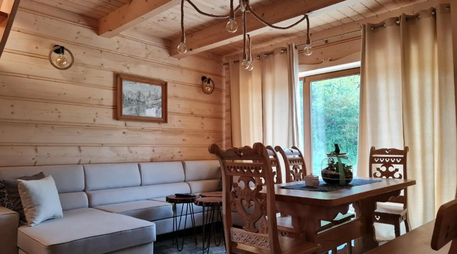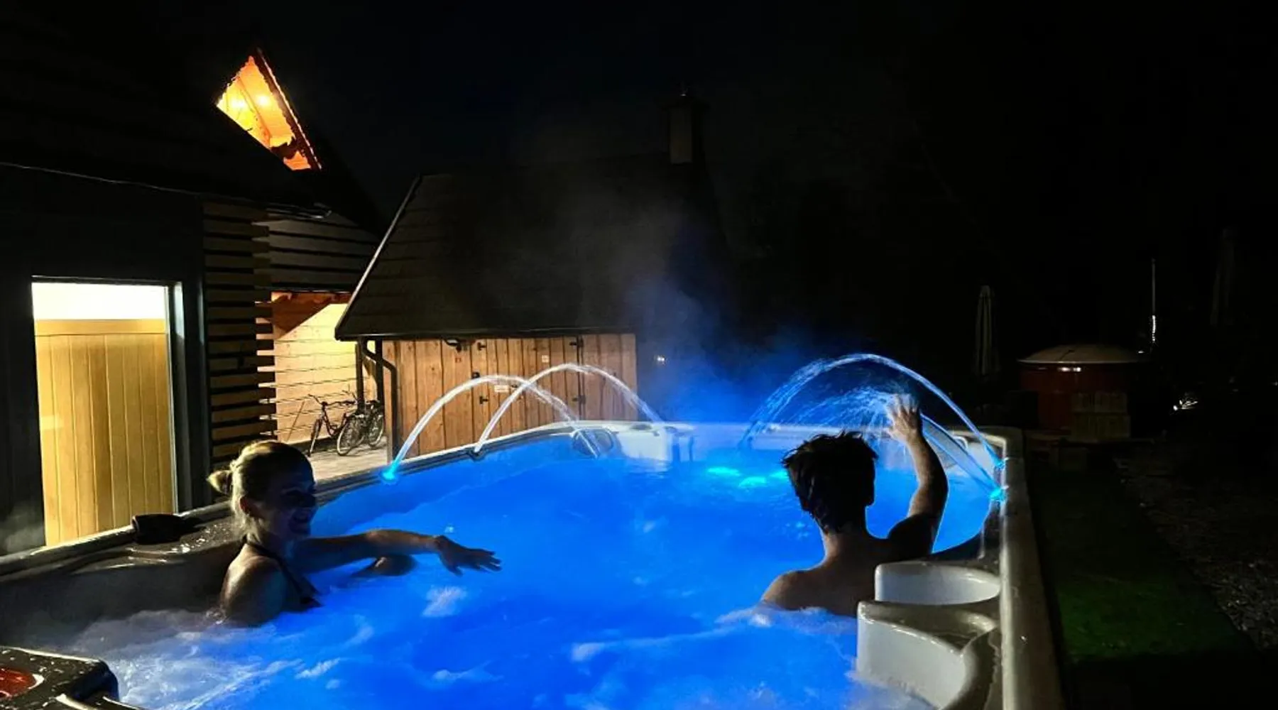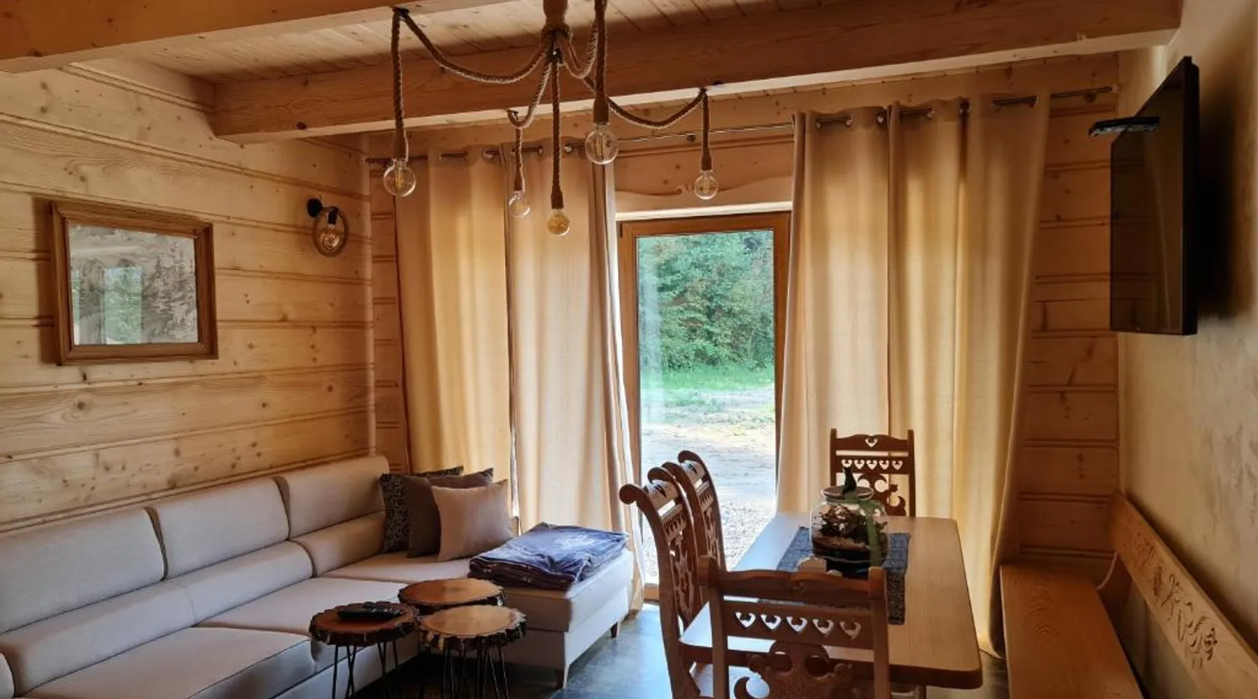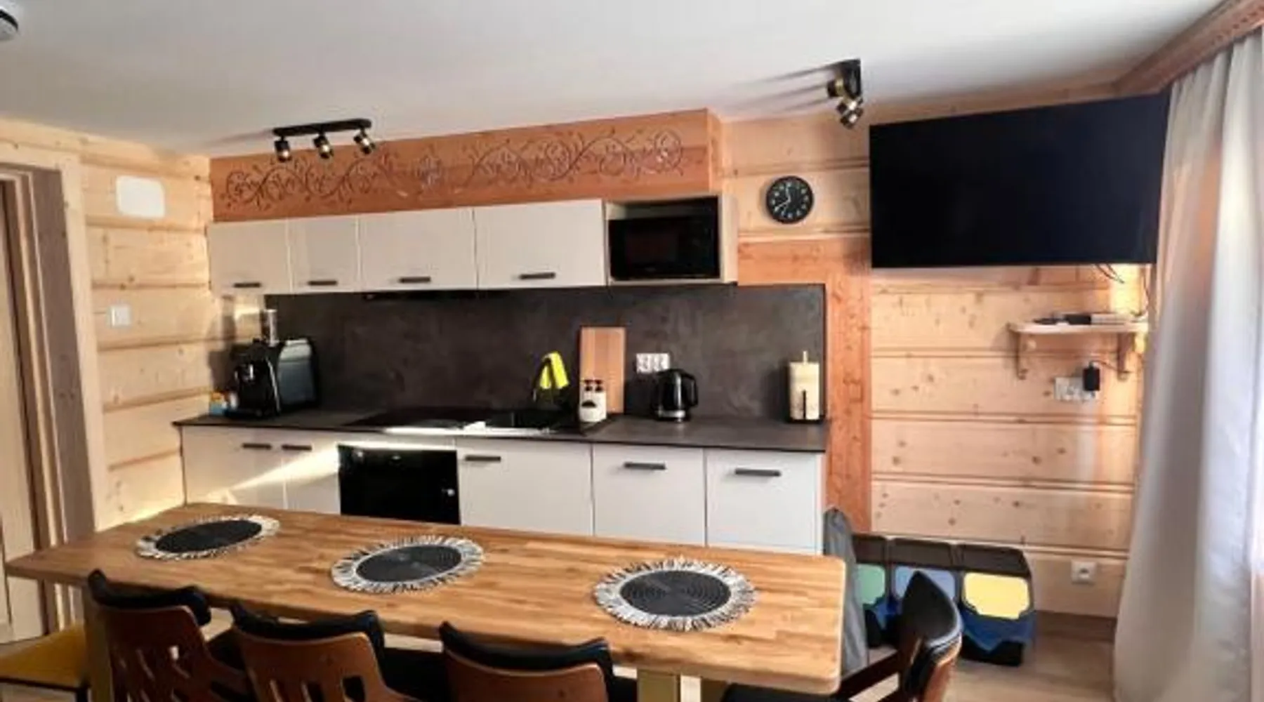 Comfortable Accommodations: Żabie Dworki Witów Luxury Chalets & SPA in Witów offers a chalet with a sauna, sun terrace, garden, and a year-round outdoor swimming pool. Free WiFi is available throughout the property. Modern Amenities: Guests can enjoy a hot tub, sauna, and spa bath. The chalet features a kitchenette, private bathroom, and a children's playground. Additional amenities include air-conditioning, terrace, and garden views. Convenient Location: Located 8.7 mi from Gubalowka Mountain and 9.9 mi from Zakopane Aqua Park, the property is close to Tatra National Park and Kasprowy Wierch Mountain. Free on-site private parking is provided. Guest Satisfaction: Highly rated by guests, the chalet is praised for its hot tub, sauna, and well-equipped kitchen. Express check-in and check-out services ensure a smooth stay. This chalet features a hot tub, spa bath and sauna. Boasting a private entrance, this air-conditioned chalet comes with 1 living room, 3 separate bedrooms and 2 bathrooms with a shower and a bidet. Guests will find a stovetop, a refrigerator, a dishwasher and kitchenware in the well-fitted kitchen. The chalet also includes a barbecue. The spacious chalet features a flat-screen TV with streaming services, a tea and coffee maker, a seating area, a dining area as well as garden views. The unit has 5 beds.