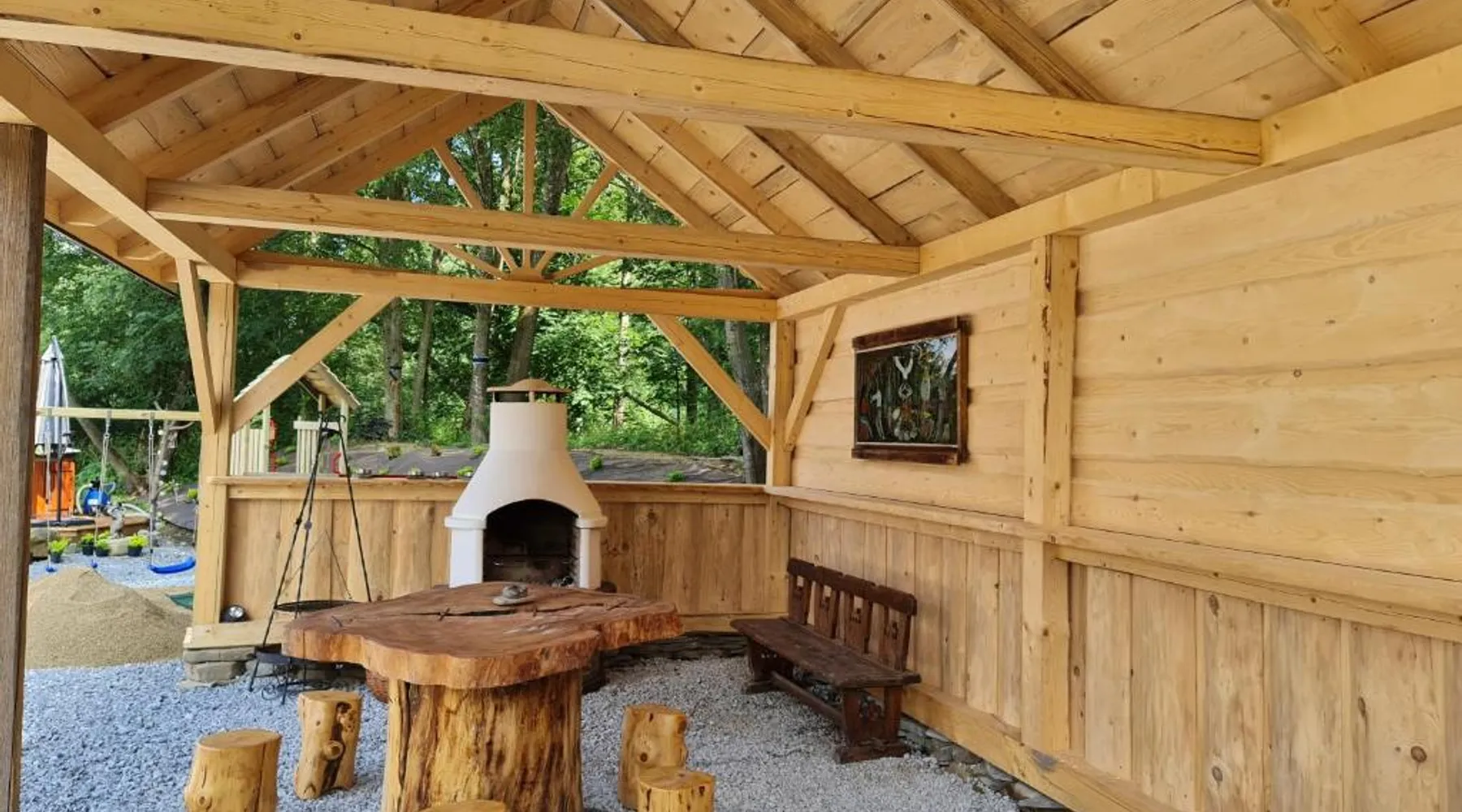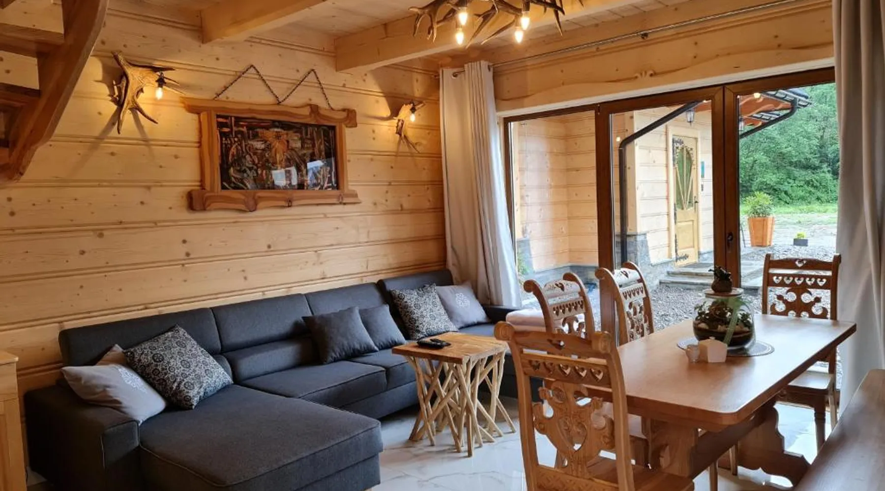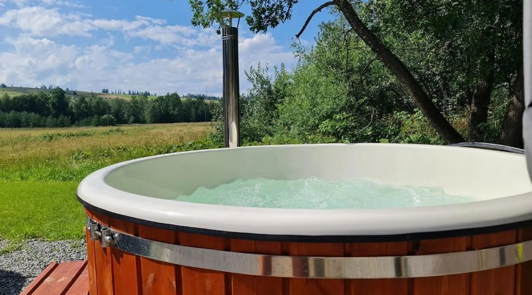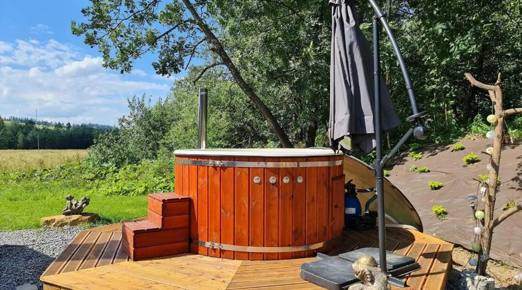 Comfortable Accommodations: Żabie Dworki Witów Luxury Chalets & SPA in Witów offers a chalet with a sauna, sun terrace, garden, and a year-round outdoor swimming pool. Free WiFi is available throughout the property. Modern Amenities: Guests can enjoy a hot tub, sauna, and spa bath. The chalet features a kitchenette, private bathroom, and a children's playground. Additional amenities include air-conditioning, terrace, and garden views. Convenient Location: Located 8.7 mi from Gubalowka Mountain and 9.9 mi from Zakopane Aqua Park, the property is close to Tatra National Park and Kasprowy Wierch Mountain. Free on-site private parking is provided. Guest Satisfaction: Highly rated by guests, the chalet is praised for its hot tub, sauna, and well-equipped kitchen. Express check-in and check-out services ensure a smooth stay. This chalet features a hot tub, spa bath and sauna. Boasting a private entrance, this air-conditioned chalet comes with 1 living room, 3 separate bedrooms and 2 bathrooms with a shower and a bidet. Guests will find a stovetop, a refrigerator, a dishwasher and kitchenware in the well-fitted kitchen. The chalet also includes a barbecue. The spacious chalet features a flat-screen TV with streaming services, a tea and coffee maker, a seating area, a dining area as well as garden views. The unit has 5 beds.