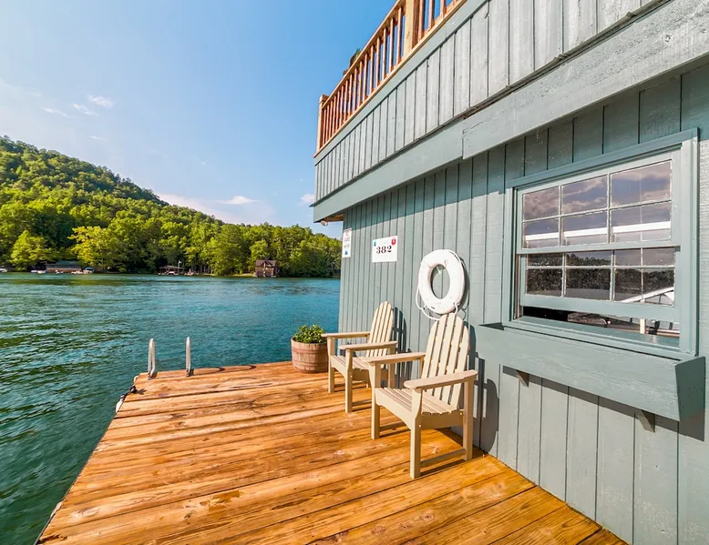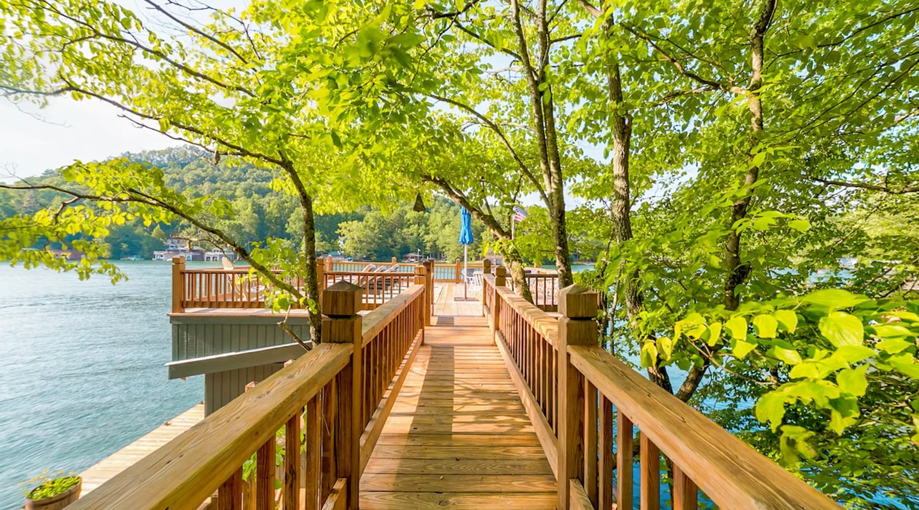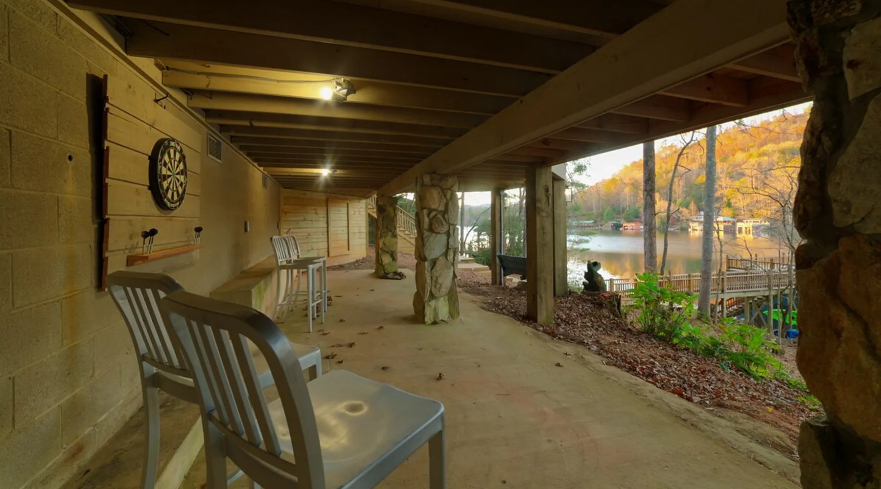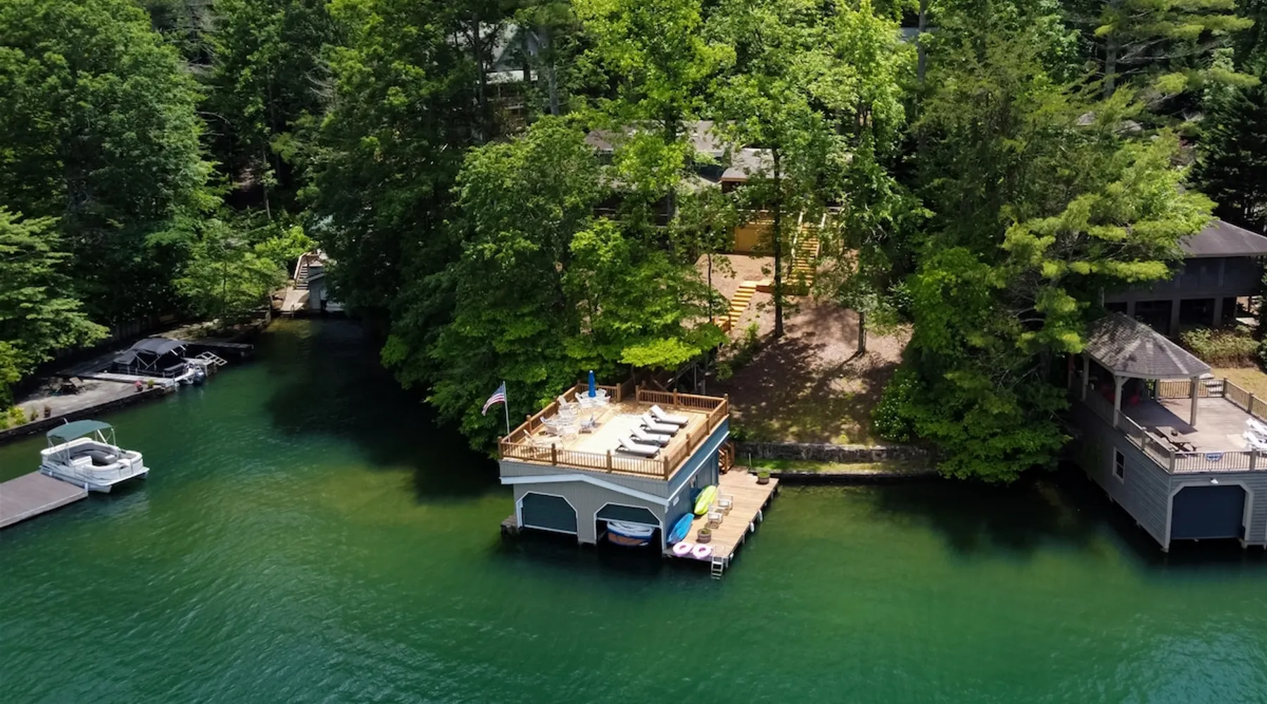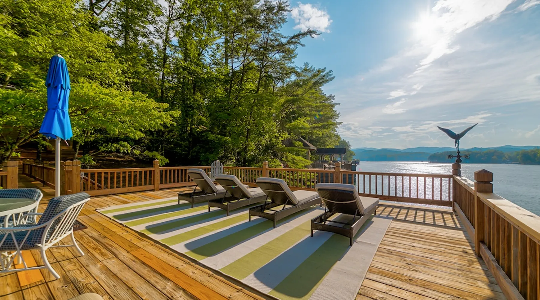 Visit this truly classic lake house located on Lake Burton. Private Multi Level Boathouse. This property is nestled in Murray Cove with calm waters . Large vaulted wood ceilings and bright windows fill the home with ambient light, and the open layout provides a perfect gathering space for families. Large decks including a screened-in portion and covered outdoor patio with comfortable seating make it easy to enjoy the surrounding beautiful scenery. The space Visit this truly classic lake house located on Lake Burton. Modern renovations give this 70s-built home a nostalgic summertime vibe. This property is nestled in Murray Cove with calm waters and peaceful sounds of the lake. Large, vaulted wood ceilings and bright windows fill the home with ambient light, and the open layout provides a perfect gathering space for families. Large decks including a screened-in portion and covered outdoor patio with comfortable seating make it easy to enjoy the surrounding scenery. This home features a spacious open layout with high vaulted ceilings, a stone wood-burning fireplace, and large beams and windows. The four large bedrooms provide 3 king beds and a bunk room that can easily accommodate groups and families. New renovations including vintage light fixtures, stylish furniture, and bright paint give this classic lake house a modern rustic feel. The boathouse deck features plenty of seating including sun-lounger chairs and a patio table with an umbrella. Ideal for sunbathing, bbq, swimming, fishing, and enjoying the idyllic scenes of Lake Burton. There are 3 kayaks provided for guest use. The boat is not available, but rentals are available at LaPrade's Marina less than 10 minutes away. Other things to note 25+ age requirement for lead guest. No exceptions. This property is not pet-friendly. No exceptions. Digital rental agreement will be required to sign and complete after property is booked. Firewood not supplied. Georgia fishing license required for fishing on the property. Boat not available to guests, rentals are available at LaPrade's Marina less than 10 minutes away from property. 23' of dock space to tie up rental boat during the day. Lake Burton drawdown schedule 2025/2026: • October 2025 - As of this year The lake is scheduled to remain at its normal summer pool elevation of 1865 feet (1865.0 elevation)