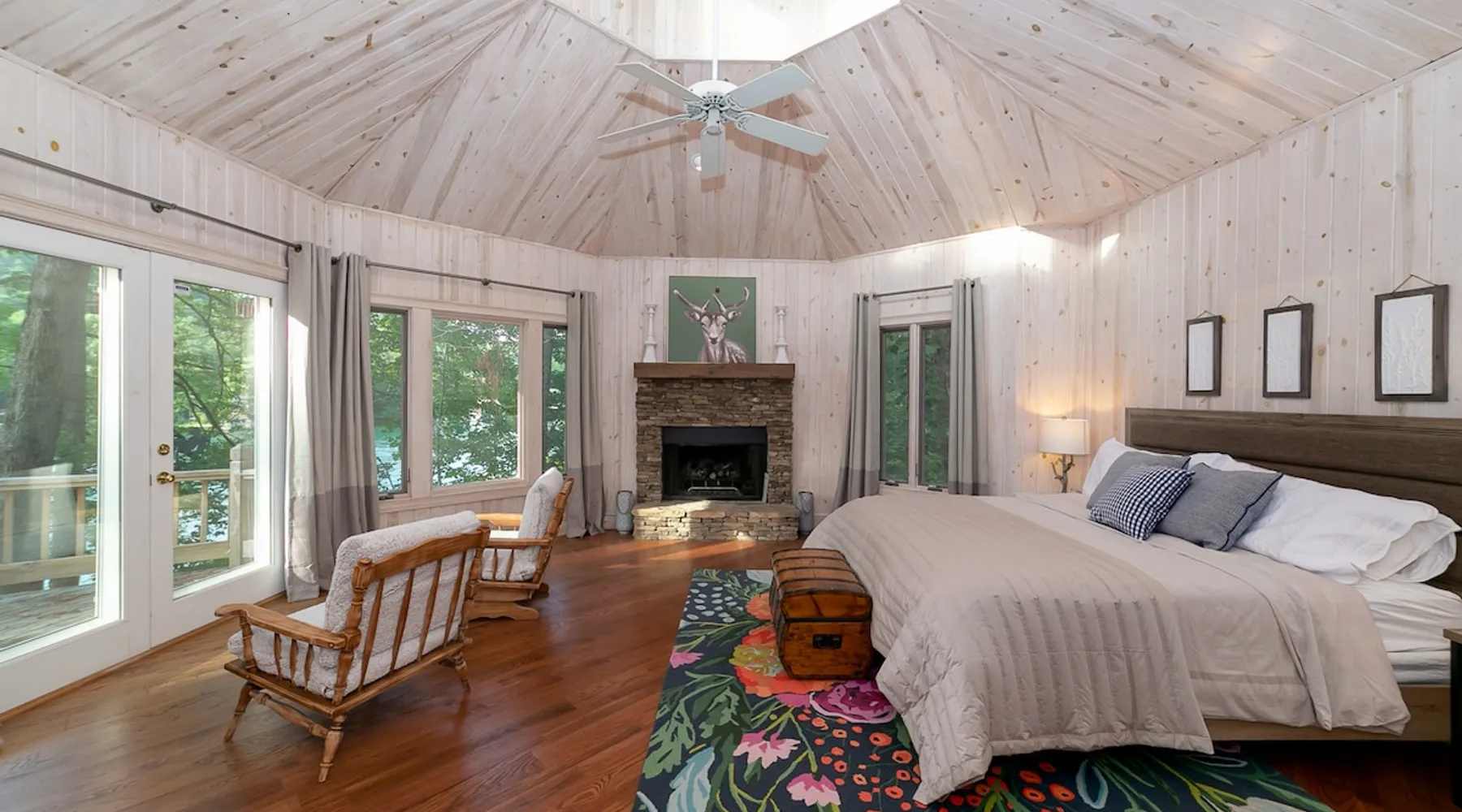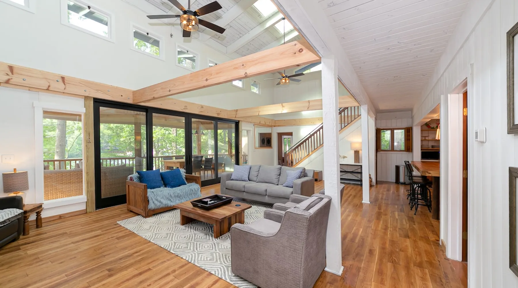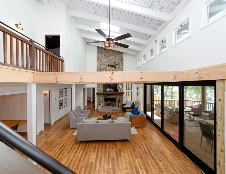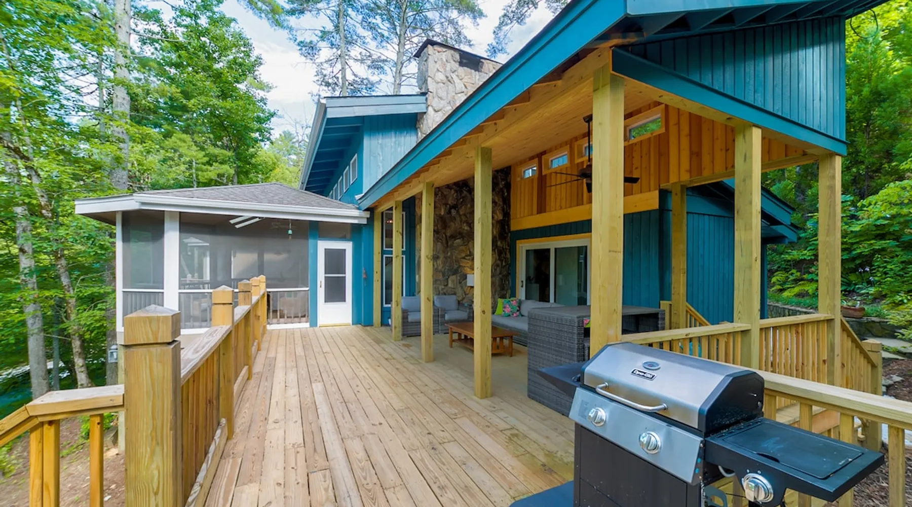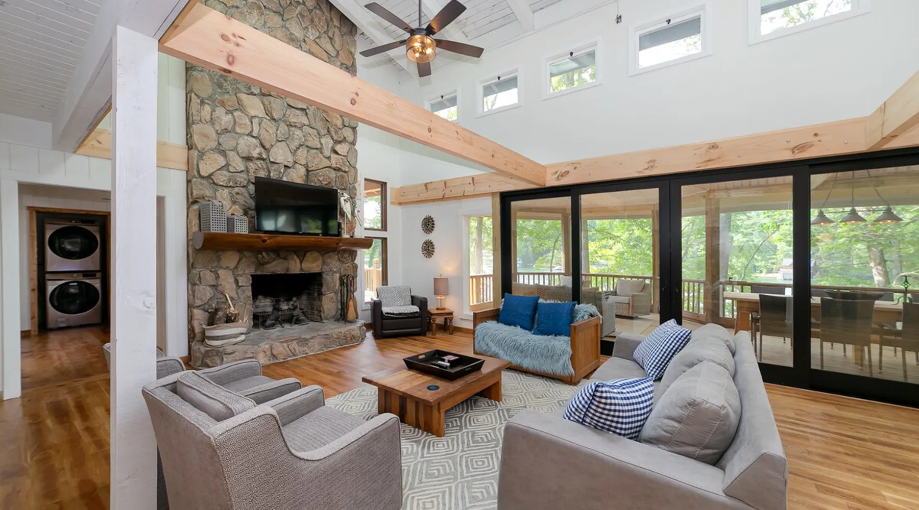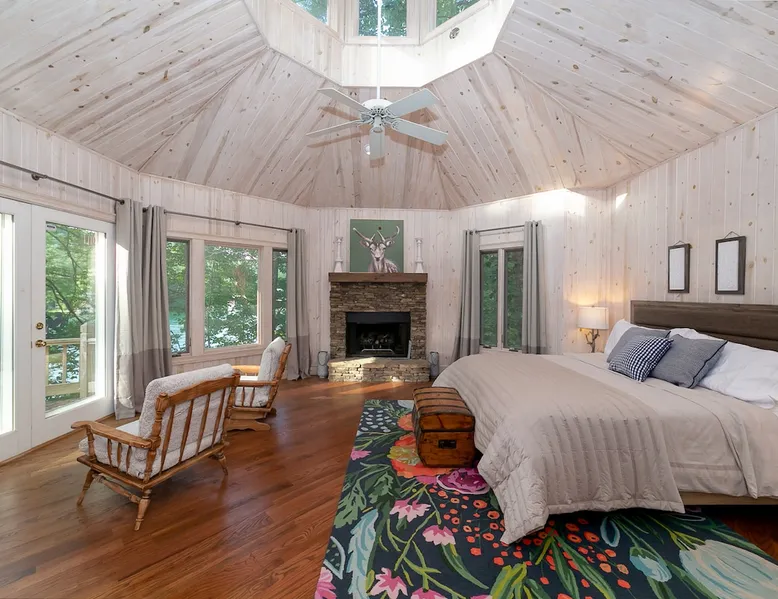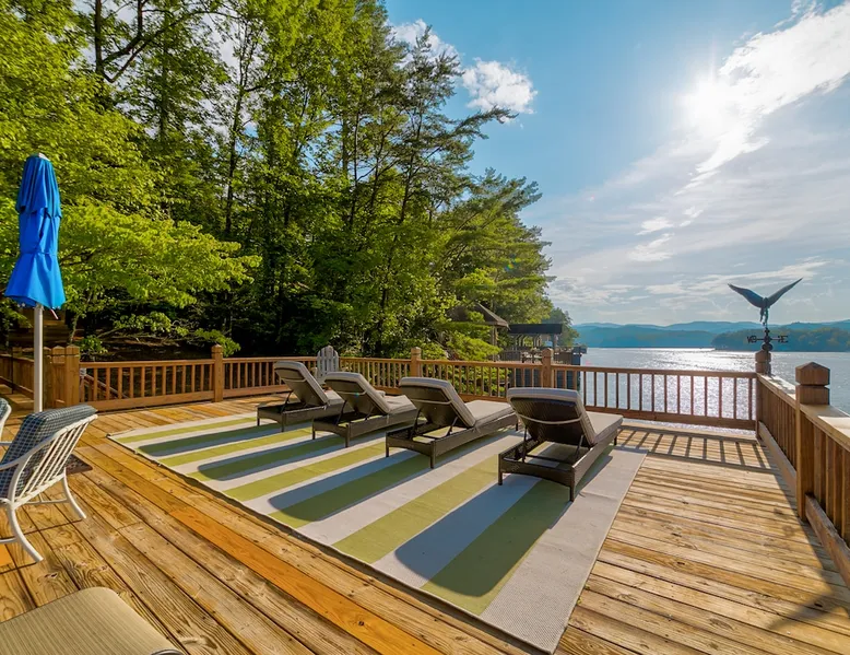 Visit this truly classic lake house located on Lake Burton. Private Multi Level Boathouse. This property is nestled in Murray Cove with calm waters . Large vaulted wood ceilings and bright windows fill the home with ambient light, and the open layout provides a perfect gathering space for families. Large decks including a screened-in portion and covered outdoor patio with comfortable seating make it easy to enjoy the surrounding beautiful scenery. The space Visit this truly classic lake house located on Lake Burton. Modern renovations give this 70s-built home a nostalgic summertime vibe. This property is nestled in Murray Cove with calm waters and peaceful sounds of the lake. Large, vaulted wood ceilings and bright windows fill the home with ambient light, and the open layout provides a perfect gathering space for families. Large decks including a screened-in portion and covered outdoor patio with comfortable seating make it easy to enjoy the surrounding scenery. This home features a spacious open layout with high vaulted ceilings, a stone wood-burning fireplace, and large beams and windows. The four large bedrooms provide 3 king beds and a bunk room that can easily accommodate groups and families. New renovations including vintage light fixtures, stylish furniture, and bright paint give this classic lake house a modern rustic feel. The boathouse deck features plenty of seating including sun-lounger chairs and a patio table with an umbrella. Ideal for sunbathing, bbq, swimming, fishing, and enjoying the idyllic scenes of Lake Burton. There are 3 kayaks provided for guest use. The boat is not available, but rentals are available at LaPrade's Marina less than 10 minutes away. Other things to note 25+ age requirement for lead guest. No exceptions. This property is not pet-friendly. No exceptions. Digital rental agreement will be required to sign and complete after property is booked. Firewood not supplied. Georgia fishing license required for fishing on the property. Boat not available to guests, rentals are available at LaPrade's Marina less than 10 minutes away from property. 23' of dock space to tie up rental boat during the day. Lake Burton drawdown schedule 2025/2026: • October 2025 - As of this year The lake is scheduled to remain at its normal summer pool elevation of 1865 feet (1865.0 elevation)