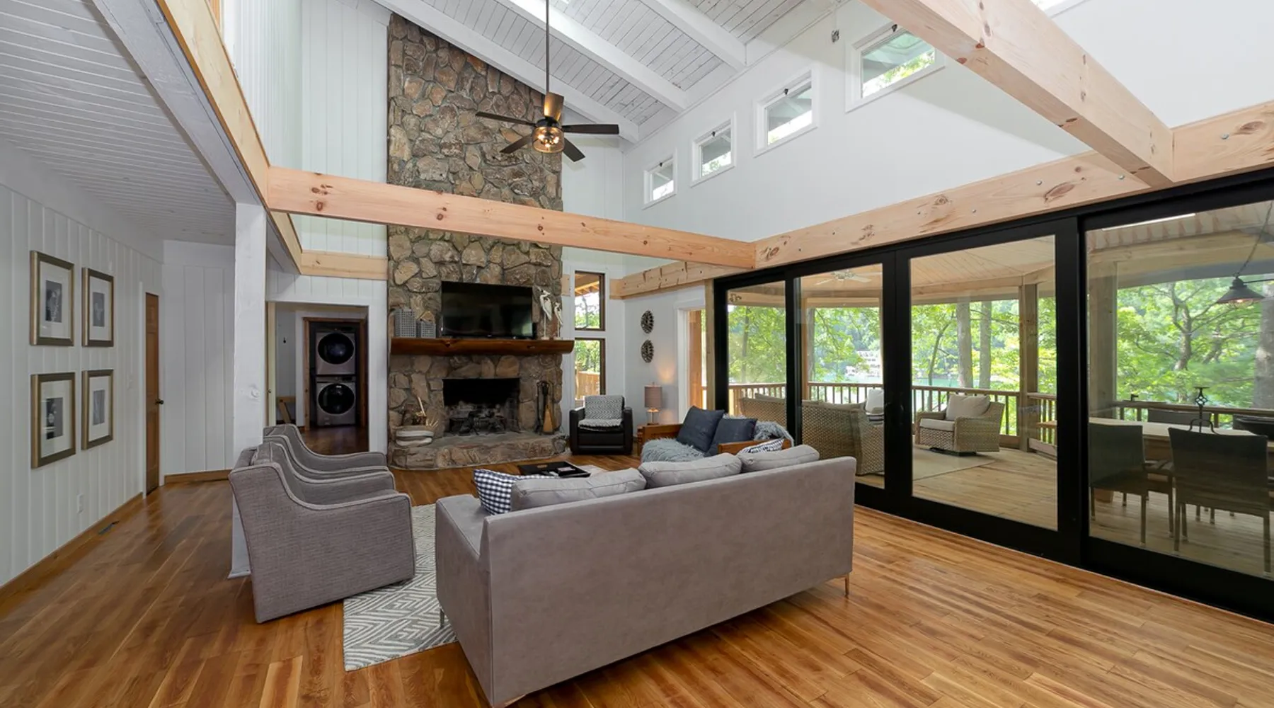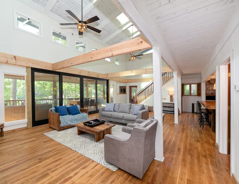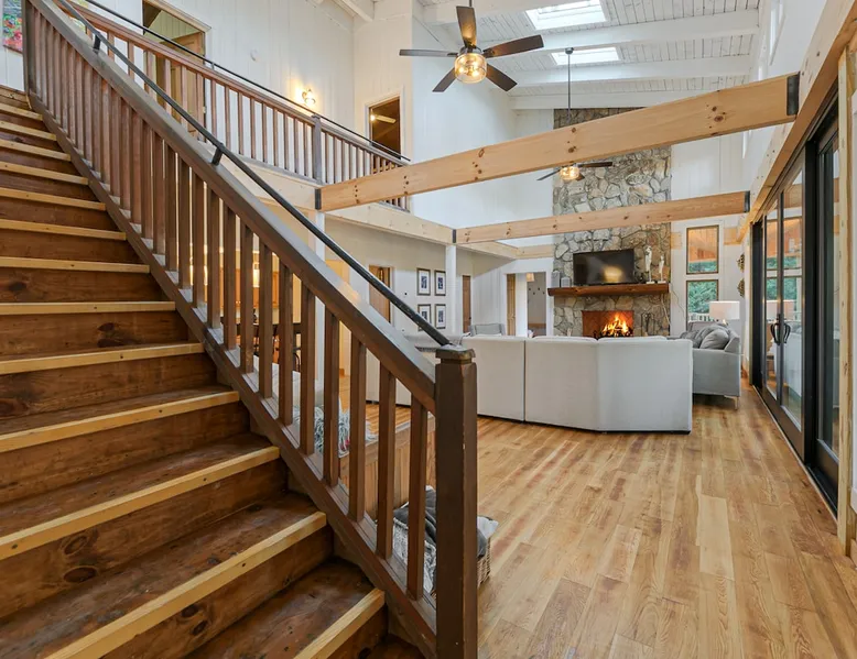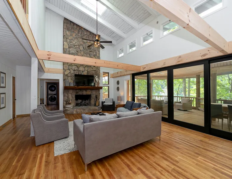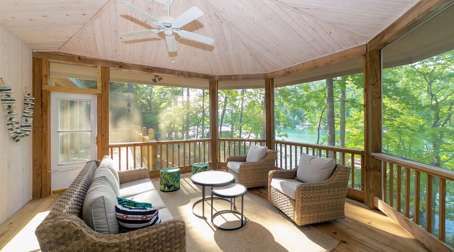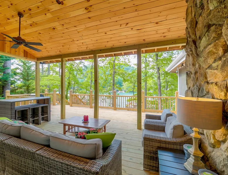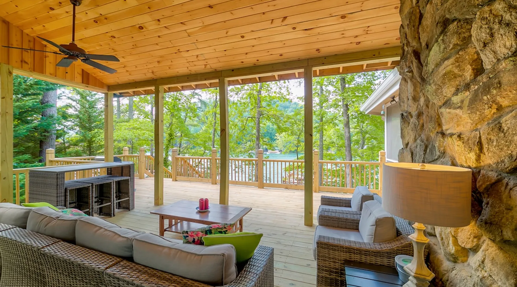 Visit this truly classic lake house located on Lake Burton. Private Multi Level Boathouse. This property is nestled in Murray Cove with calm waters . Large vaulted wood ceilings and bright windows fill the home with ambient light, and the open layout provides a perfect gathering space for families. Large decks including a screened-in portion and covered outdoor patio with comfortable seating make it easy to enjoy the surrounding beautiful scenery. The space Visit this truly classic lake house located on Lake Burton. Modern renovations give this 70s-built home a nostalgic summertime vibe. This property is nestled in Murray Cove with calm waters and peaceful sounds of the lake. Large, vaulted wood ceilings and bright windows fill the home with ambient light, and the open layout provides a perfect gathering space for families. Large decks including a screened-in portion and covered outdoor patio with comfortable seating make it easy to enjoy the surrounding scenery. This home features a spacious open layout with high vaulted ceilings, a stone wood-burning fireplace, and large beams and windows. The four large bedrooms provide 3 king beds and a bunk room that can easily accommodate groups and families. New renovations including vintage light fixtures, stylish furniture, and bright paint give this classic lake house a modern rustic feel. The boathouse deck features plenty of seating including sun-lounger chairs and a patio table with an umbrella. Ideal for sunbathing, bbq, swimming, fishing, and enjoying the idyllic scenes of Lake Burton. There are 3 kayaks provided for guest use. The boat is not available, but rentals are available at LaPrade's Marina less than 10 minutes away. Other things to note 25+ age requirement for lead guest. No exceptions. This property is not pet-friendly. No exceptions. Digital rental agreement will be required to sign and complete after property is booked. Firewood not supplied. Georgia fishing license required for fishing on the property. Boat not available to guests, rentals are available at LaPrade's Marina less than 10 minutes away from property. 23' of dock space to tie up rental boat during the day. Lake Burton drawdown schedule 2025/2026: • October 2025 - As of this year The lake is scheduled to remain at its normal summer pool elevation of 1865 feet (1865.0 elevation)