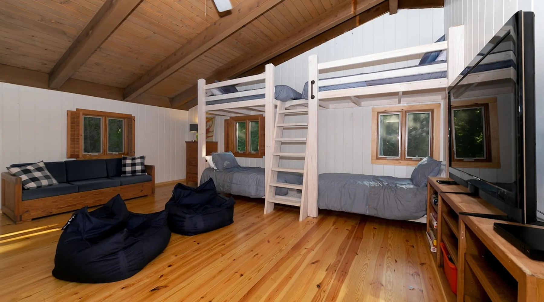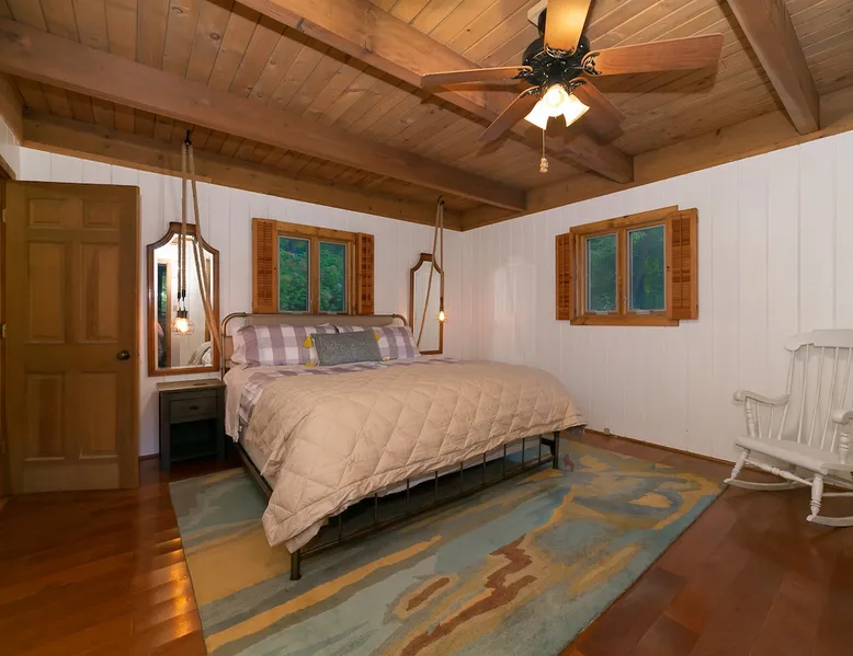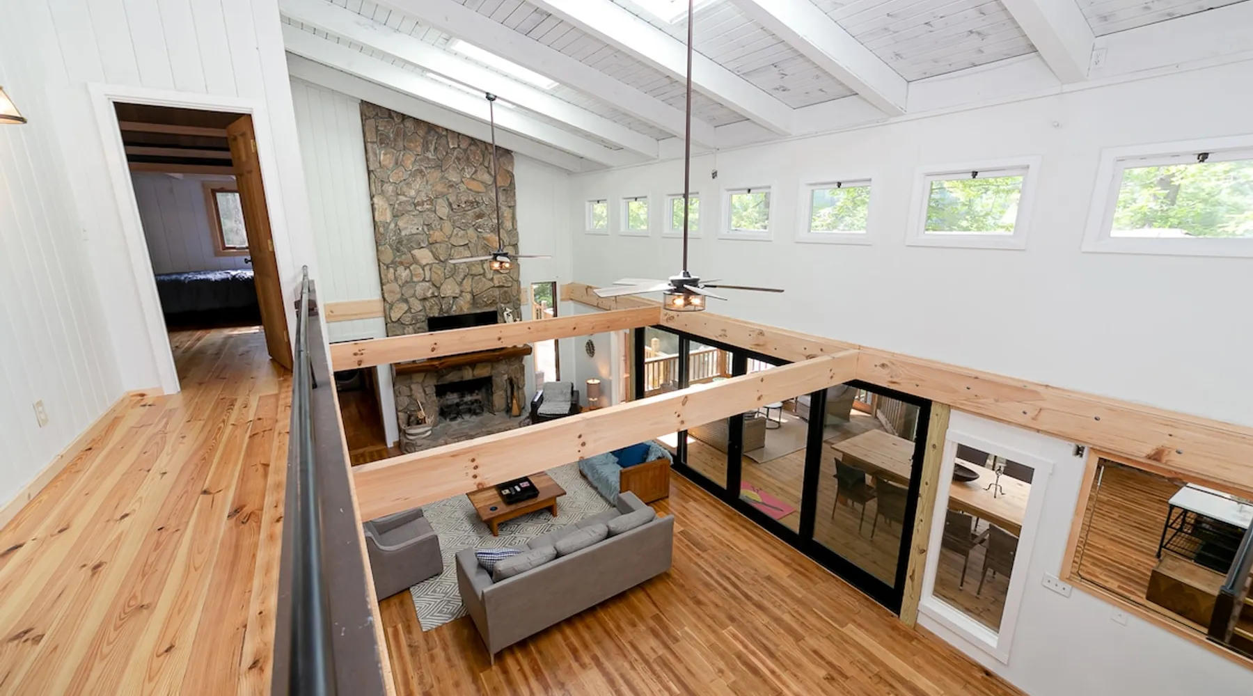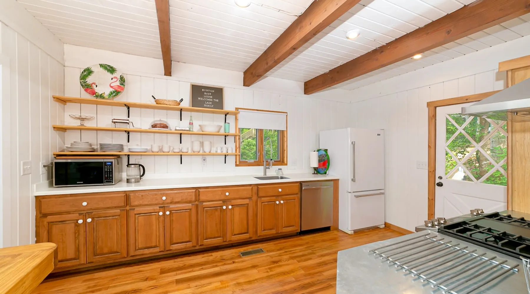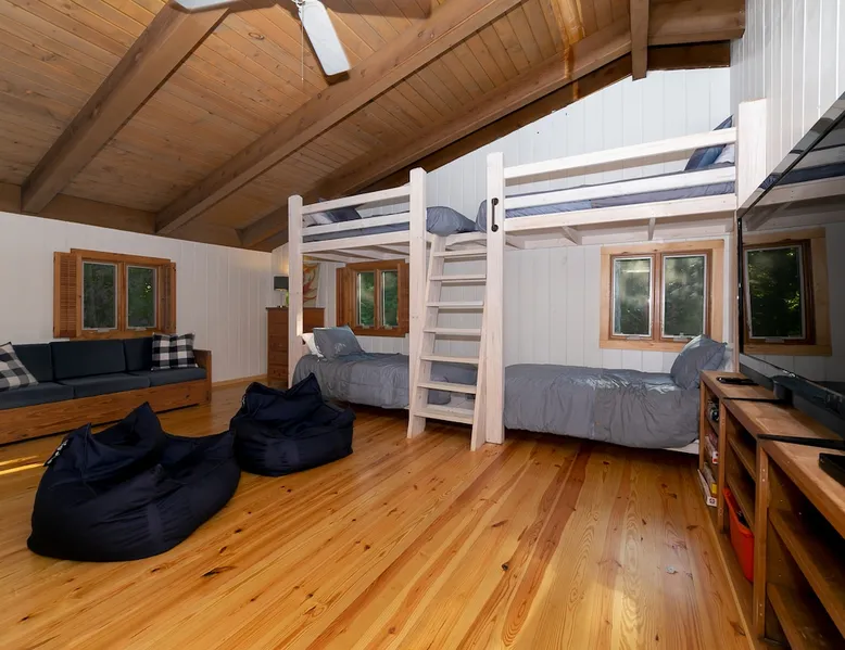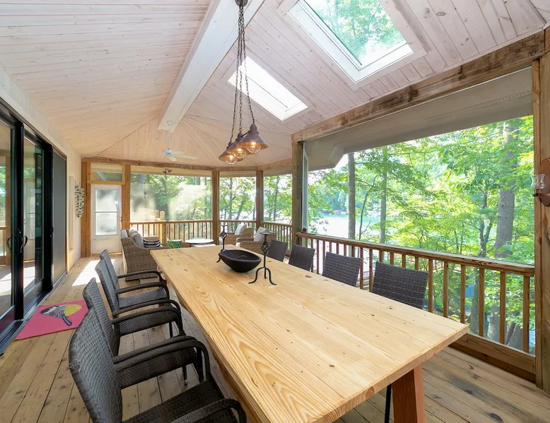 Visit this truly classic lake house located on Lake Burton. Private Multi Level Boathouse. This property is nestled in Murray Cove with calm waters . Large vaulted wood ceilings and bright windows fill the home with ambient light, and the open layout provides a perfect gathering space for families. Large decks including a screened-in portion and covered outdoor patio with comfortable seating make it easy to enjoy the surrounding beautiful scenery. The space Visit this truly classic lake house located on Lake Burton. Modern renovations give this 70s-built home a nostalgic summertime vibe. This property is nestled in Murray Cove with calm waters and peaceful sounds of the lake. Large, vaulted wood ceilings and bright windows fill the home with ambient light, and the open layout provides a perfect gathering space for families. Large decks including a screened-in portion and covered outdoor patio with comfortable seating make it easy to enjoy the surrounding scenery. This home features a spacious open layout with high vaulted ceilings, a stone wood-burning fireplace, and large beams and windows. The four large bedrooms provide 3 king beds and a bunk room that can easily accommodate groups and families. New renovations including vintage light fixtures, stylish furniture, and bright paint give this classic lake house a modern rustic feel. The boathouse deck features plenty of seating including sun-lounger chairs and a patio table with an umbrella. Ideal for sunbathing, bbq, swimming, fishing, and enjoying the idyllic scenes of Lake Burton. There are 3 kayaks provided for guest use. The boat is not available, but rentals are available at LaPrade's Marina less than 10 minutes away. Other things to note 25+ age requirement for lead guest. No exceptions. This property is not pet-friendly. No exceptions. Digital rental agreement will be required to sign and complete after property is booked. Firewood not supplied. Georgia fishing license required for fishing on the property. Boat not available to guests, rentals are available at LaPrade's Marina less than 10 minutes away from property. 23' of dock space to tie up rental boat during the day. Lake Burton drawdown schedule 2025/2026: • October 2025 - As of this year The lake is scheduled to remain at its normal summer pool elevation of 1865 feet (1865.0 elevation)