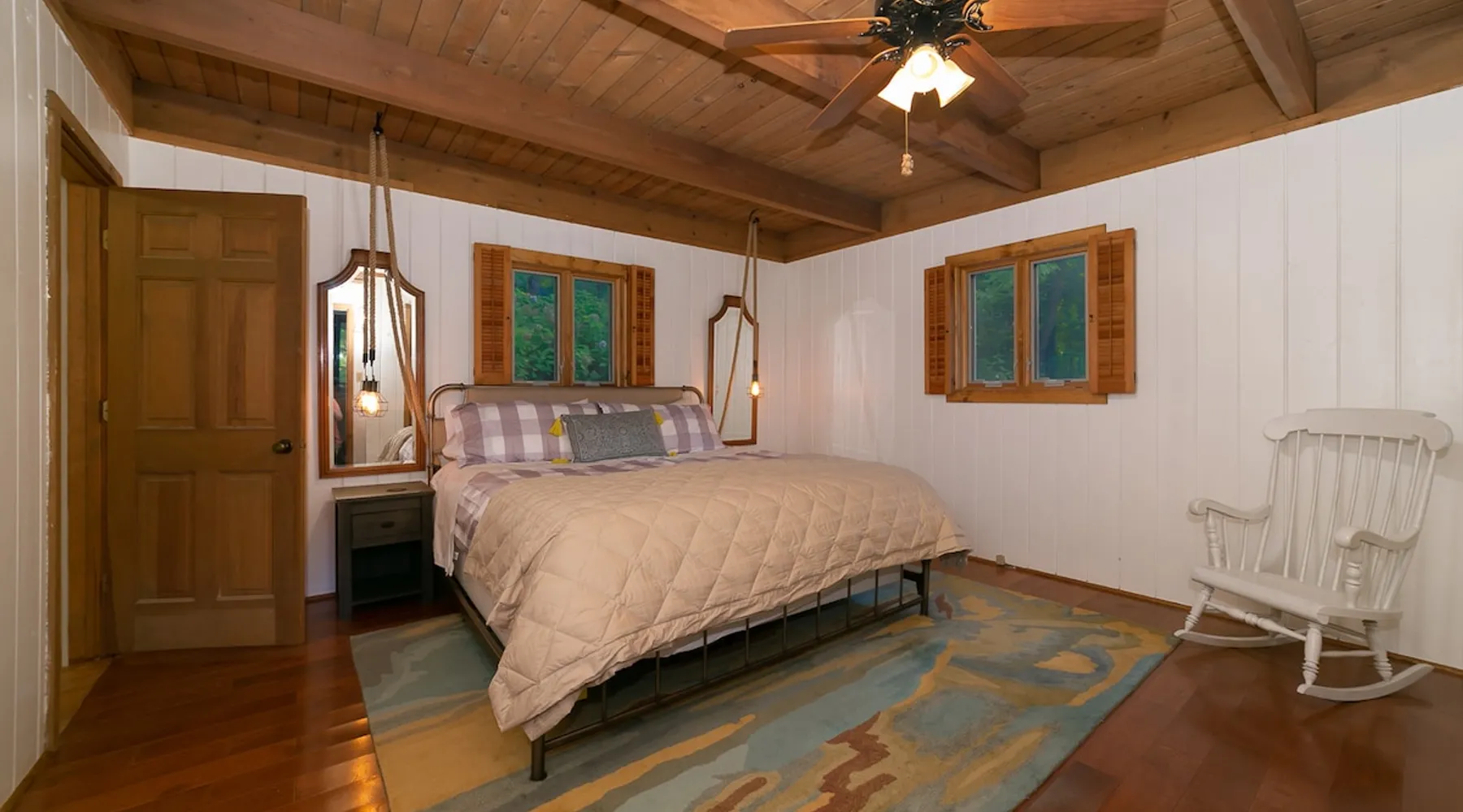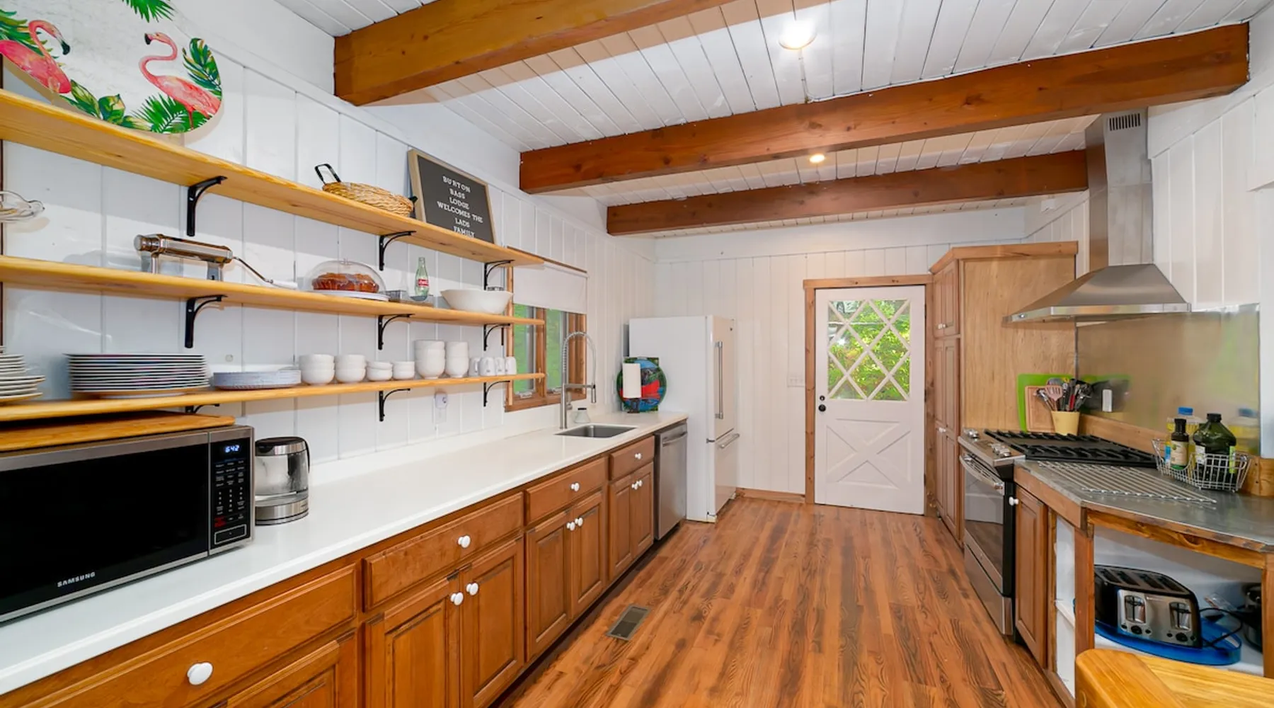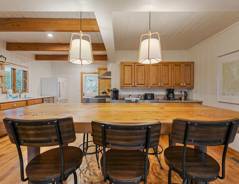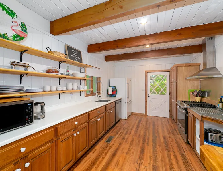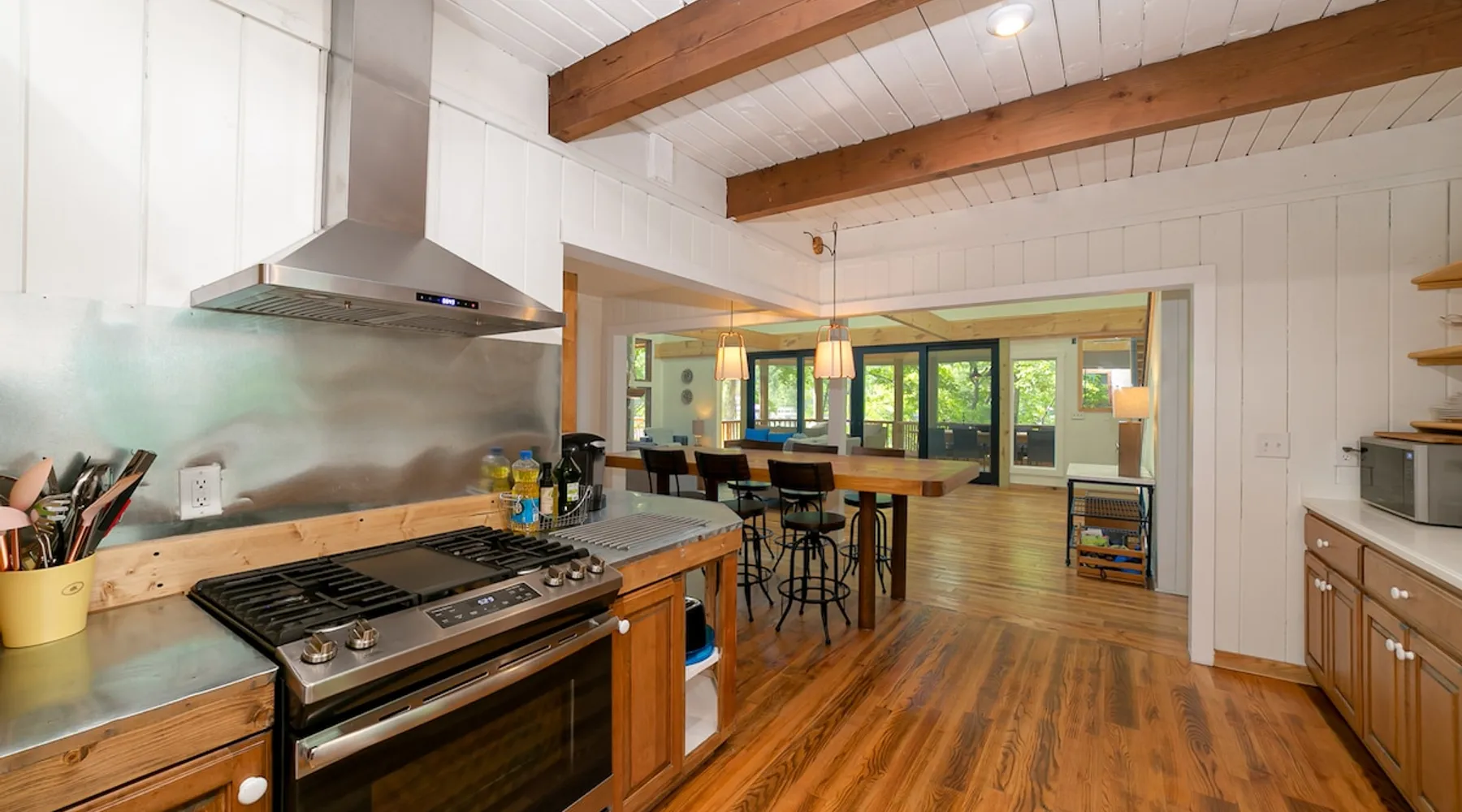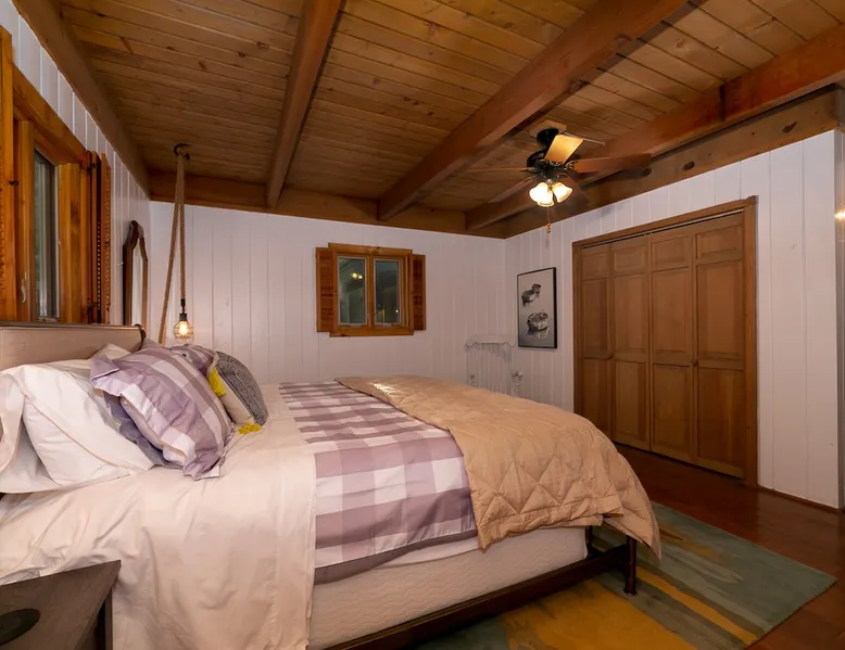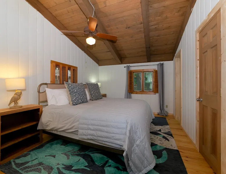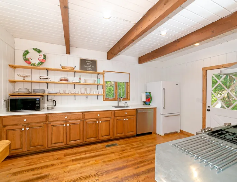 Visit this truly classic lake house located on Lake Burton. Private Multi Level Boathouse. This property is nestled in Murray Cove with calm waters . Large vaulted wood ceilings and bright windows fill the home with ambient light, and the open layout provides a perfect gathering space for families. Large decks including a screened-in portion and covered outdoor patio with comfortable seating make it easy to enjoy the surrounding beautiful scenery. The space Visit this truly classic lake house located on Lake Burton. Modern renovations give this 70s-built home a nostalgic summertime vibe. This property is nestled in Murray Cove with calm waters and peaceful sounds of the lake. Large, vaulted wood ceilings and bright windows fill the home with ambient light, and the open layout provides a perfect gathering space for families. Large decks including a screened-in portion and covered outdoor patio with comfortable seating make it easy to enjoy the surrounding scenery. This home features a spacious open layout with high vaulted ceilings, a stone wood-burning fireplace, and large beams and windows. The four large bedrooms provide 3 king beds and a bunk room that can easily accommodate groups and families. New renovations including vintage light fixtures, stylish furniture, and bright paint give this classic lake house a modern rustic feel. The boathouse deck features plenty of seating including sun-lounger chairs and a patio table with an umbrella. Ideal for sunbathing, bbq, swimming, fishing, and enjoying the idyllic scenes of Lake Burton. There are 3 kayaks provided for guest use. The boat is not available, but rentals are available at LaPrade's Marina less than 10 minutes away. Other things to note 25+ age requirement for lead guest. No exceptions. This property is not pet-friendly. No exceptions. Digital rental agreement will be required to sign and complete after property is booked. Firewood not supplied. Georgia fishing license required for fishing on the property. Boat not available to guests, rentals are available at LaPrade's Marina less than 10 minutes away from property. 23' of dock space to tie up rental boat during the day. Lake Burton drawdown schedule 2025/2026: • October 2025 - As of this year The lake is scheduled to remain at its normal summer pool elevation of 1865 feet (1865.0 elevation)