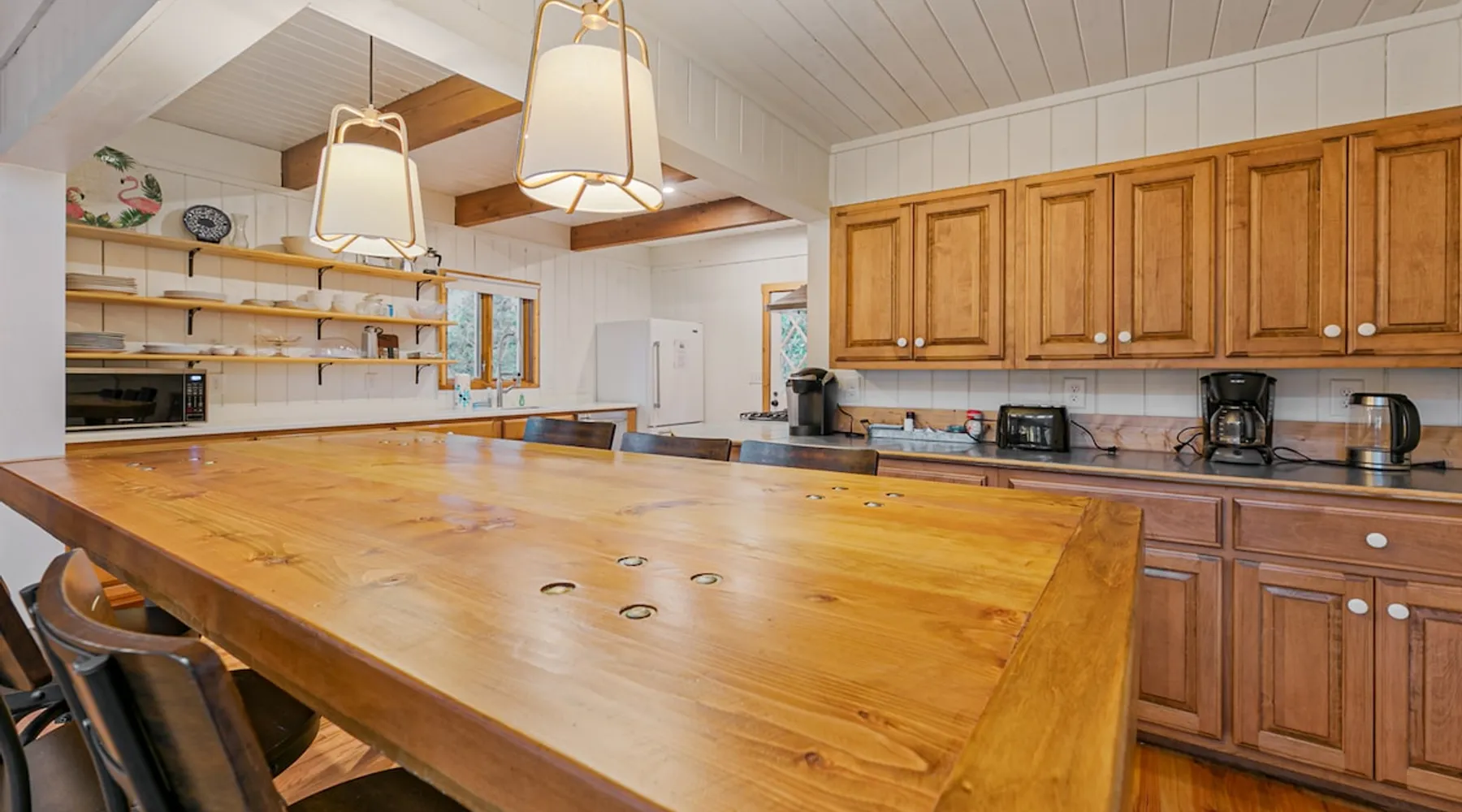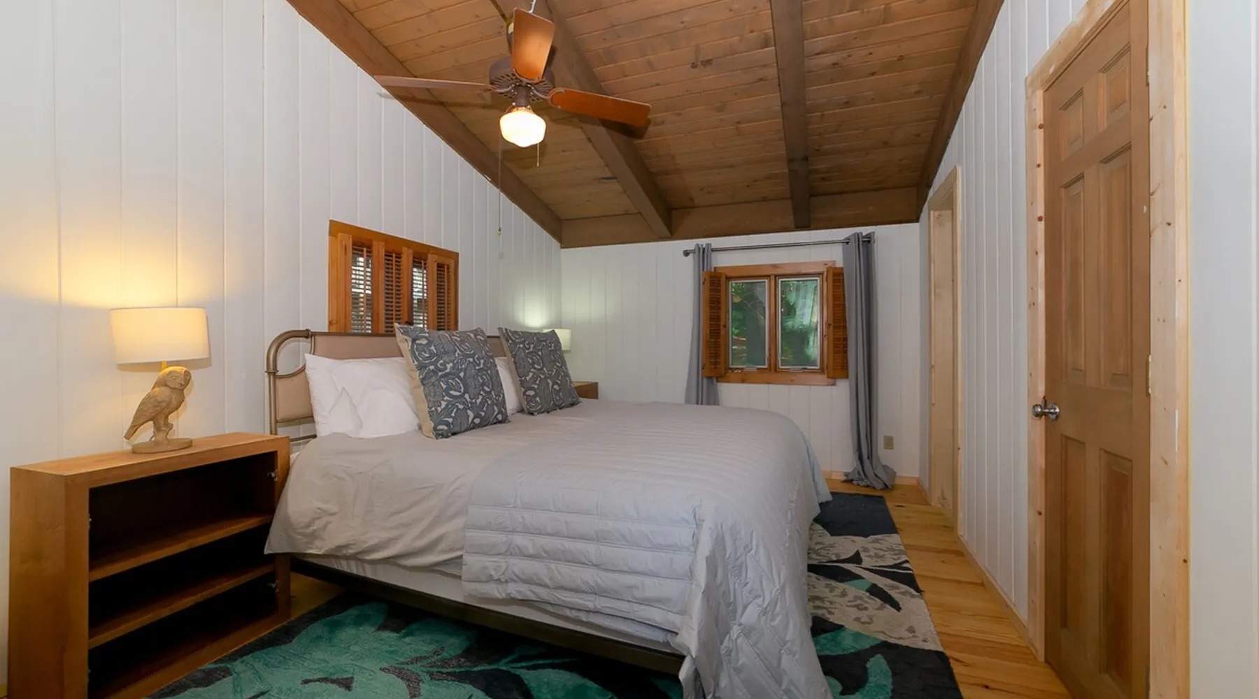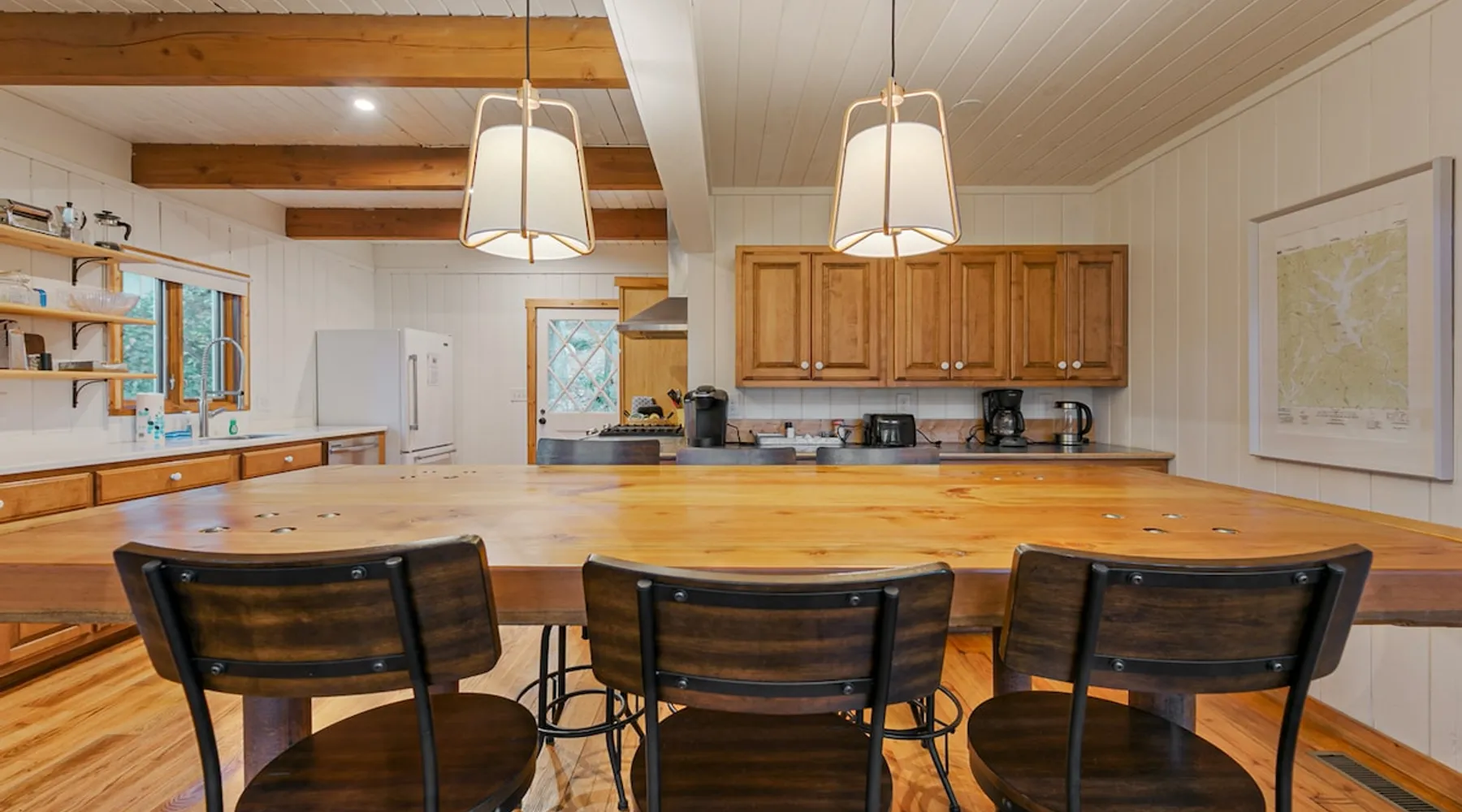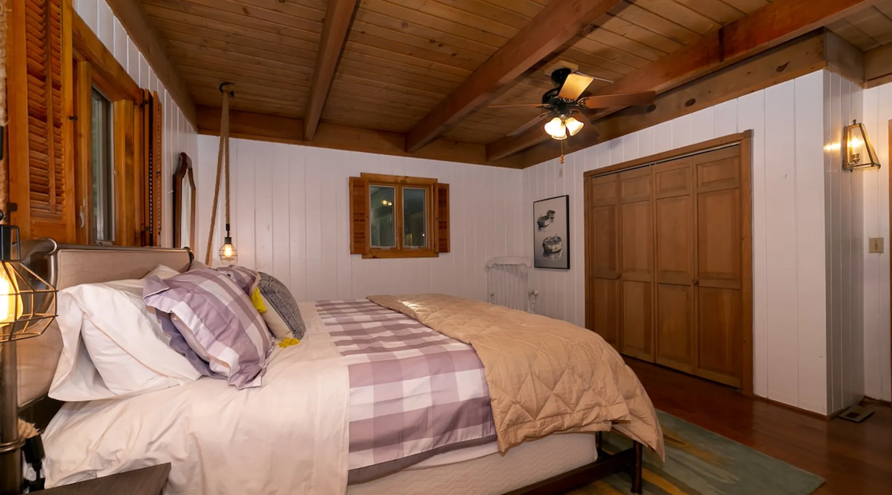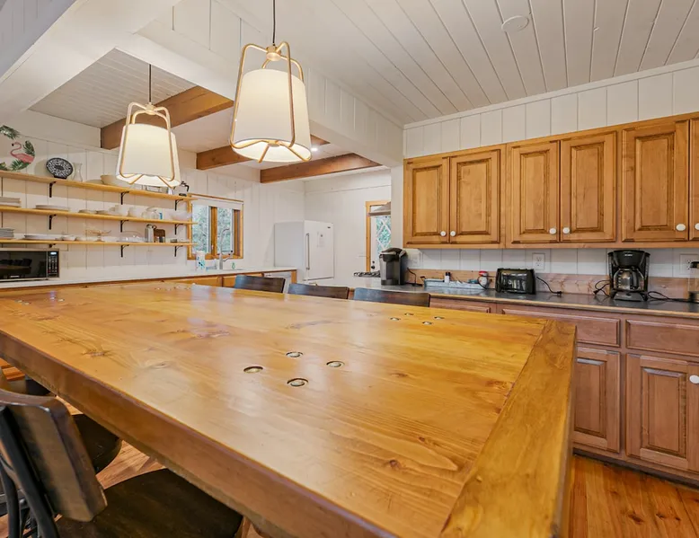 Visit this truly classic lake house located on Lake Burton. Private Multi Level Boathouse. This property is nestled in Murray Cove with calm waters . Large vaulted wood ceilings and bright windows fill the home with ambient light, and the open layout provides a perfect gathering space for families. Large decks including a screened-in portion and covered outdoor patio with comfortable seating make it easy to enjoy the surrounding beautiful scenery. The space Visit this truly classic lake house located on Lake Burton. Modern renovations give this 70s-built home a nostalgic summertime vibe. This property is nestled in Murray Cove with calm waters and peaceful sounds of the lake. Large, vaulted wood ceilings and bright windows fill the home with ambient light, and the open layout provides a perfect gathering space for families. Large decks including a screened-in portion and covered outdoor patio with comfortable seating make it easy to enjoy the surrounding scenery. This home features a spacious open layout with high vaulted ceilings, a stone wood-burning fireplace, and large beams and windows. The four large bedrooms provide 3 king beds and a bunk room that can easily accommodate groups and families. New renovations including vintage light fixtures, stylish furniture, and bright paint give this classic lake house a modern rustic feel. The boathouse deck features plenty of seating including sun-lounger chairs and a patio table with an umbrella. Ideal for sunbathing, bbq, swimming, fishing, and enjoying the idyllic scenes of Lake Burton. There are 3 kayaks provided for guest use. The boat is not available, but rentals are available at LaPrade's Marina less than 10 minutes away. Other things to note 25+ age requirement for lead guest. No exceptions. This property is not pet-friendly. No exceptions. Digital rental agreement will be required to sign and complete after property is booked. Firewood not supplied. Georgia fishing license required for fishing on the property. Boat not available to guests, rentals are available at LaPrade's Marina less than 10 minutes away from property. 23' of dock space to tie up rental boat during the day. Lake Burton drawdown schedule 2025/2026: • October 2025 - As of this year The lake is scheduled to remain at its normal summer pool elevation of 1865 feet (1865.0 elevation)