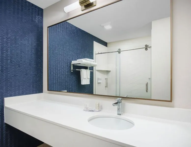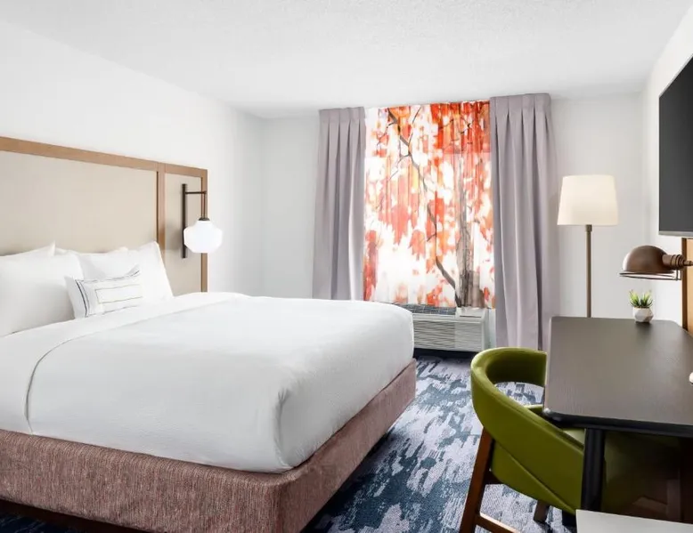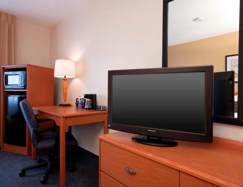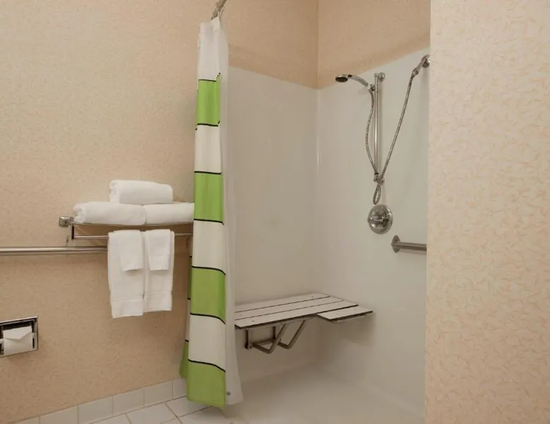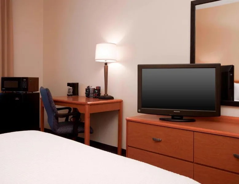 Comfortable Accommodations: Fairfield Inn by Marriott Joliet South in Joliet offers family rooms with air-conditioning, private bathrooms, and free WiFi. Each room includes a tea and coffee maker, refrigerator, work desk, and TV. Leisure Facilities: Guests can enjoy a garden, indoor swimming pool, and free bicycles. Additional amenities include a elevator, 24-hour front desk, housekeeping service, business area, and full-day security. Dining Options: An American breakfast is provided by the property. On-site private parking is available for a fee. Location and Attractions: Located 37 mi from Midway International Airport, the hotel is near Joliet Area Historical Museum (6.2 mi), Chicagoland Speedway (9.3 mi), and other attractions. Guests appreciate the friendly staff and convenient location. Offering free toiletries, this family room includes a private bathroom with a shower and a hairdryer. The air-conditioned family room offers a flat-screen TV with cable channels, a private entrance, a tea and coffee maker and a seating area. The unit offers 1 bed.
