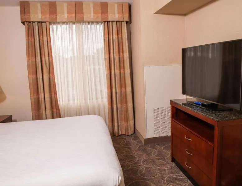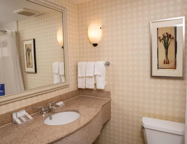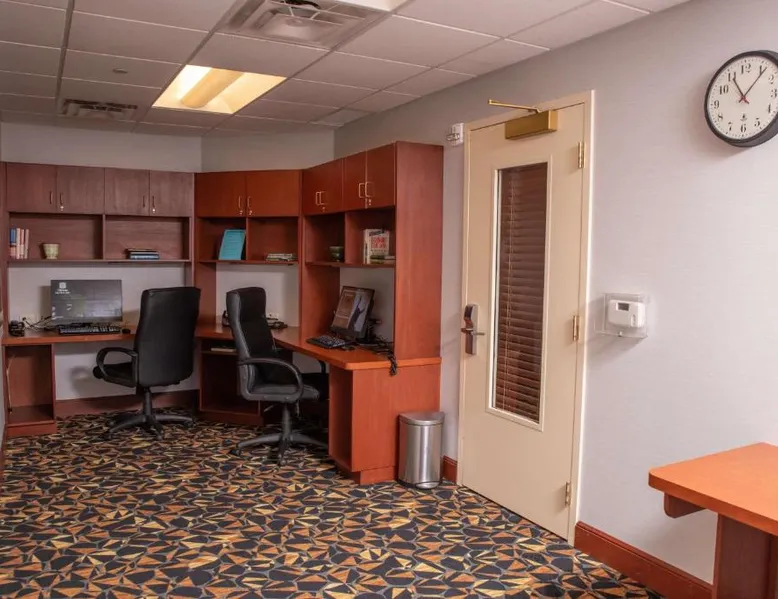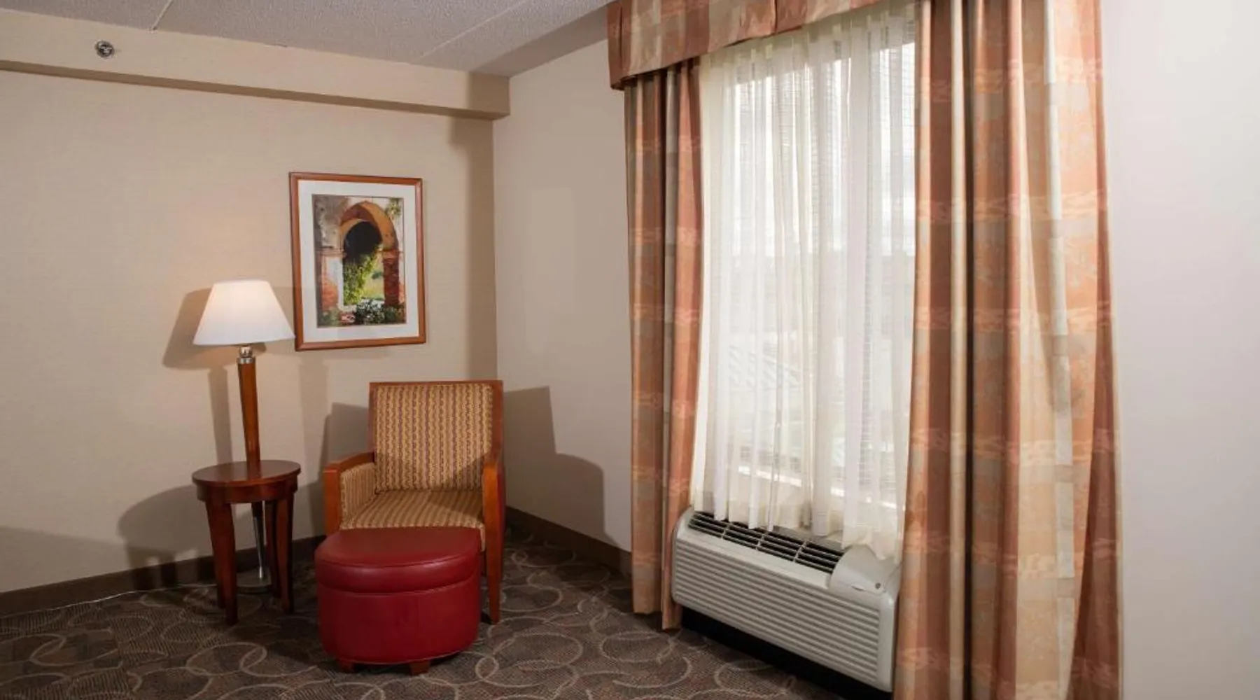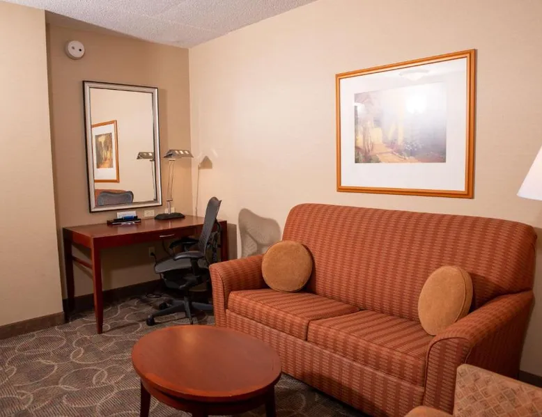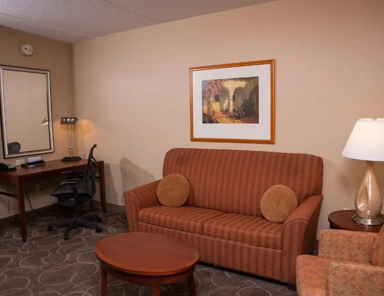 Comfortable Accommodations: Rooms feature air-conditioning, tea and coffee makers, hairdryers, refrigerators, work desks, free toiletries, microwaves, and TVs. Additional amenities include spa baths, baths, sofa beds, and seating areas. Dining and Leisure: The family-friendly restaurant serves American cuisine in a traditional ambiance. Guests can also enjoy the bar and indoor swimming pool. Free on-site parking is available. Convenient Location: Located in Erie, the hotel is 7.5 mi from Erie International Airport. Nearby attractions include Erie Zoo (4.3 mi), Presque Isle Downs and Casino (3.7 mi), and Erie Art Museum (6.2 mi). Guest Satisfaction: Highly rated for room cleanliness, staff support, and bed comfort. This room features a flat-screen TV, a microwave, refrigerator, and a work desk.