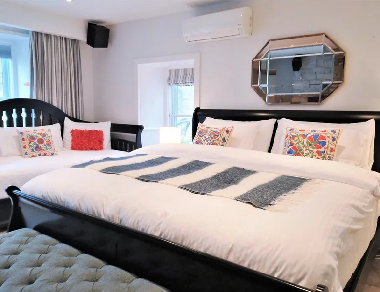 This ultimate luxury suite offers an impressive gourmet kitchen and a spacious entertaining area with 12 ft. high ceilings. It sets the standard for charm and elegance with original pine floors and deep-set windows that highlight the beauty of the nature surrounding you. With heated marble floors in both bedrooms and a spa-like bathroom, our guests are always sure to leave us relaxed and refreshed. The space Built over two centuries ago, All Suites Whitney Manor is one of the most historic and luxurious inns that Kingston and the 1000 Islands has to offer. Our stylishly decorated suites combine historic 18th century architecture with modern-day luxuries and conveniences, rivaling that of any five star hotel. As a self-catered accommodation, each suite acts as its own luxury apartment offering guests a chance to relax and enjoy their stay in a setting that offers so much more than your typical shoe-box size hotel room. So whether you’re in the area for work or pleasure, All Suites Whitney Manor is sure to make your stay in Kingston an unforgettable one! Guest access As with all of our suites at Whitney Manor, the Whitney Suite is completely private and secured from any other guests staying on the property. You'll of course have access to everything in the suite, which includes: a master bedroom with king size bed and trundle bed, a second bedroom with a queen size bed, one bathroom, a spacious entertaining area, a gourmet kitchen, eight-person dining table, and an in-suite washer and dryer. Outside you're free to walk the grounds as you please and guests of this suite can always enjoy a cocktail on their furnished patio area that overlooks the front of the property. Other things to note - Please note that there is no elevator on-site so this suite is not recommended for anyone who has trouble climbing stairs. - Due to the unique layout of our property, we do not have a typical front desk or lobby when you check-in. So depending on your arrival time, we may not have a staff member on-site to check you in. On those occasions we have set up a quick and hassle free self-service check-in process. If you require someone from our staff check you in, we’d be happy to accommodate you. We just ask that you contact us at least a day before your arrival and provide us with your estimated time of arrival. Registration Details Exempt