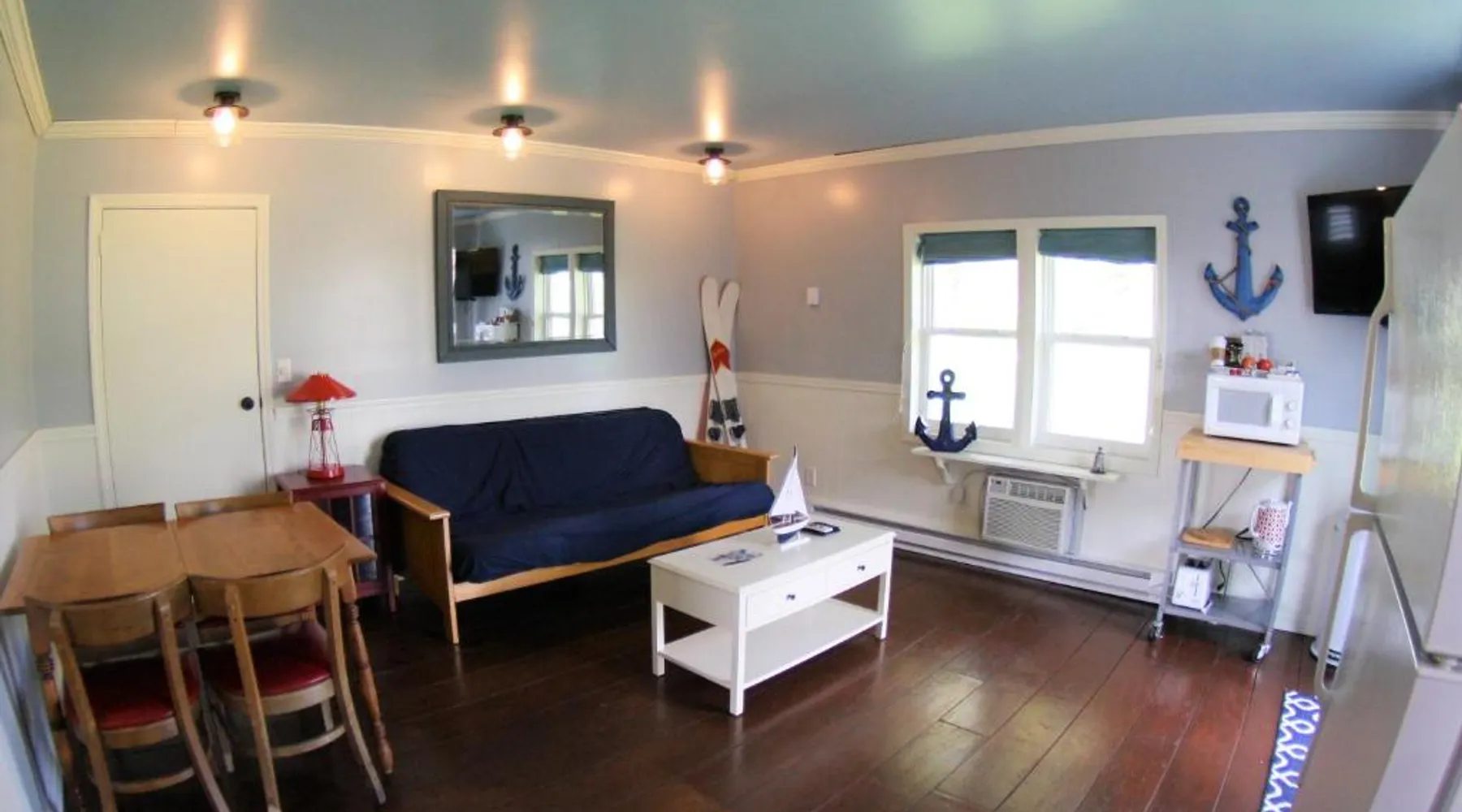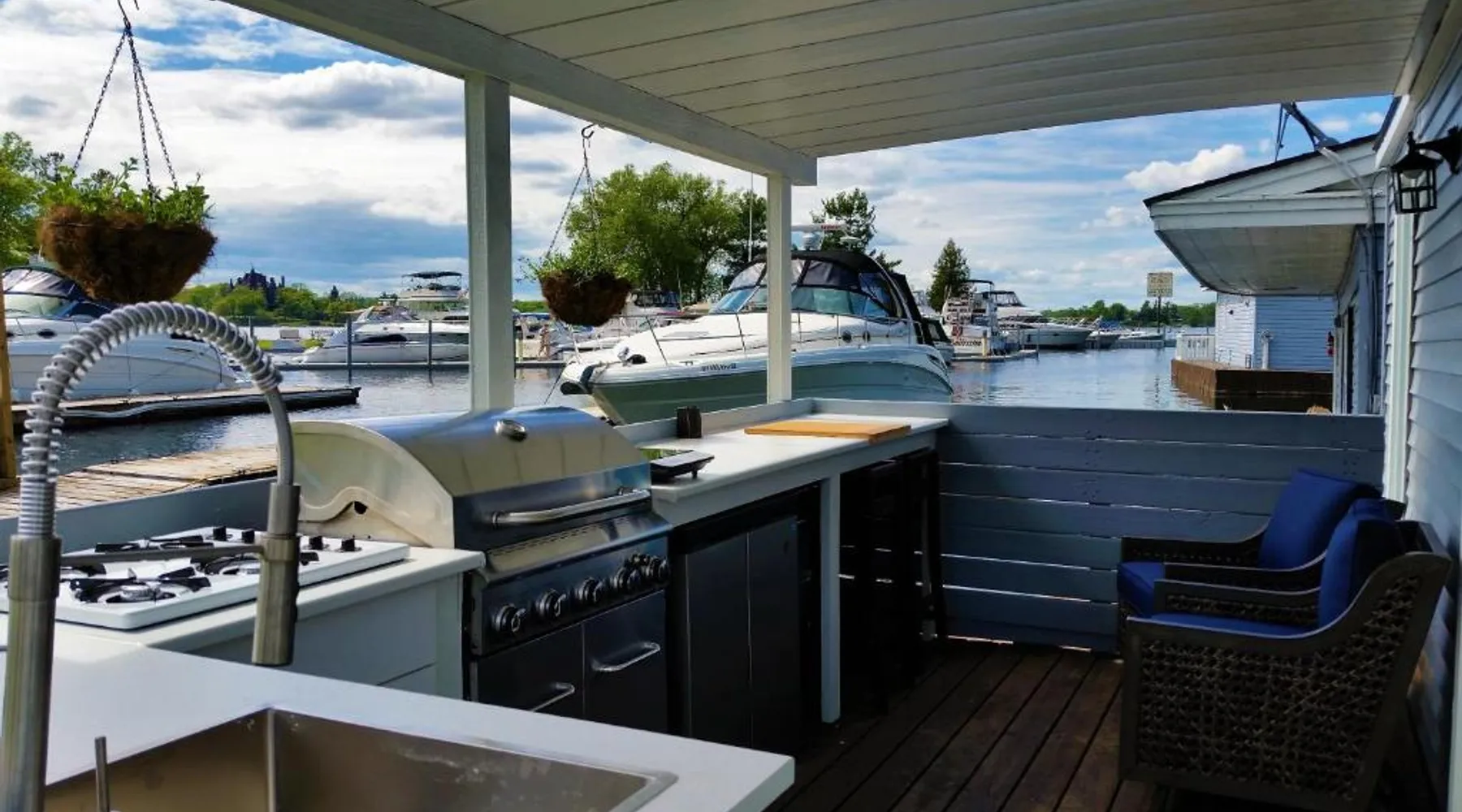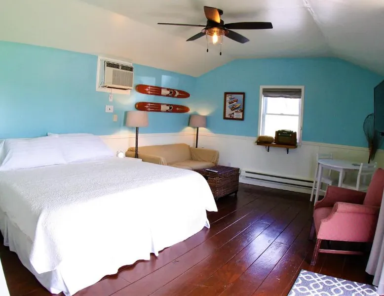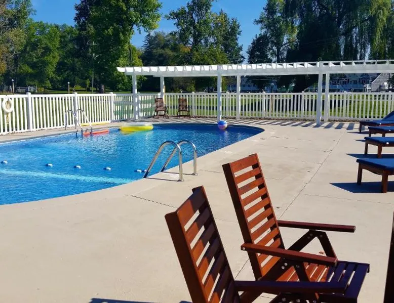Elegant Accommodations: The Ledges Resort & Marina in Alexandria Bay offers a holiday home with a swimming pool with a view, sun terrace, and lush garden. Guests enjoy free WiFi, air-conditioning, and a fully equipped kitchen. Outdoor Amenities: The property features an outdoor fireplace, seating area, picnic spots, and barbecue facilities. Additional amenities include a balcony, patio, and dining area, ensuring a comfortable and relaxing stay. Local Attractions: Located 33 mi from Watertown International Airport, The Ledges Resort & Marina is a short walk from Uncle Sam Boat Tours and 0.9 mi from Boldt Castle. Other nearby attractions include Thousand Islands Bridge and St Lawrence Fishing Charter. Guest Favorites: Guests highly rate the convenient location, making it a preferred choice for visitors to Alexandria Bay. Guests will have a special experience as the holiday home provides a pool with a view. Featuring a private entrance, this air-conditioned holiday home consists of 1 living room, 1 separate bedroom and 1 bathroom with a walk-in shower and a hairdryer. Guests will find a stovetop, a refrigerator, a dishwasher and kitchenware in the kitchen. The holiday home also offers a barbecue. This holiday home features soundproof walls, flat-screen TV with satellite channels, lake views, as well as chocolate for guests. The unit offers 1 bed.