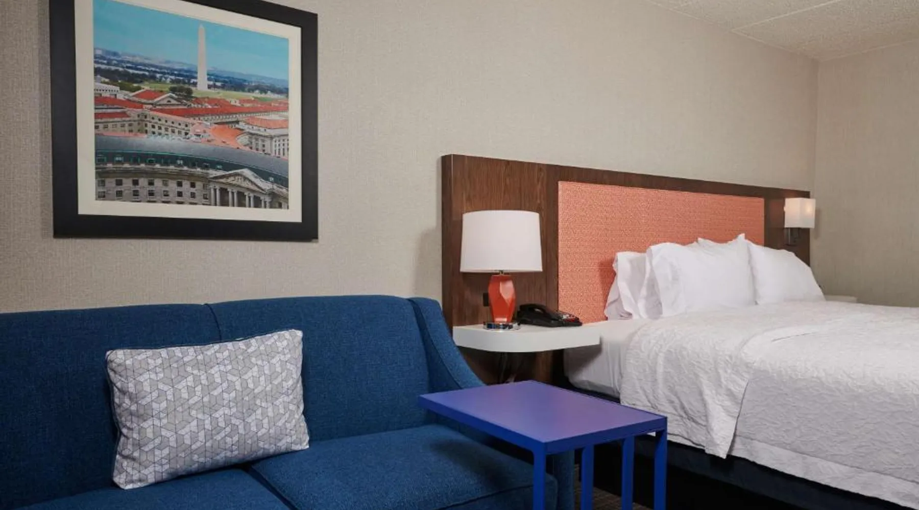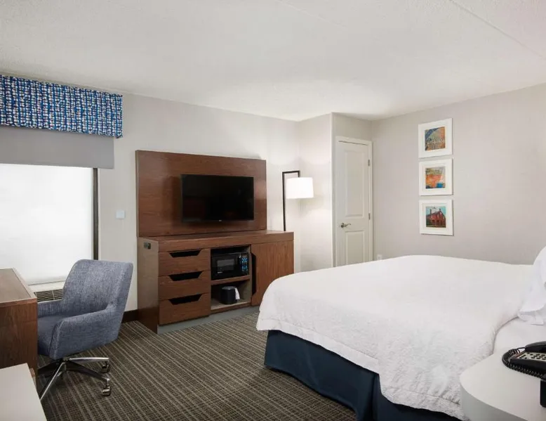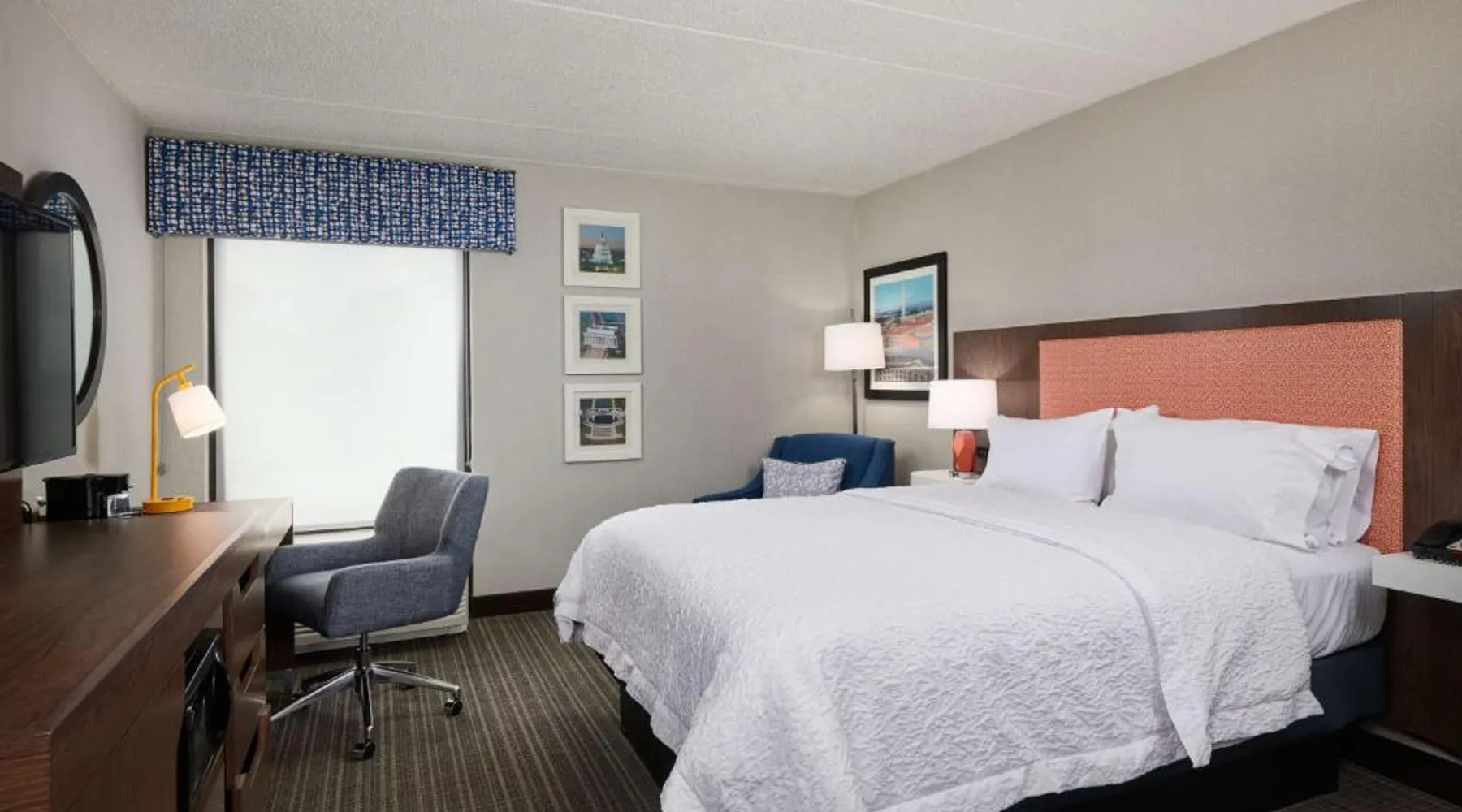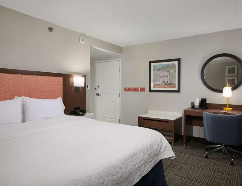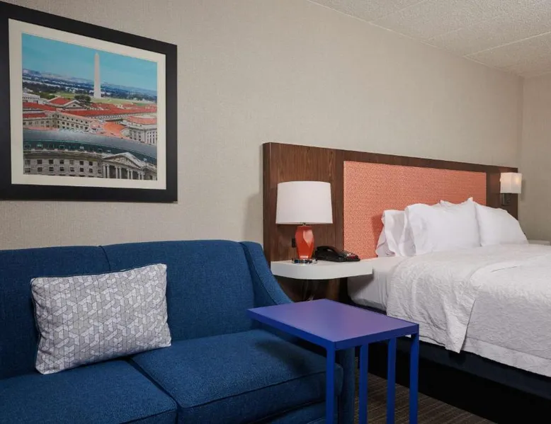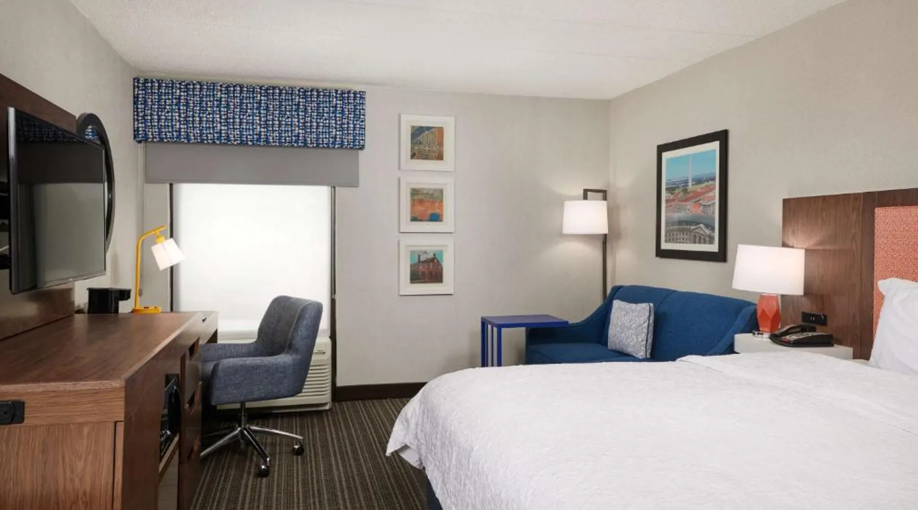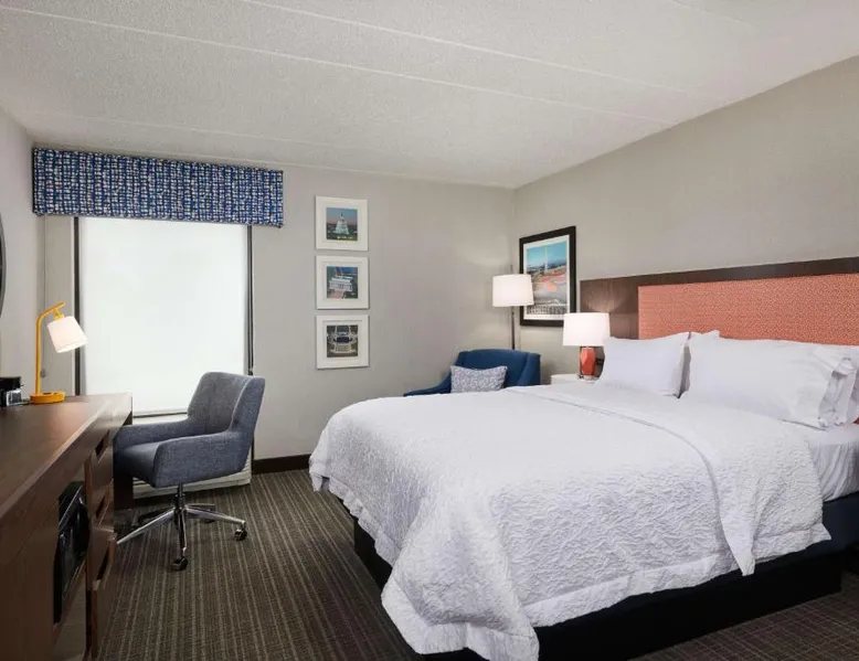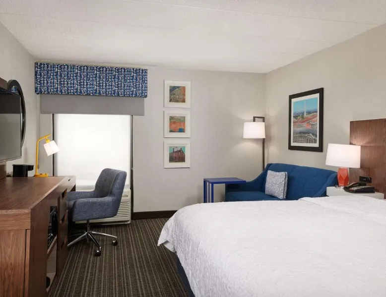 Comfortable Accommodations: Hampton Inn Fairfax City in Fairfax offers clean, comfortable rooms with air-conditioning, free WiFi, and modern amenities. Guests enjoy amenities such as a fitness center, lounge, and outdoor seating area. Convenient Facilities: The hotel provides a fitness room, business area, and electric vehicle charging station. Additional services include a 24-hour front desk, daily housekeeping, and free on-site private parking. Delicious Breakfast: A variety of breakfast options are available, including continental, American, and buffet. Guests appreciate the quality and selection of the morning meal. Prime Location: Located 9.9 mi from Washington Dulles International Airport, the hotel is near attractions such as the Air Force Memorial (16 mi) and Lincoln Memorial (17 mi). Free WiFi is available throughout the property. This double room is air-conditioned and features a flat-screen TV with cable channels, a tea and coffee maker, a safe deposit box and heating. The unit offers 1 bed.