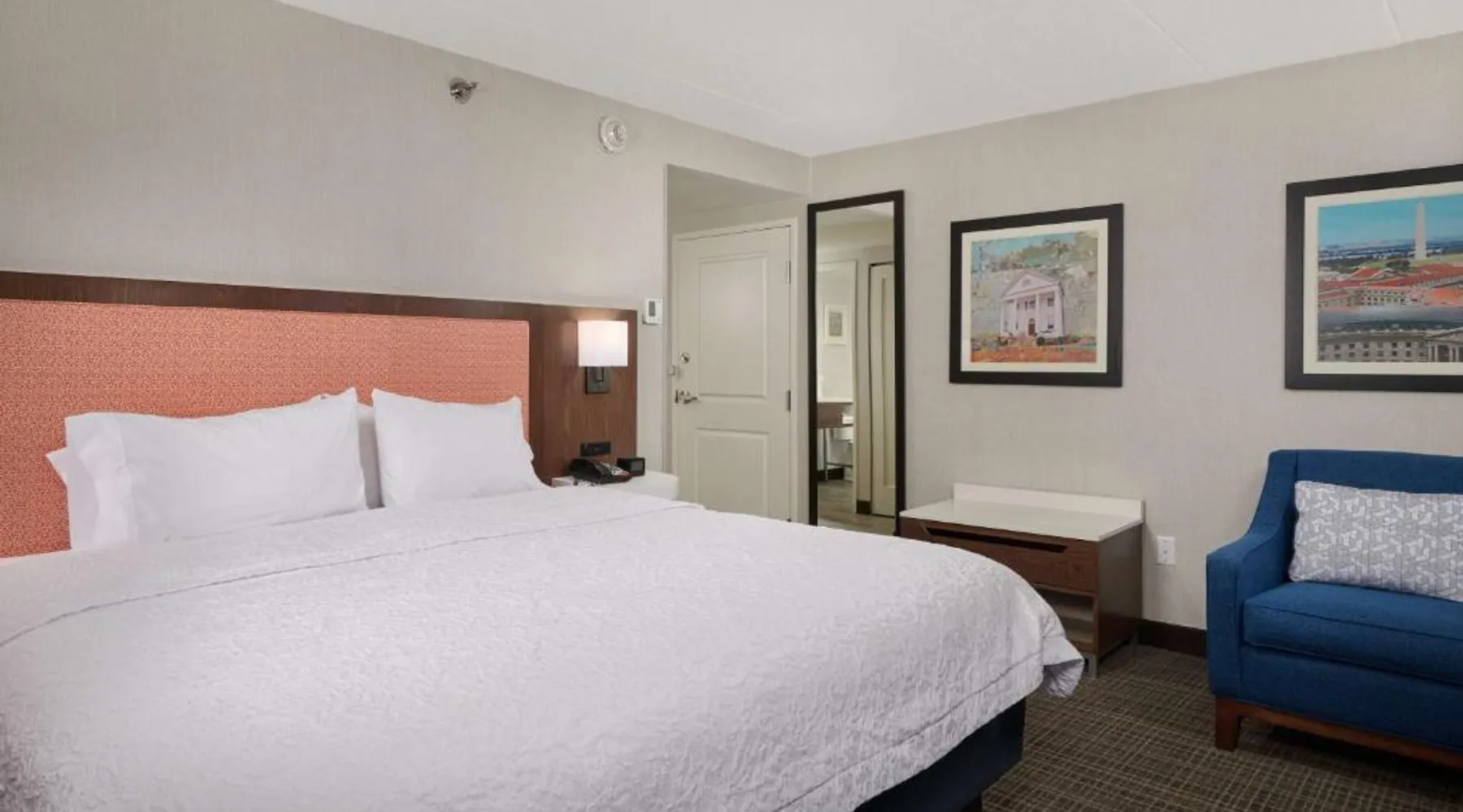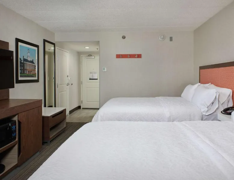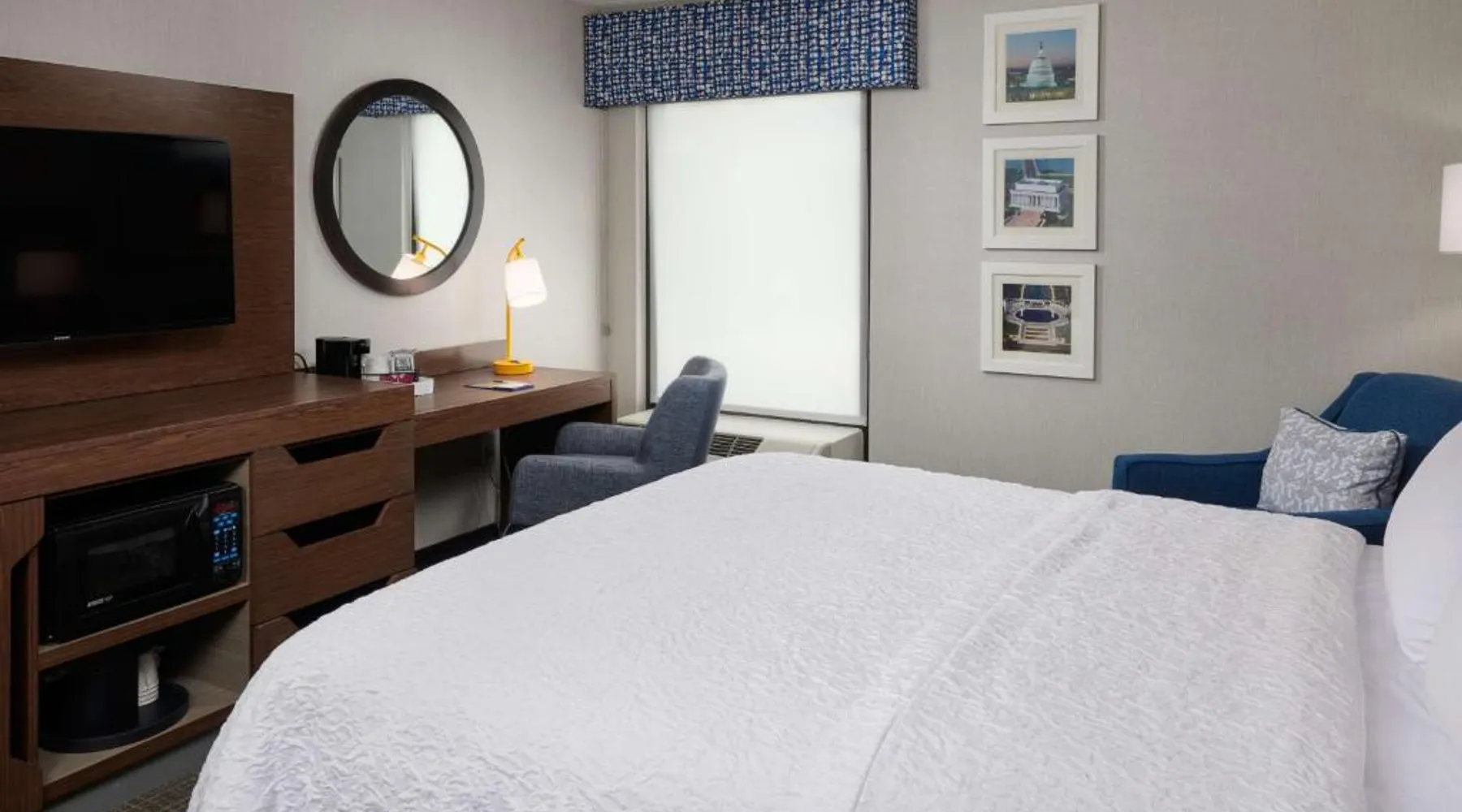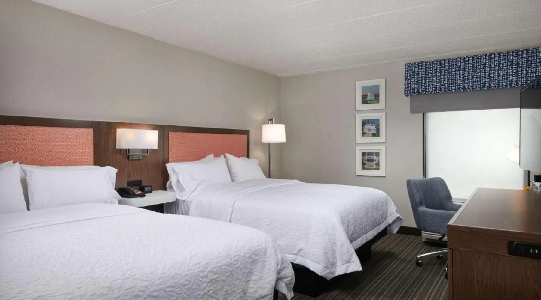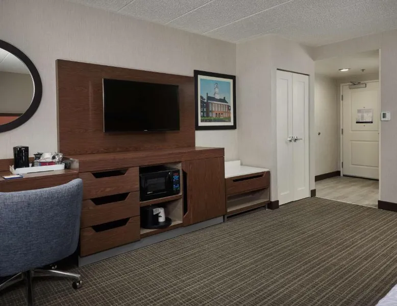 Comfortable Accommodations: Hampton Inn Fairfax City in Fairfax offers clean, comfortable rooms with air-conditioning, free WiFi, and modern amenities. Guests enjoy amenities such as a fitness center, lounge, and outdoor seating area. Convenient Facilities: The hotel provides a fitness room, business area, and electric vehicle charging station. Additional services include a 24-hour front desk, daily housekeeping, and free on-site private parking. Delicious Breakfast: A variety of breakfast options are available, including continental, American, and buffet. Guests appreciate the quality and selection of the morning meal. Prime Location: Located 9.9 mi from Washington Dulles International Airport, the hotel is near attractions such as the Air Force Memorial (16 mi) and Lincoln Memorial (17 mi). Free WiFi is available throughout the property. This double room is air-conditioned and features a flat-screen TV with cable channels, a tea and coffee maker, a safe deposit box and heating. The unit offers 1 bed.