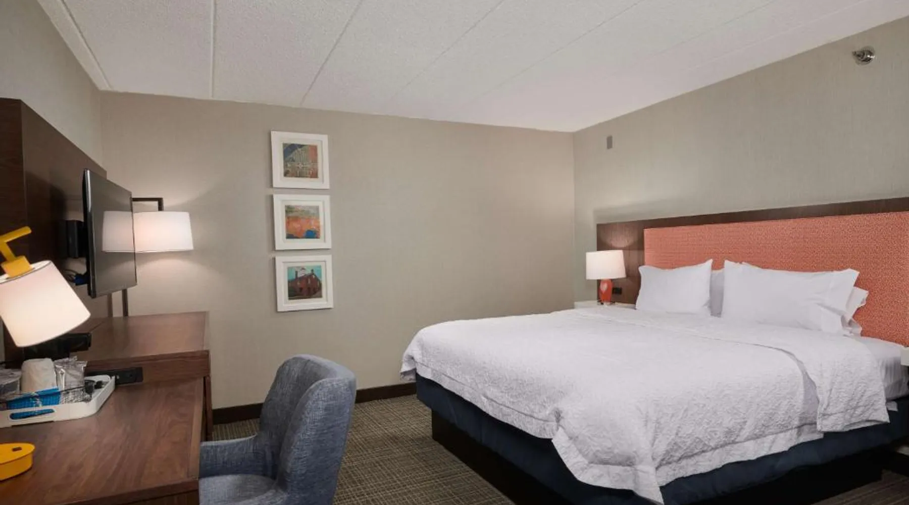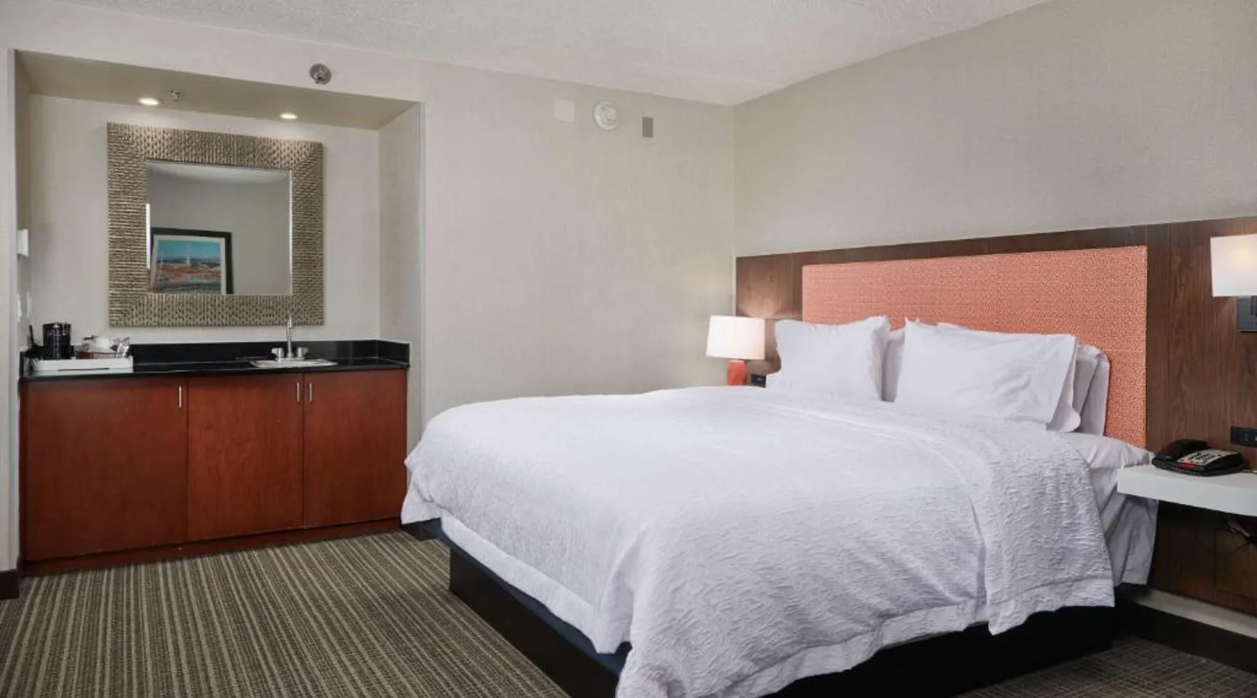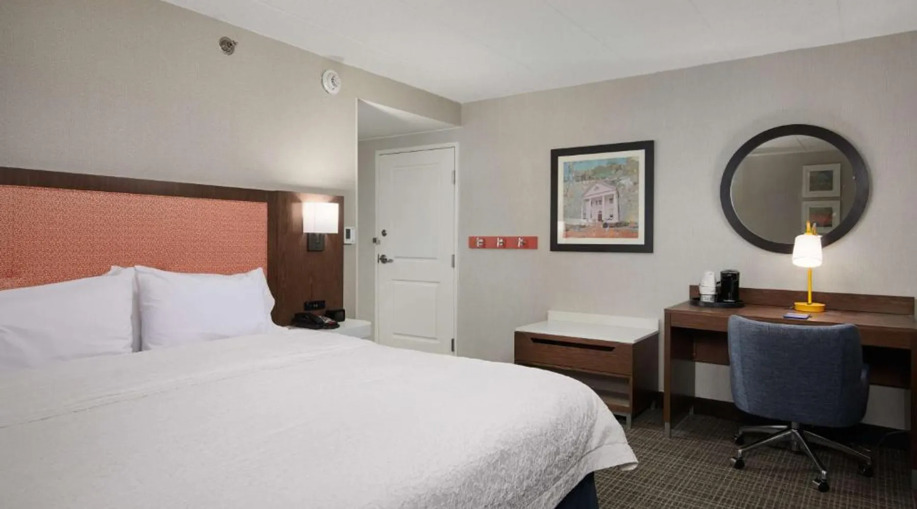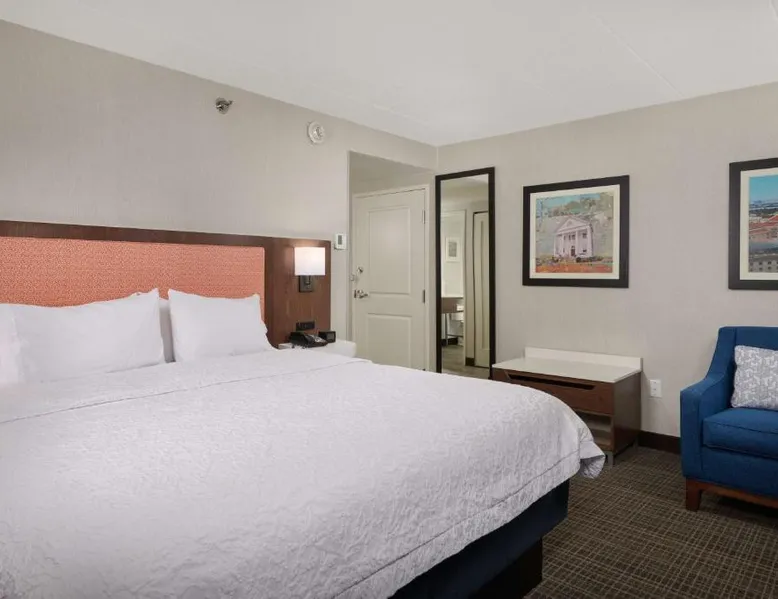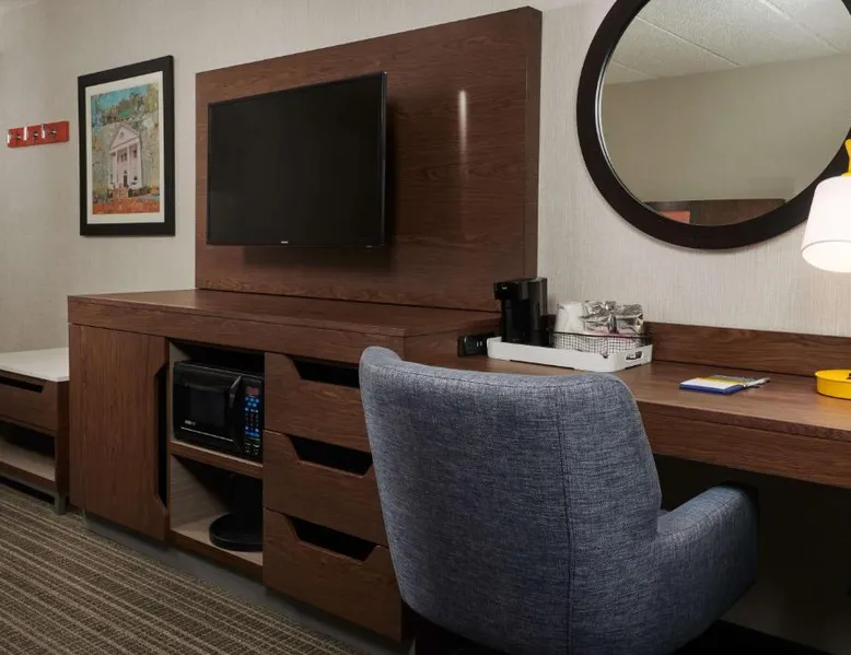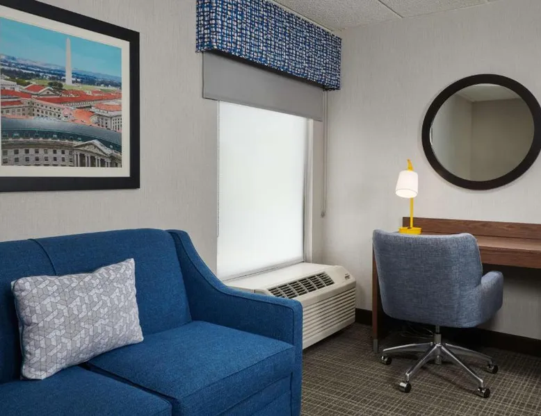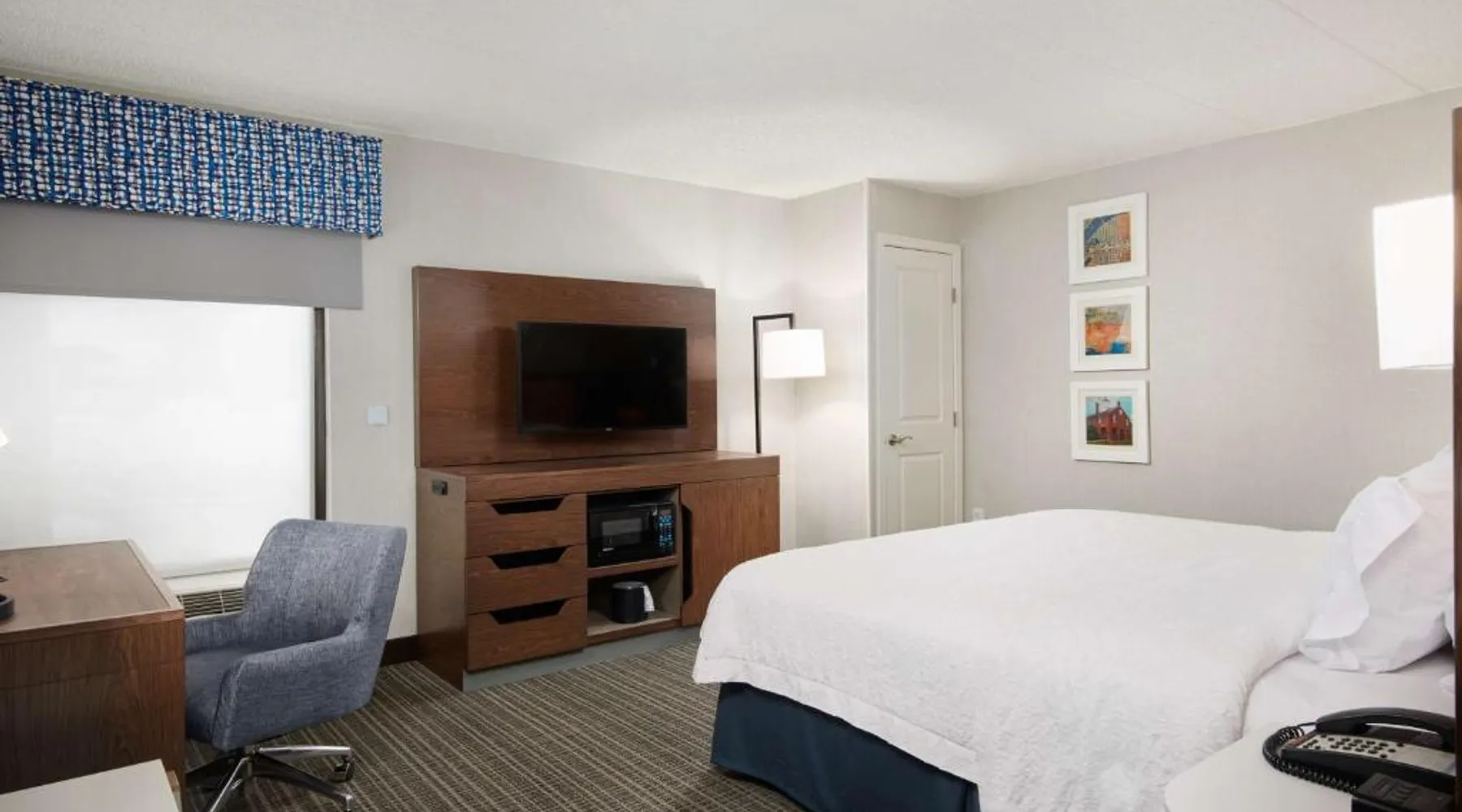 Comfortable Accommodations: Hampton Inn Fairfax City in Fairfax offers clean, comfortable rooms with air-conditioning, free WiFi, and modern amenities. Guests enjoy amenities such as a fitness center, lounge, and outdoor seating area. Convenient Facilities: The hotel provides a fitness room, business area, and electric vehicle charging station. Additional services include a 24-hour front desk, daily housekeeping, and free on-site private parking. Delicious Breakfast: A variety of breakfast options are available, including continental, American, and buffet. Guests appreciate the quality and selection of the morning meal. Prime Location: Located 9.9 mi from Washington Dulles International Airport, the hotel is near attractions such as the Air Force Memorial (16 mi) and Lincoln Memorial (17 mi). Free WiFi is available throughout the property. This double room is air-conditioned and features a flat-screen TV with cable channels, a tea and coffee maker, a safe deposit box and heating. The unit offers 1 bed.