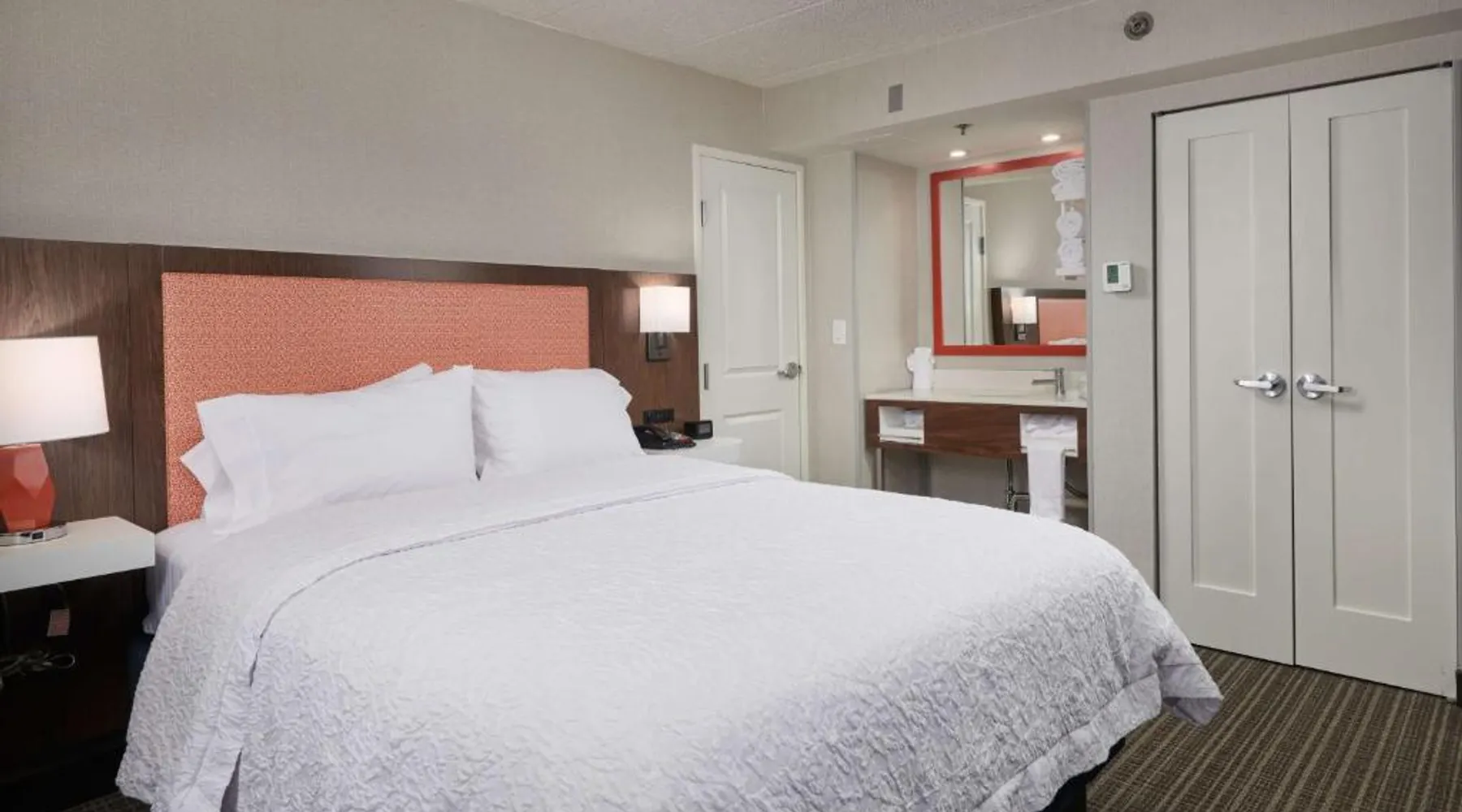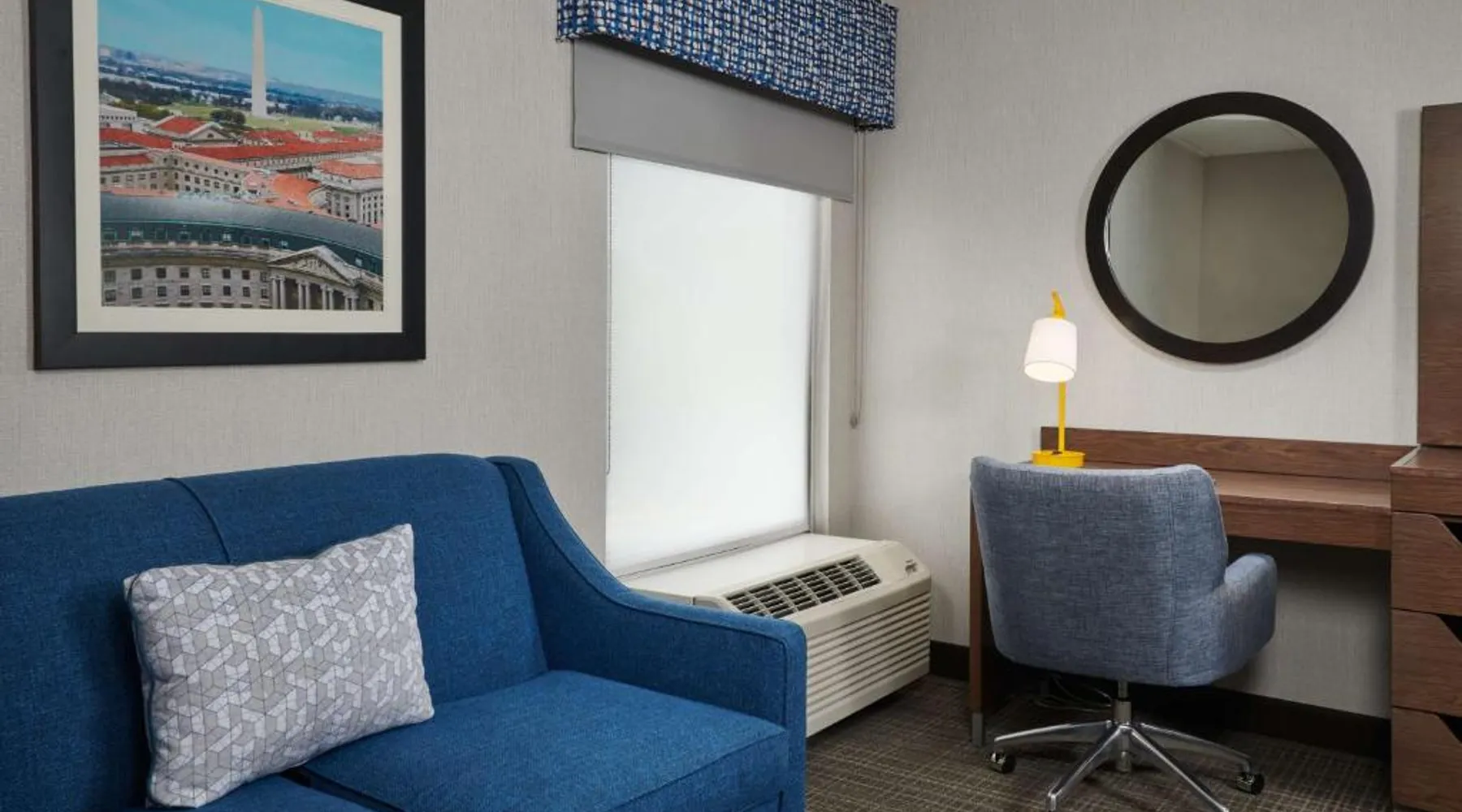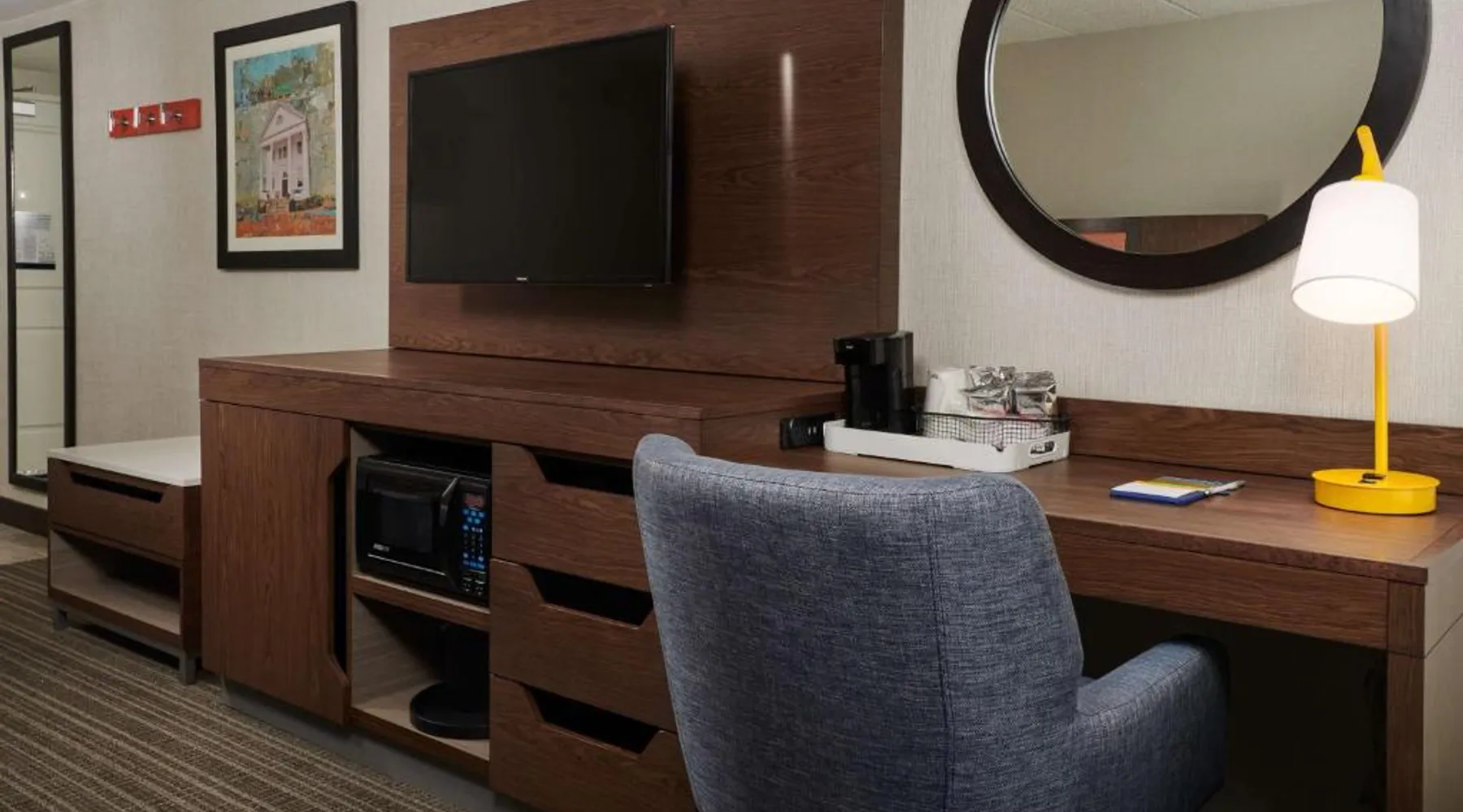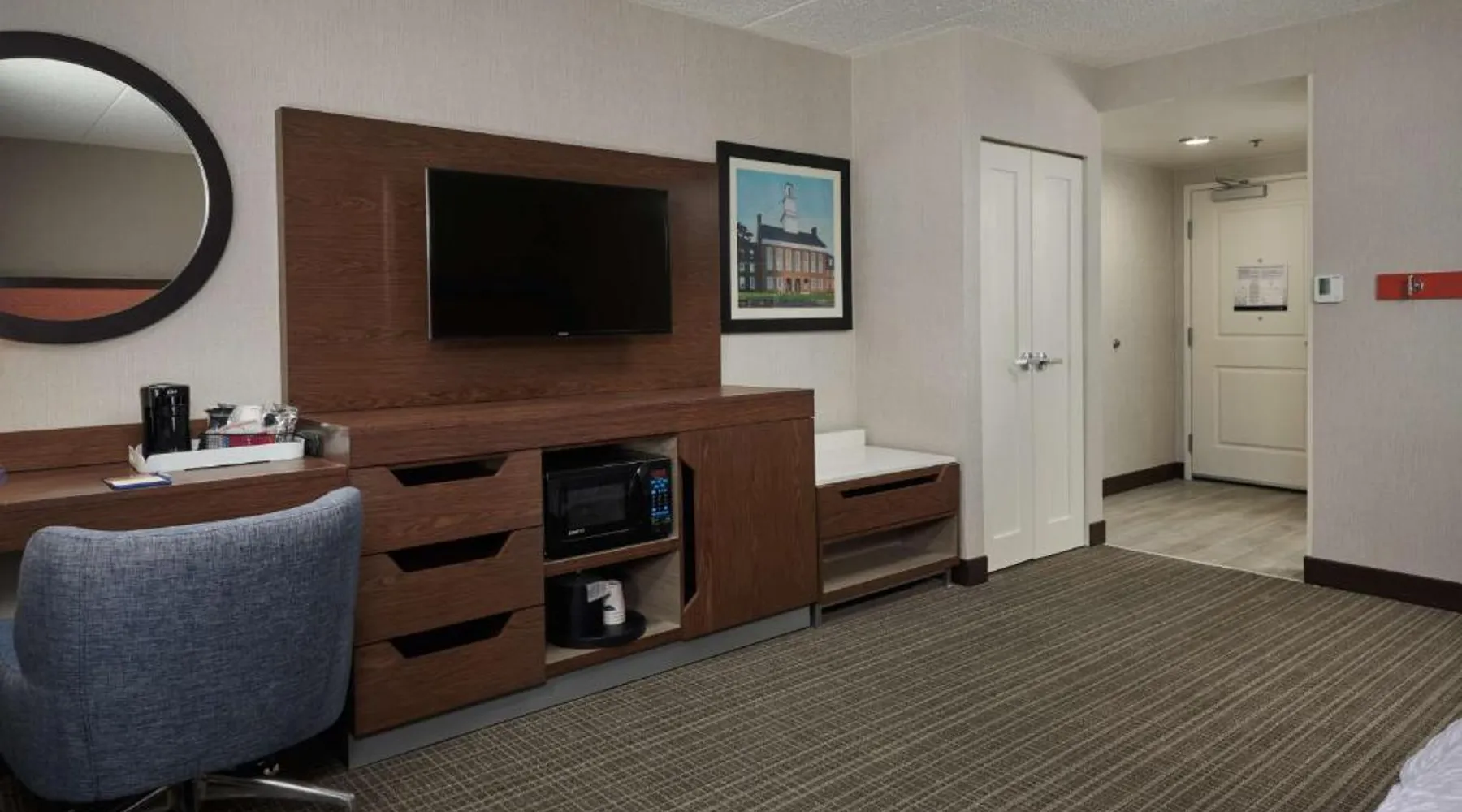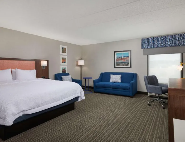Comfortable Accommodations: Hampton Inn Fairfax City in Fairfax offers clean, comfortable rooms with air-conditioning, free WiFi, and modern amenities. Guests enjoy amenities such as a fitness center, lounge, and outdoor seating area. Convenient Facilities: The hotel provides a fitness room, business area, and electric vehicle charging station. Additional services include a 24-hour front desk, daily housekeeping, and free on-site private parking. Delicious Breakfast: A variety of breakfast options are available, including continental, American, and buffet. Guests appreciate the quality and selection of the morning meal. Prime Location: Located 9.9 mi from Washington Dulles International Airport, the hotel is near attractions such as the Air Force Memorial (16 mi) and Lincoln Memorial (17 mi). Free WiFi is available throughout the property. This double room is air-conditioned and features a flat-screen TV with cable channels, a tea and coffee maker, a safe deposit box and heating. The unit offers 1 bed.