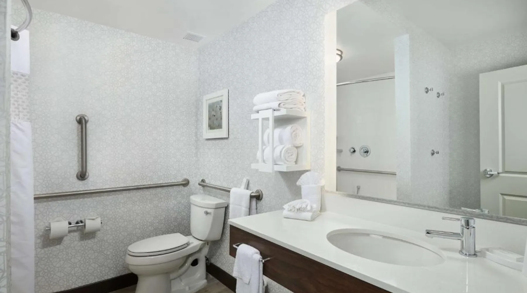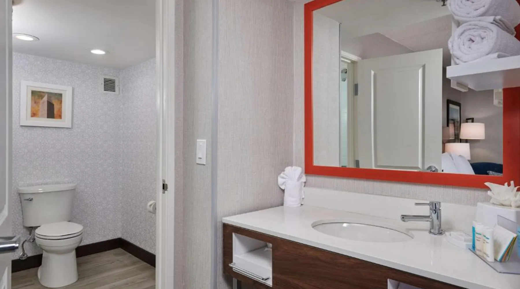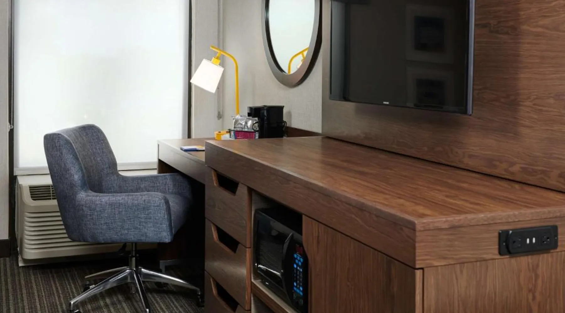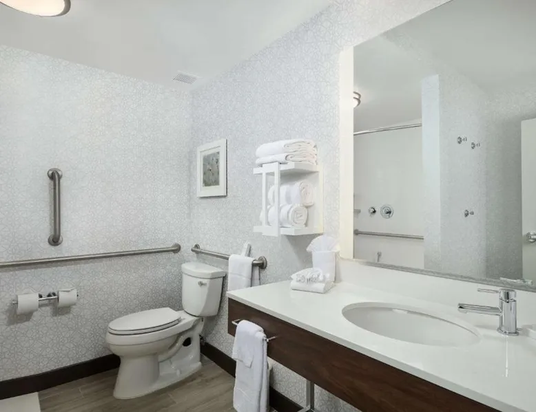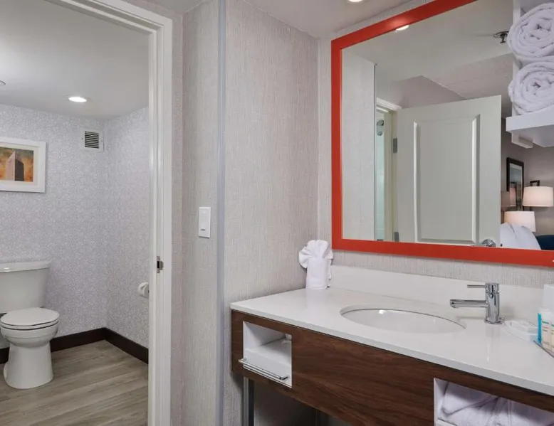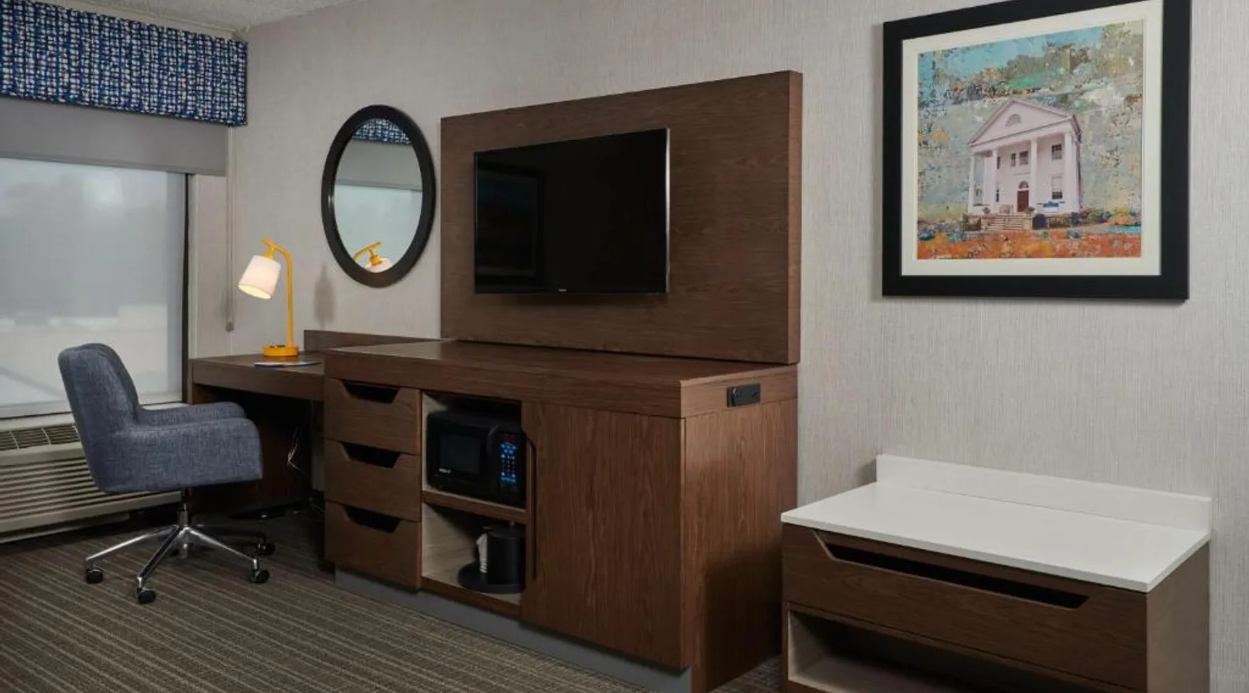 Comfortable Accommodations: Hampton Inn Fairfax City in Fairfax offers clean, comfortable rooms with air-conditioning, free WiFi, and modern amenities. Guests enjoy amenities such as a fitness center, lounge, and outdoor seating area. Convenient Facilities: The hotel provides a fitness room, business area, and electric vehicle charging station. Additional services include a 24-hour front desk, daily housekeeping, and free on-site private parking. Delicious Breakfast: A variety of breakfast options are available, including continental, American, and buffet. Guests appreciate the quality and selection of the morning meal. Prime Location: Located 9.9 mi from Washington Dulles International Airport, the hotel is near attractions such as the Air Force Memorial (16 mi) and Lincoln Memorial (17 mi). Free WiFi is available throughout the property. This double room is air-conditioned and features a flat-screen TV with cable channels, a tea and coffee maker, a safe deposit box and heating. The unit offers 1 bed.
