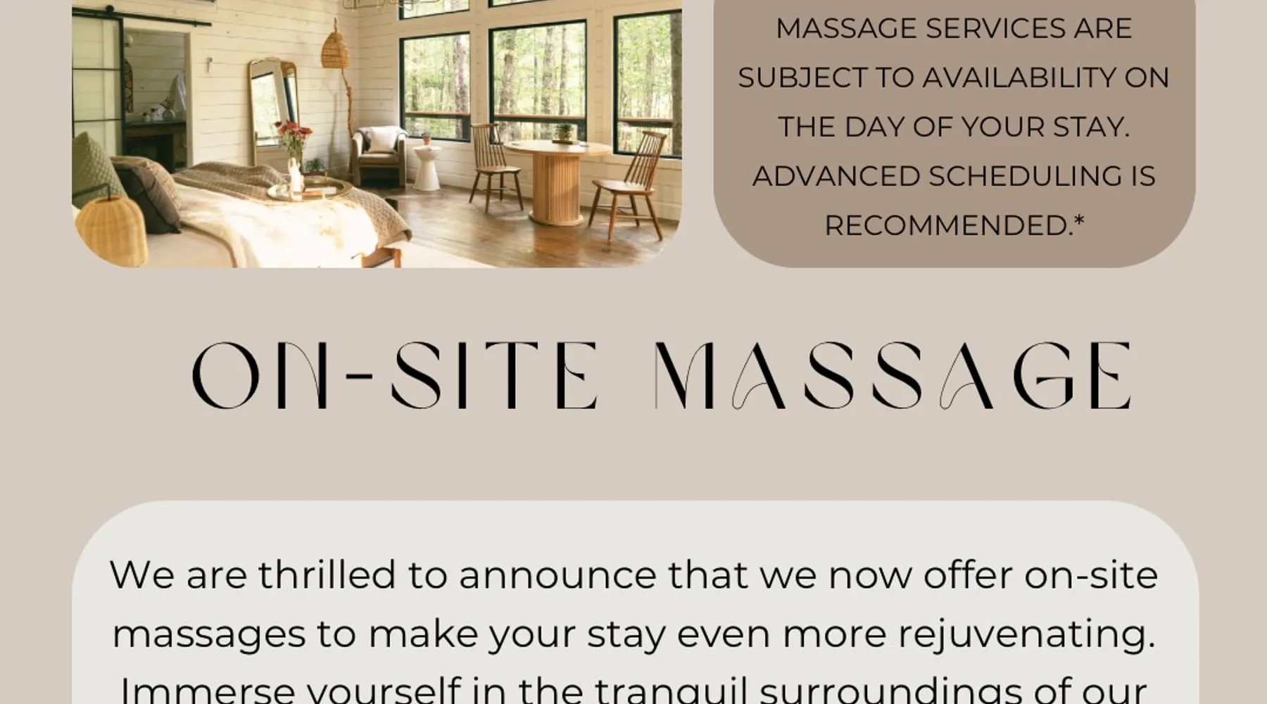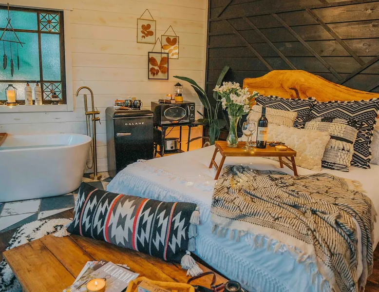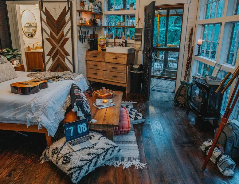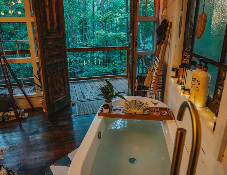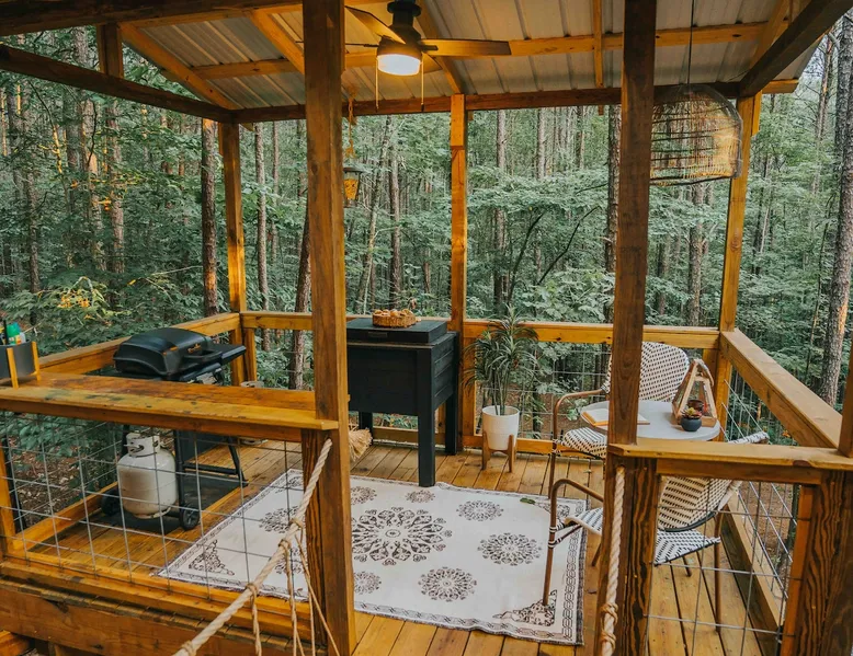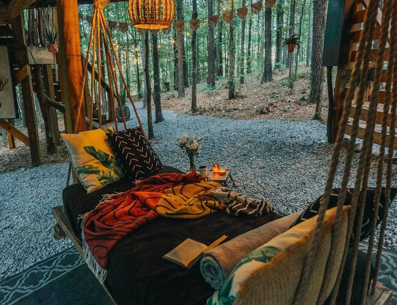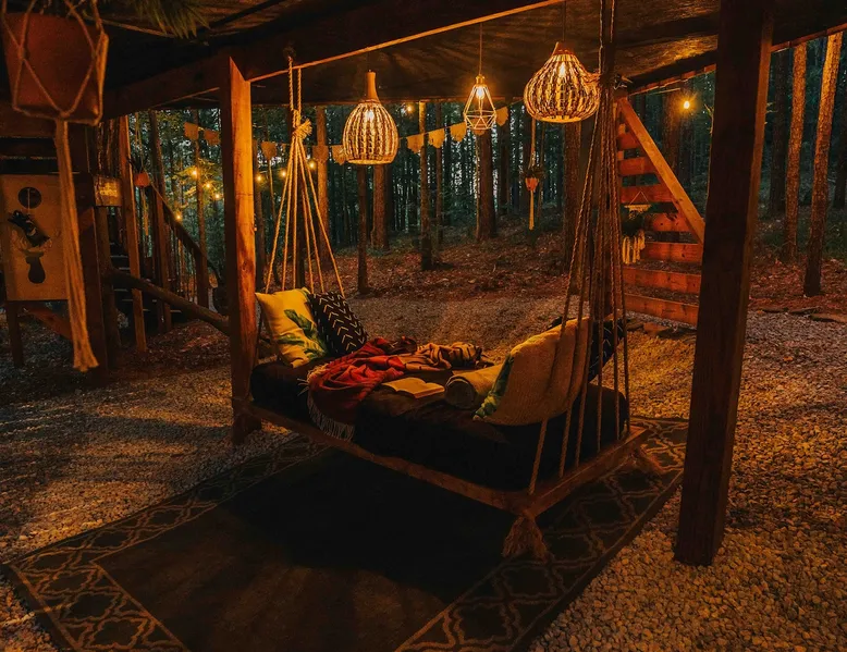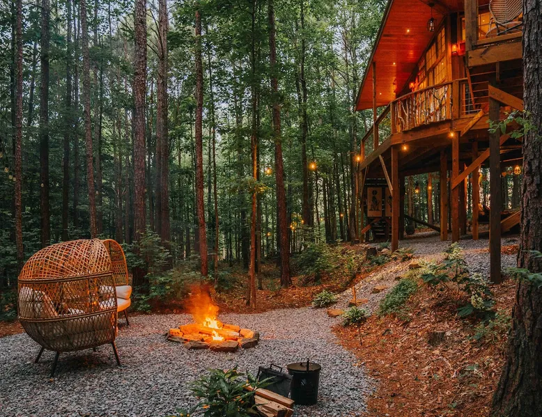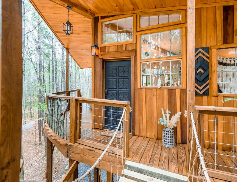 CHECK IN DAYS MWF Our very unique treehouse is nestled into the treetops on 40 acres of forest. Great for a couples retreat, honeymoon, or spiritual reconnecting. Get away from it all and enjoy the nature trails and 2 acre lake(seasonal at times)to pass the time and be able to really unwind. Sit and enjoy your morning coffee outside on the deck as you may be able to catch a peak at the deer. Don’t forget to follow us on Insta @ fireflytreehouses The space Check in days: Mon/Wed/Fri Please read all other descriptions of property before booking! We have a strict cancellation policy that will be upheld. We advise taking out travel insurance if you are unsure of your travel dates or circumstances that arise. Only 20 minutes from I65. One hour from either Birmingham or Huntsville, Al. 10 minutes from nearby boat launch for Smith Lake. Plenty of room to park boat. Please check out Guidebook for all local attractions that I have put together to help you with questions and to navigate better. Lots of waterfalls, hiking, horseback riding etc. to check out that is within 30-60 minutes from property. Adults only stay .Not safe or suitable for children - We are very strict about this policy because the treehouse is 15 feet above the ground. strictly an animal-free zone due to severe allergies. KITCHEN AREA IS NOT A FULL KITCHEN Please fully read all details and what’s included. This is for a luxury glamping experience not complete kitchen setup. **Outdoor showers will be closed Dec1st-Feb28th due to freezing temperatures ** Absolutely NO PETS! (NO EXCEPTIONS) Be sure and check out our video on Levi Kelly’s YouTube channel! NOW OFFERING PHOTO SHOOTS while you stay. Be sure and check out A beautiful life photography for details. Make appointment prior to your stay. Package $225 digital memories back with in 72 hrs. CHECK IN : Mon/Wed/Fri CHECK OUT: Mon/Wed/Fri Look for our sister property “Wild Soul” currently ready to book! The entrance and lake will be shared area for Wild Soul and Wanderlust. Guest access Each of our treehouses are completely private nestled within 40 acres. Only the drive/entrance and lake will be shared. Other things to note NO WIFI OR TV It is encouraged that you are there to getaway from it all. WE PROVIDE: Wanderlust is set up for normal housekeeping, the properties will have hairdryers; cleaning products; or toilet paper, paper towels, trash bags and soaps intended to last for the duration of your stay. Each rental property is furnished with a starter set of paper products for your first night. This set includes one roll of paper towels, a small bottle of liquid dish soap, one can liner per trash can, one travel size hand soap and body soap per bathroom and one roll of bathroom tissue in each bathroom. Please bring extras. No full size oven equipped Furnished with: Gas grille Keurig coffee maker Crock pot Electric skillet Basic utensils Bagel/ toaster Microwave mini fridge (see photos) No freezer compartment Need to bring: lighter fluid/ice for cooler Plenty of Firewood will be at property. We ask that you be extra cautious with fires/spark and ashes being that it is located in the middle of the woods. **PUT OUT ALL FIRES BEFORE LEAVING UN ATTENDED** **ADULTS ONLY** **ABSOLUTELY NO PETS** **NO SMOKING ** **NO EARLY CHECK INS** Check in: 4pm Check out: 11am Paddle boat/canoe is for your use while your there along with two life jackets. Waiver form must be agreed upon at booking. Be sure and check out the green fields from our observation house of a morning and early evening to spot the beautiful deer. *outdoor shower will be closed for the winter Dec 1st-Feb 28 due to freezing *