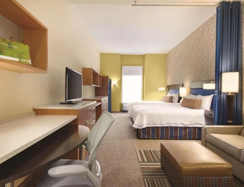 Comfortable Accommodations: Home2 Suites by Hilton Parc Lafayette in Lafayette offers family rooms with air-conditioning, free WiFi, and modern amenities. Each room includes a refrigerator, microwave, kitchenware, toaster, and free toiletries. Leisure Facilities: Guests can enjoy a year-round outdoor swimming pool, fitness room, and outdoor fireplace. Additional amenities include a lounge, outdoor seating area, and barbecue facilities. Free on-site parking is available. Convenient Location: Located 3.7 mi from Lafayette Airport, the hotel is near attractions such as Frem Boustany Convention Center (3 mi) and The Lafayette Natural History Museum (3.1 mi). Nearby shops and options for food and drinks enhance the stay. This suite is air-conditioned and features a seating area with a flat-screen TV, a tea and coffee maker and heating. The unit offers 2 beds.