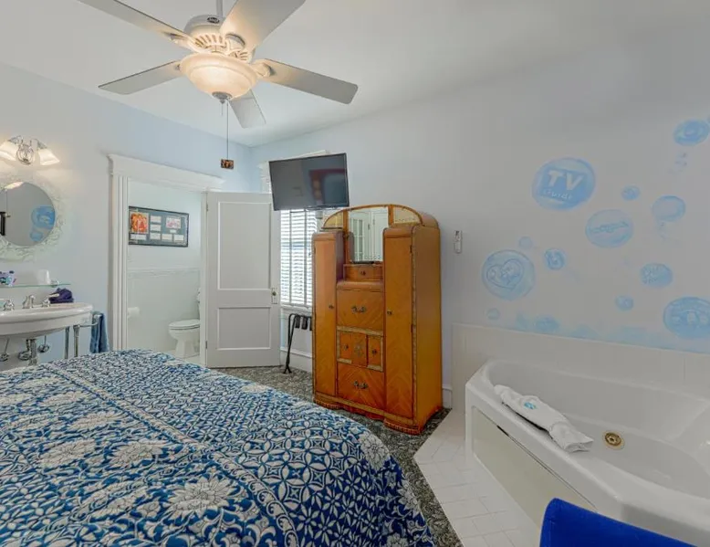 Comfortable Accommodations: Summer Nights in North Wildwood offers family rooms with private bathrooms, air-conditioning, and TVs. Each room includes a bath and free WiFi, ensuring a pleasant stay. Relaxing Facilities: Guests can unwind in the hot tub or enjoy the outdoor space. Free on-site private parking is available, and the property is highly rated for its breakfast. Local Attractions: North Wildwood Beach is a 6-minute walk away, while Splash Zone Water Park lies 0.6 mi from the property. Morey's Piers and Wildwood Boardwalk are both 0.6 mi distant. Atlantic City International Airport is 39 mi from Summer Nights. This air-conditioned suite consists of 1 living room, 1 separate bedroom and 1 bathroom with a bath. This suite provides a flat-screen TV. The unit offers 1 bed.