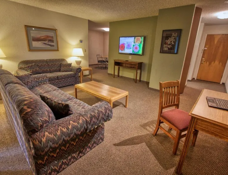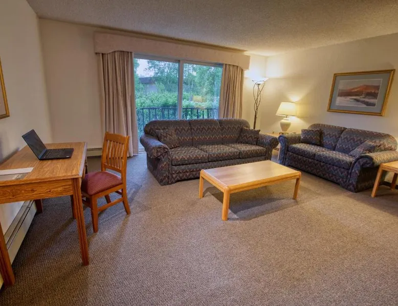 Located in Fairbanks, Wedgewood provides residential-style accommodations. The University of Alaska Fairbanks is within 10 minutes' drive of the property. Free private parking is available on site. Each suite features a fully-equipped kitchen with a coffee machine, microwave, refrigerator, stove top, and kitchenware. There are separate living and dining areas, and air-conditioning is provided throughout the units. The front desk is staffed 24 hours per day, and you will find free shuttle service at the property. Guests can use work out in the on-site fitness center. During winter months, a Northern Lights wake-up call can be requested. The nearest airport is Fairbanks Airport, 5 mi from Wedgewood Resort. This suite features a fully-equipped kitchen, living area, and dining area.