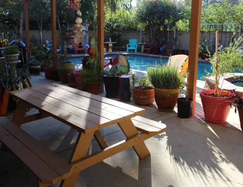 Spacious Accommodations: Comfortable Luxury Studio in Los Angeles offers a spacious guest house with a garden and a year-round outdoor swimming pool. Free WiFi is available throughout the property. Comfortable Amenities: Guests enjoy private check-in and check-out services, grocery delivery, laundry service, outdoor seating and picnic areas, barbecue facilities, and luggage storage. Free on-site private parking is provided. Breakfast and Dining: A continental or à la carte breakfast is served with fresh pastries and cheese. The property includes a kitchenette, streaming services, and a dining area. Nearby Attractions: Located 12 mi from Hollywood Burbank Airport, the guest house is close to attractions such as the Getty Center (15 mi) and Universal Studios Hollywood (16 mi). Highly rated for its swimming pool and attentive host. The private pool is a top feature of this suite. Boasting a private entrance, this spacious suite also comes with 1 bedroom, a seating area and 1 bathroom with a walk-in shower and a hairdryer. Guests will find a stovetop, a refrigerator, kitchenware and an oven in the well-equipped kitchen. The suite also includes a barbecue. This air-conditioned suite is consisted of of a dining area, a flat-screen TV with streaming services a washing machine and a terrace. The unit has 1 bed.