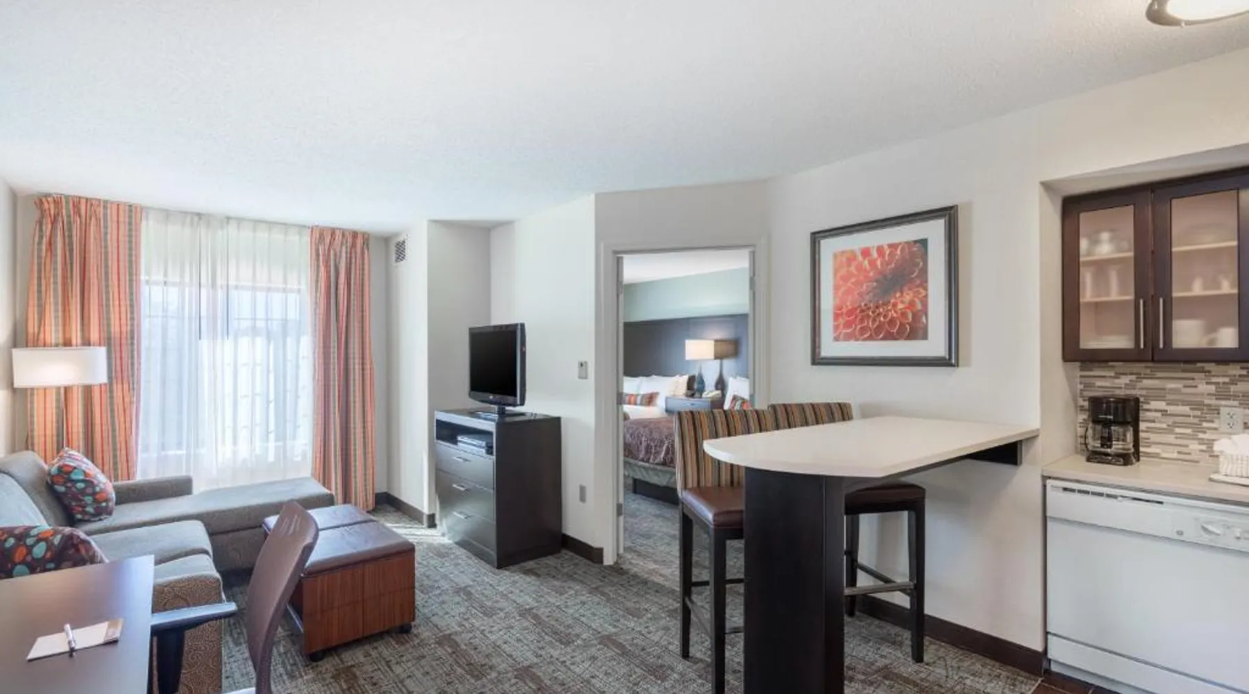 Comfortable Accommodations: Staybridge Suites Wilmington-Newark by IHG in Newark offers comfortable rooms with air-conditioning, kitchenettes, private bathrooms, and free WiFi. Each room includes a work desk, sofa bed, and soundproofing for a pleasant stay. Exceptional Facilities: Guests can enjoy a fitness center, seasonal outdoor swimming pool, and outdoor fireplace. Additional amenities include a lounge, minimarket, business area, and free on-site private parking. Convenient Location: Located 3.7 mi from New Castle Airport, the hotel is near attractions such as Old Dutch House (6.8 mi) and Delaware Museum Of Natural History (14 mi). Free WiFi is available throughout the property. Offering free toiletries, this suite includes a private bathroom with a walk-in shower, a bath and a hairdryer. The well-fitted kitchen features a stovetop, a refrigerator, a dishwasher and kitchenware. The air-conditioned suite offers a flat-screen TV with cable channels, a private entrance, soundproof walls and a tea and coffee maker.