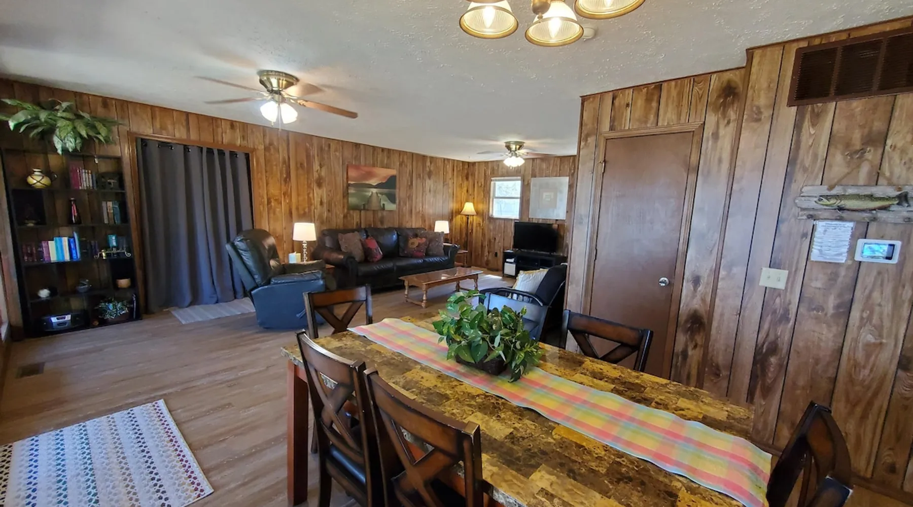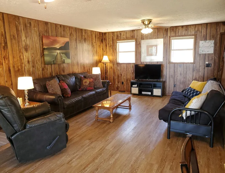 3 Bedrooms Plus Futon, 2 Bath-Sleeps 8 - Playground & Community Swimming Pool! The space Experience the beauty and tranquility of Beaver Lake in this darling, comfortable lakefront cabin. You will love the level lawn that leads you to the water's edge just 50 feet from the cabin, where you can enjoy fishing, swimming, or boating. With three bedrooms and two bathrooms, this home can accommodate up to eight guests. The home features a master bedroom with a queen bed on the main floor, and two bedrooms upstairs, one with a king bed and one with two twin beds. The living area has a futon that can be used as an extra sleeping space. The home is fully furnished and equipped with everything you need for a memorable vacation. Pet Fee for each dog per stay, up to 3 dogs, is $45.00 per dog. The home has a stunning lake view from the dining room, living room, and covered back deck. The back yard is shaded and ideal for playing games or relaxing. You can also access the community swimming pool for a small fee or visit the nearby marina and boat launch for more water activities. Please note that there is no dock available at this property. The Lost Bridge Village Recreation Center has a lakefront Community Swimming Pool open from Memorial Day till Labor Day. There is a charge of $5 per person per day. There is also a free playground for the kids, shuffleboard, basketball court, and a lakefront picnic area with grills. Lost Bridge Village sprawls over several areas around Beaver Lake including Whitney Mountain, which is the highest point over Beaver Lake. No fireworks allowed. Located minutes from Lost Bridge North Marina. Boat Launches are available at Lost Bridge North Park, Lost Bridge South Park, Off Black Oak Drive in Lost Bridge Village or at the Ventris Boat Launch. There are walking trails at Lost Bridge North Park at 12485 Marina Road in Garfield. Home is located about 30 minutes from (half-way between) Rogers and Eureka Springs. Both places offer an exceptional experience of great food options, entertainment, and shopping. Also, some cell phone service providers do not have cell towers around areas of Beaver Lake. Managed for the Homeowners by Beaver Lake Vacation Rentals, LLC., Garfield, AR. Other things to note Your rental comes with up to $1500 of damage insurance protection: Waivo™ Security Deposit Waiver If You have purchased a Waivo™ Security Deposit Waiver, then the following terms and conditions are now part of Your vacation rental property lease agreement. I. AGREEMENT A. On behalf of Beaver Lake Vacation Rentals, LLC, the party authorized to rent the vacation rental property and the owner of the vacation rental property, Waivo has assumed the responsibility for damages as outlined below and waives Your security deposit up to $1,500, the waiver limit purchased by You, the renter, for your stay at the vacation rental property. B. Waivo is hereby responsible for theft or damage to real or personal property of the vacation rental property as a result of Your acts or omissions. Waivo will pay the lesser of the cost of repairs or the cost to replace the property up to $1,500. This waiver does not negate your responsibilities as a renter for items outside of Waivo’s responsibilities. C. This is not an agreement to provide insurance. You are buying a waiver of the security deposit otherwise due as part of Your vacation rental property lease agreement. II. EXCLUSIONS A. This Security Deposit Waiver will not pay for damages or theft resulting from: 1. Acts of god 2. Prior damage, or normal wear and tear 3. Theft without a valid police report 4. Loss of use of the vacation rental property 5. Rodent, termite, bed bug, infestation, animal, or pet damage 6. Damage to a motorized vehicle 7. Fine art or collectibles B. This Waiver will not pay for damage or theft of property owned by You. C. This Waiver will not pay for costs associated with odor, debris removal, mechanical breakdown. III. CONDITIONS A. Waivo has the sole authority to determine the nature and extent of damages, necessary repairs, and eligibility for the waiver, and shall exercise that authority in a reasonable manner. B. Waivo reserves the right to determine if damage is eligible for reimbursement at actual cash value. C. This Waiver will pay for excessive cleaning, as a direct result of damage, over and above the normal cleaning fee. A stain or spillage is considered damage. D. This Waiver is only effective for a one-time single continuous stay for which You purchased the Waiver. It takes effect when You occupy the vacation rental property and terminates when You depart the same vacation rental property. E. This Waiver is only effective if any theft or damage is reported to Waivo by You, the property manager, the online travel agent or the owner of the vacation rental property within 3 days of Your departure from the vacation rental property. F. Waivo will not respond to damage or theft under $50 US dollars. G. If there is a dispute related to these terms, mediation is required before any party may file litigation. In the event of litigation, all parties waive the right to a jury trial. IV. DEFINITIONS You, or Your, is the renter of the vacation rental property and includes the renter’s spouse, children and any other person the renter invited on to the vacation rental property during your stay at the vacation rental property.